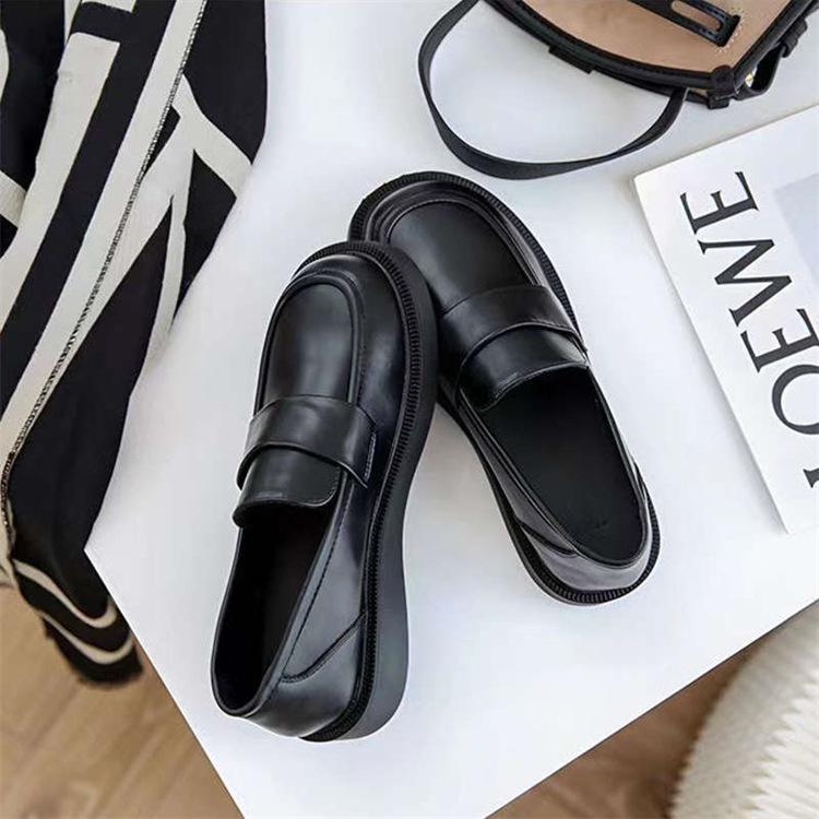 Zapatos de Trabajo Mocasines Estilo Británico Zapatos Planos Individuales Mujer 2025 Nuevo Un Paso Suela Suave Versátil Zapatos de Cuero Negros