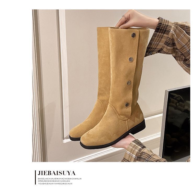 Botas Otoño e Invierno 2025 Nuevas Botas Antideslizantes Botas Slim Ropa Exterior Tacón Grueso Elegante Color Puro Botas Sobre la Rodilla