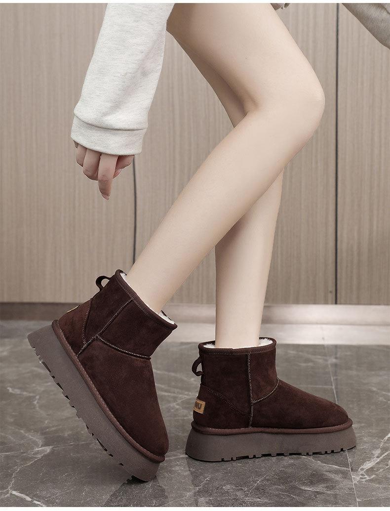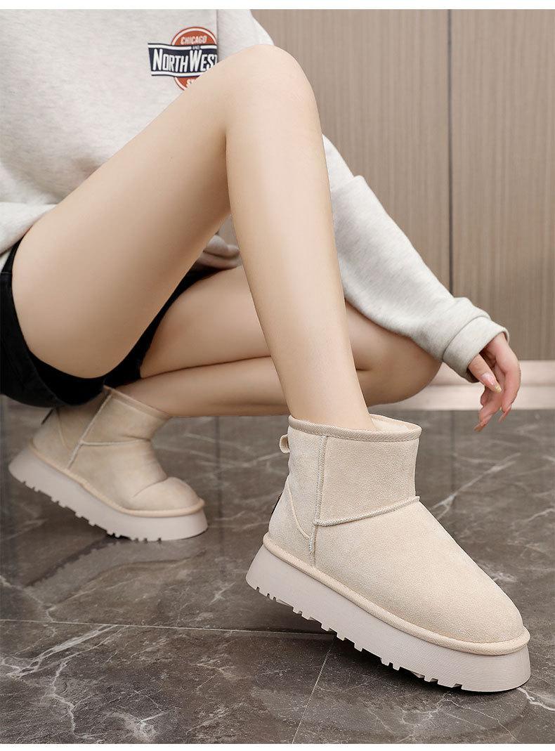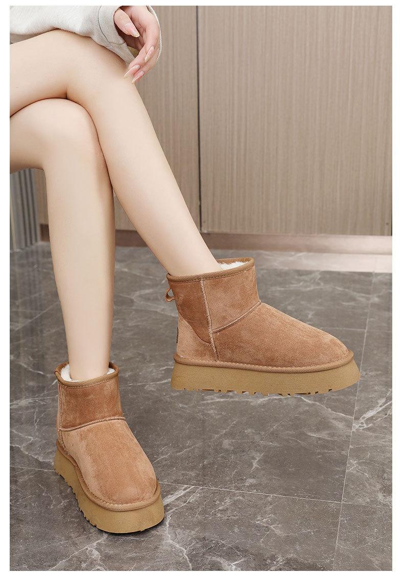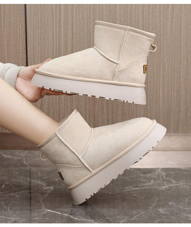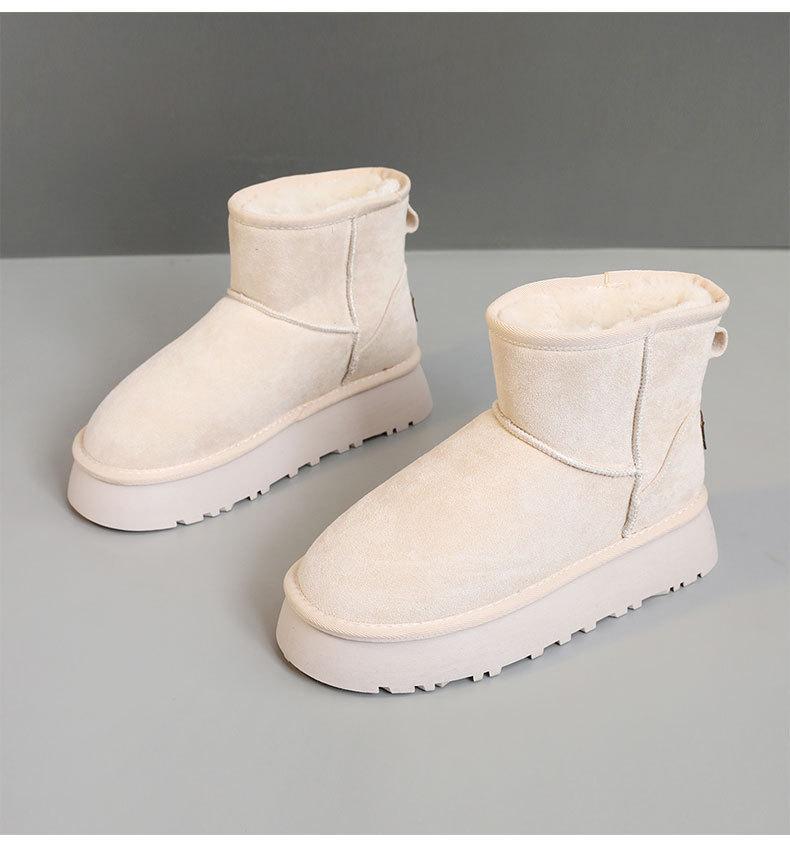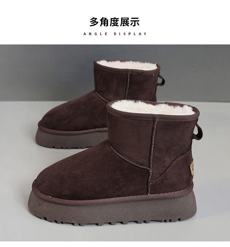 U9988 nuevas botas de nieve casuales de color sólido otoño/invierno 2024 estilo coreano para mujer con forro polar altura media pantorrilla zapatos de algodón cálidos con aumento de altura