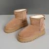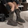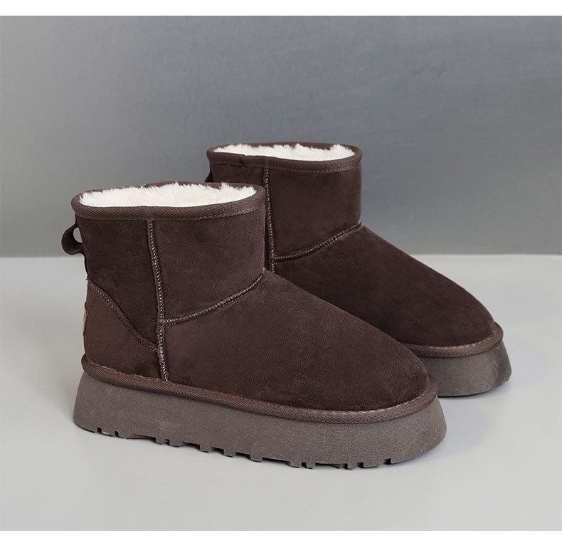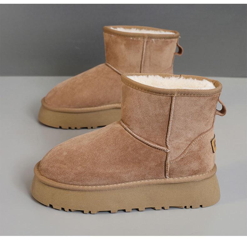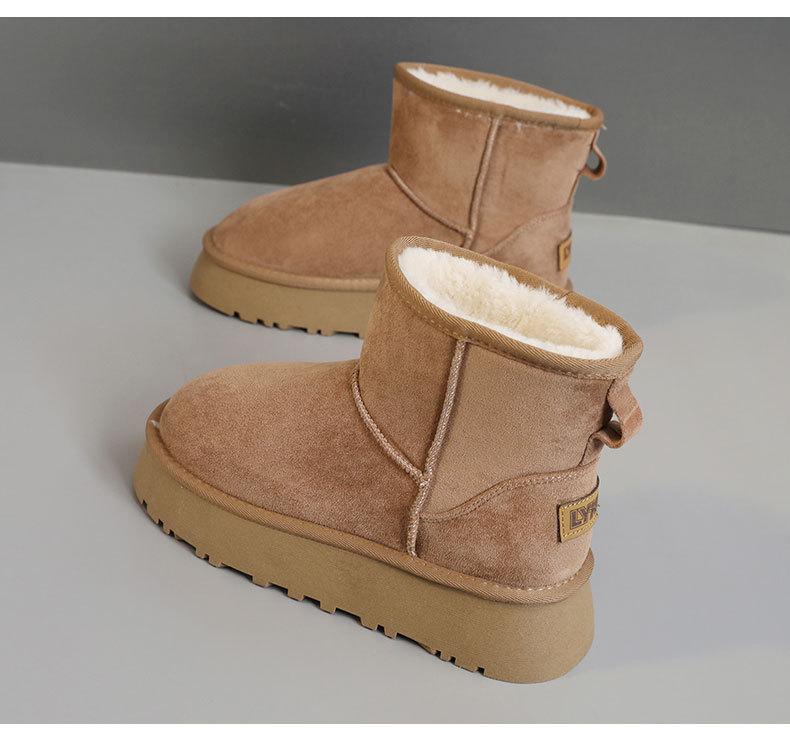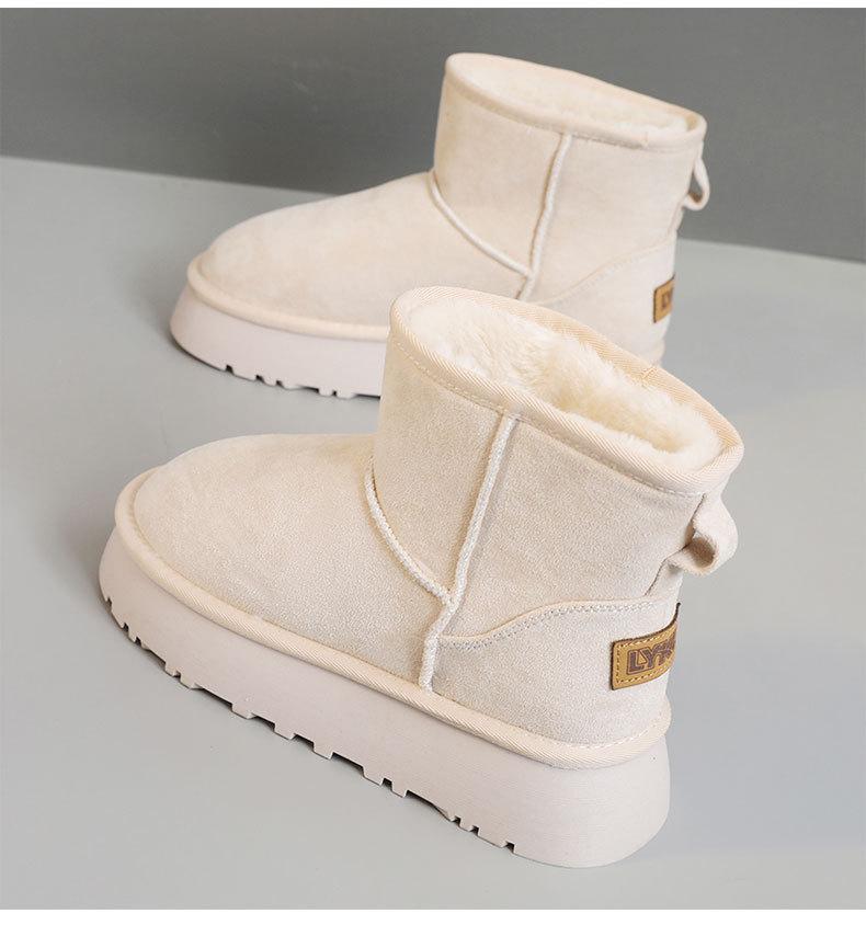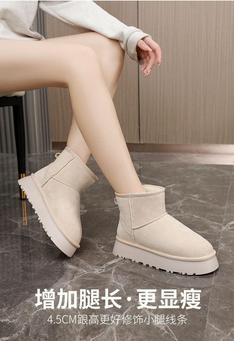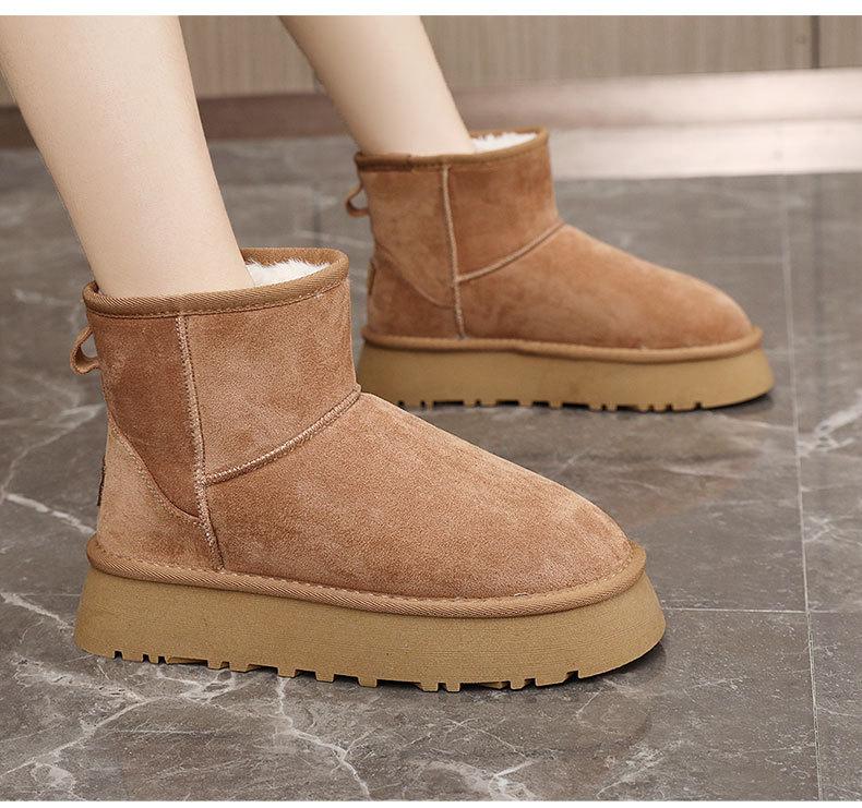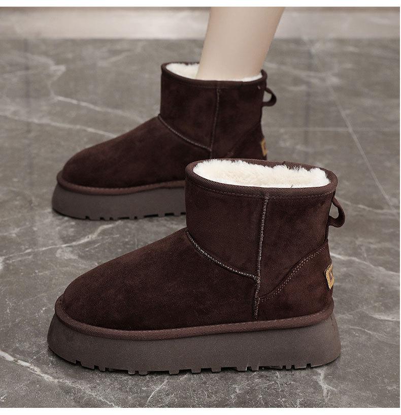 U9988 nuevas botas de nieve casuales de color sólido otoño/invierno 2024 estilo coreano para mujer con forro polar altura media pantorrilla zapatos de algodón cálidos con aumento de altura