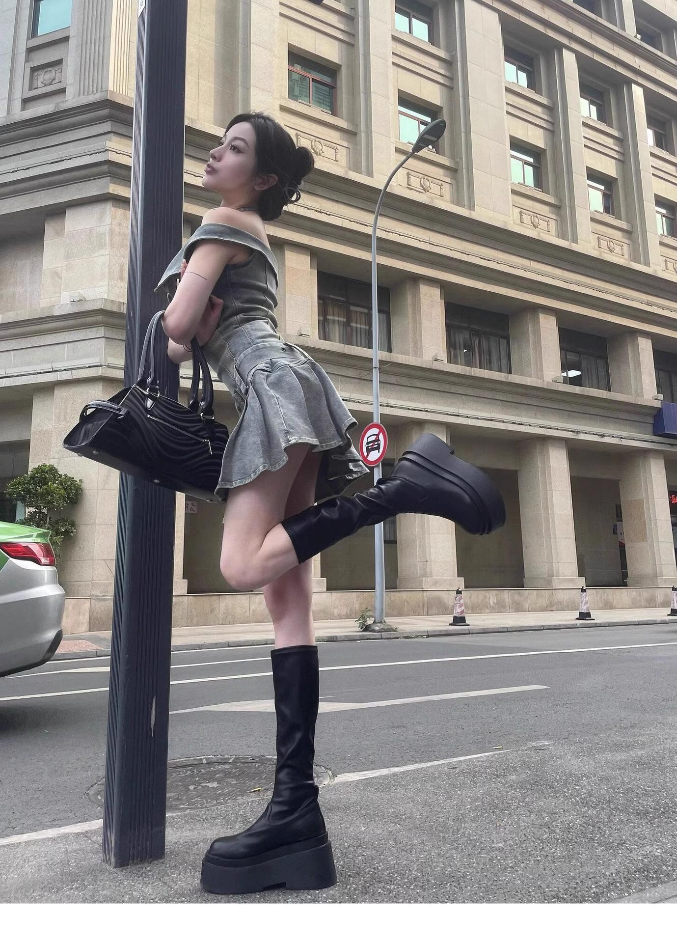 Botas Petite Hasta la Rodilla de Suela Gruesa para Aumentar la Altura 2025 para Mujer, Botas Elásticas, Botas Slim, Botas Altas de Caballero de Otoño e Invierno