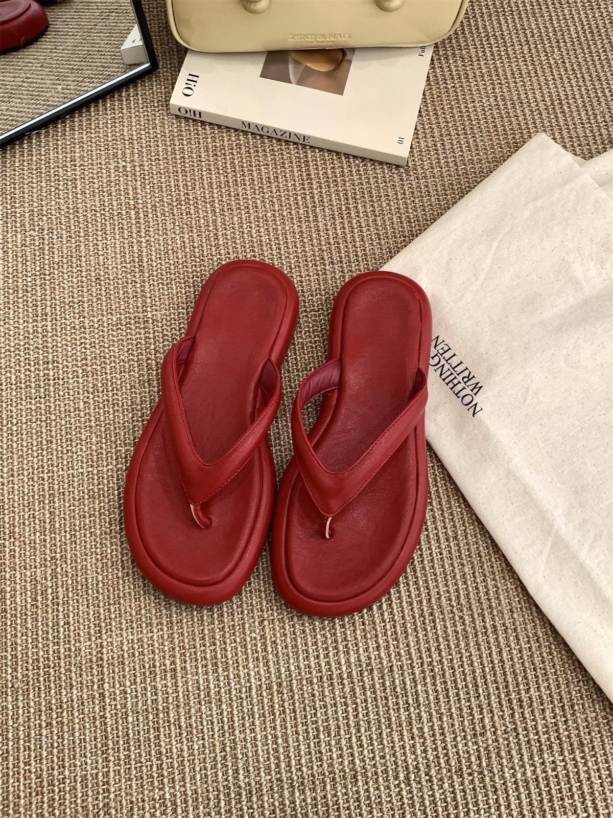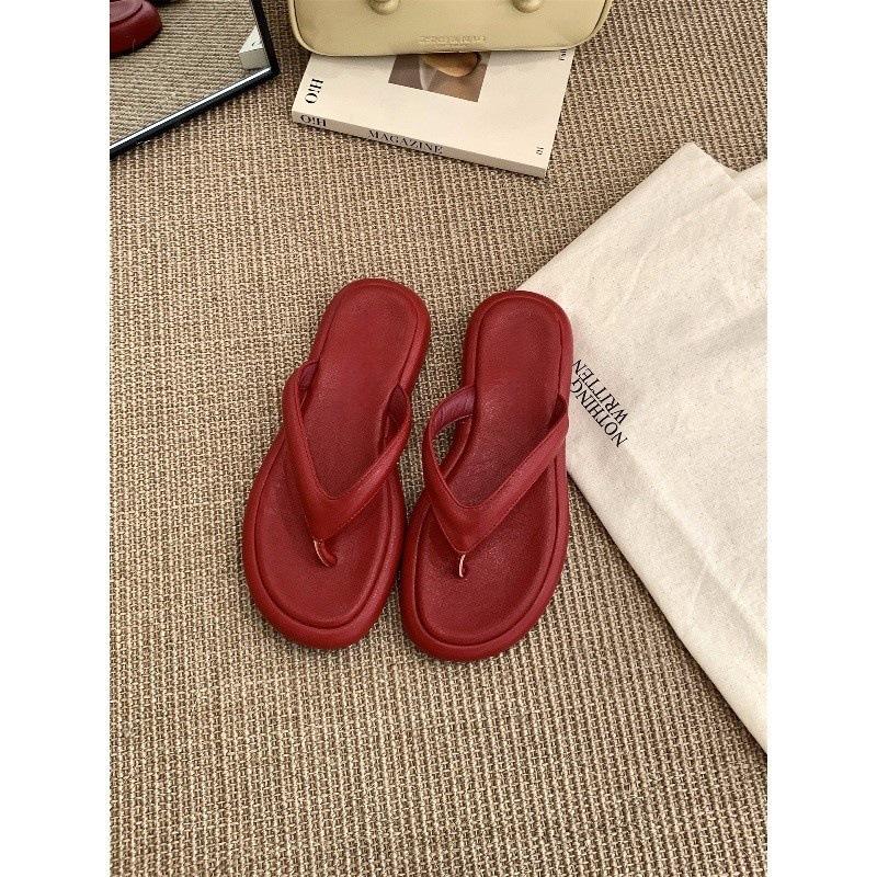Chanclas de suela gruesa zapatos de mujer para uso exterior verano 2025 para combinar con vestidos, vacaciones, sandalias de playa sandalias rojas