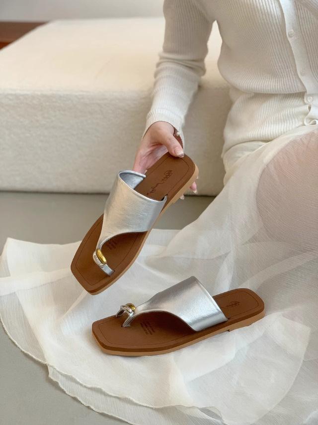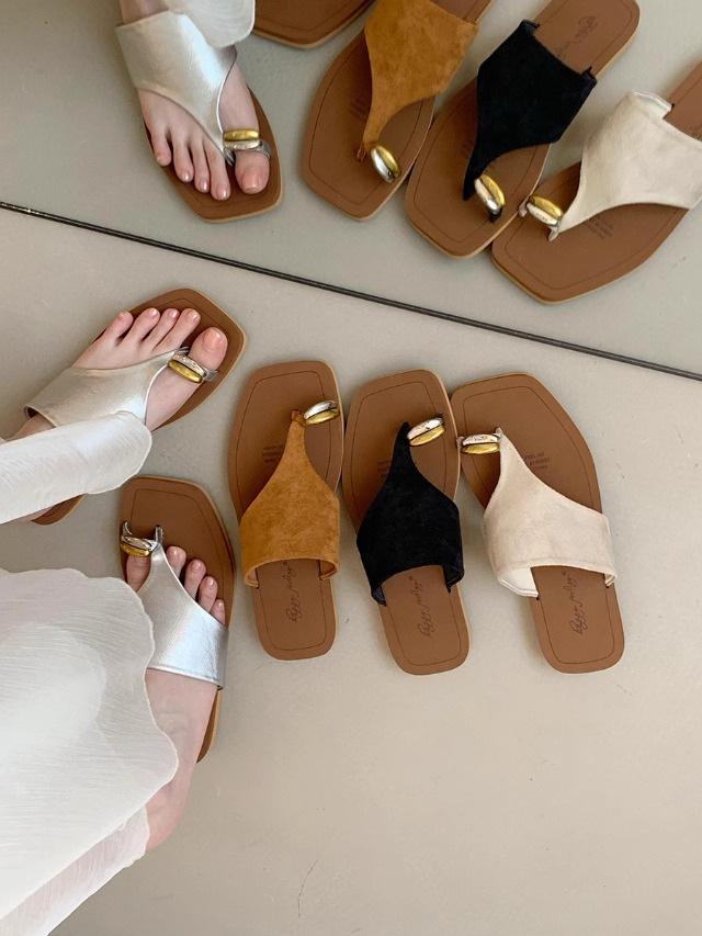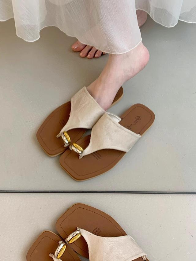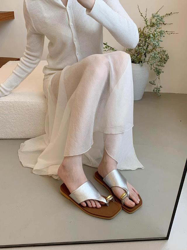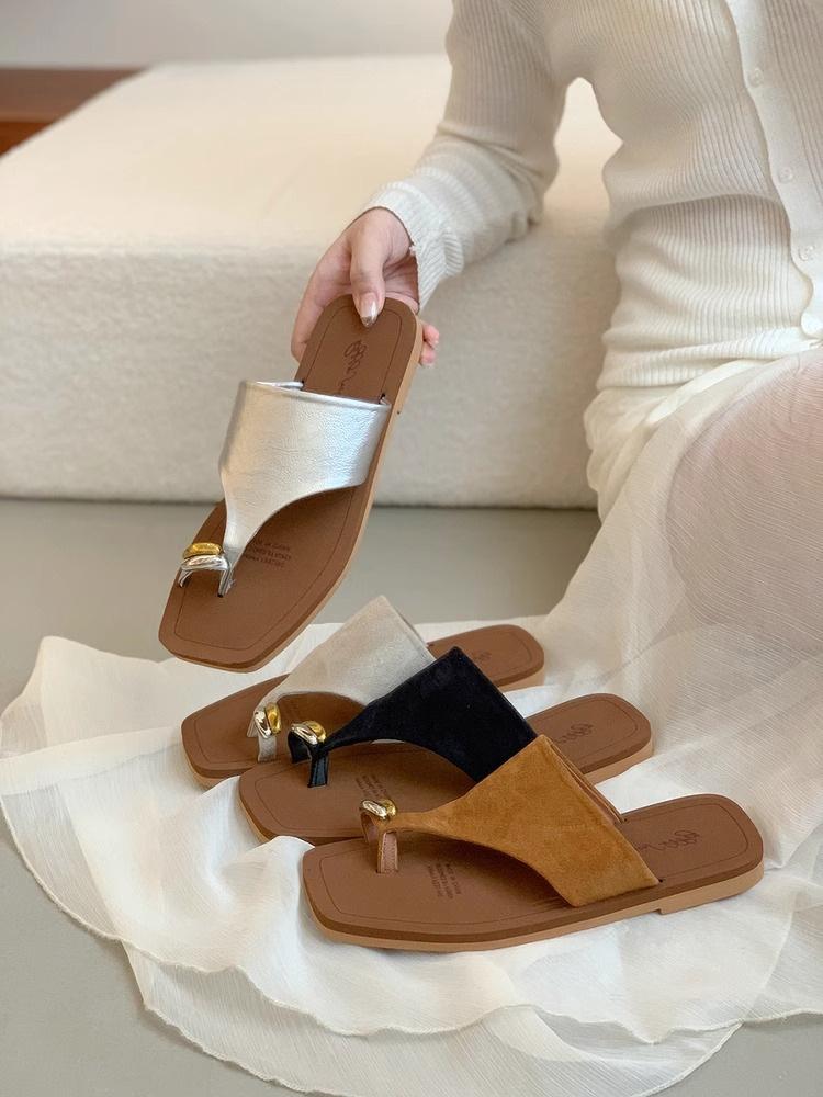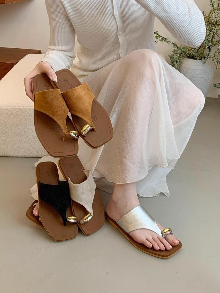Sandalias Elegantes de Suela Plana para Exterior de Mujer Verano 2025 Nueva Moda Francesa Casual Slip-On Sandalias de Playa para Vacaciones