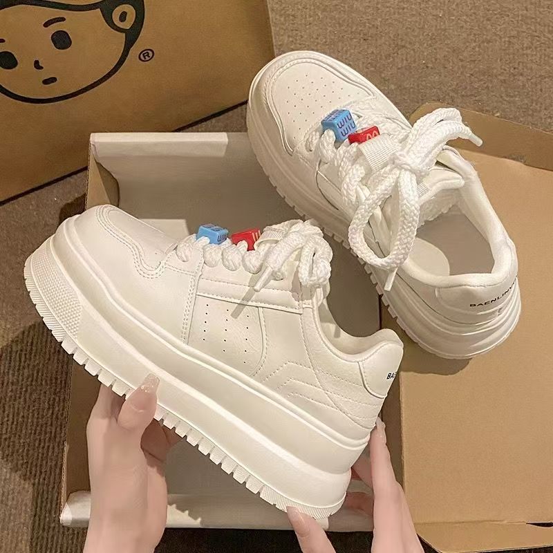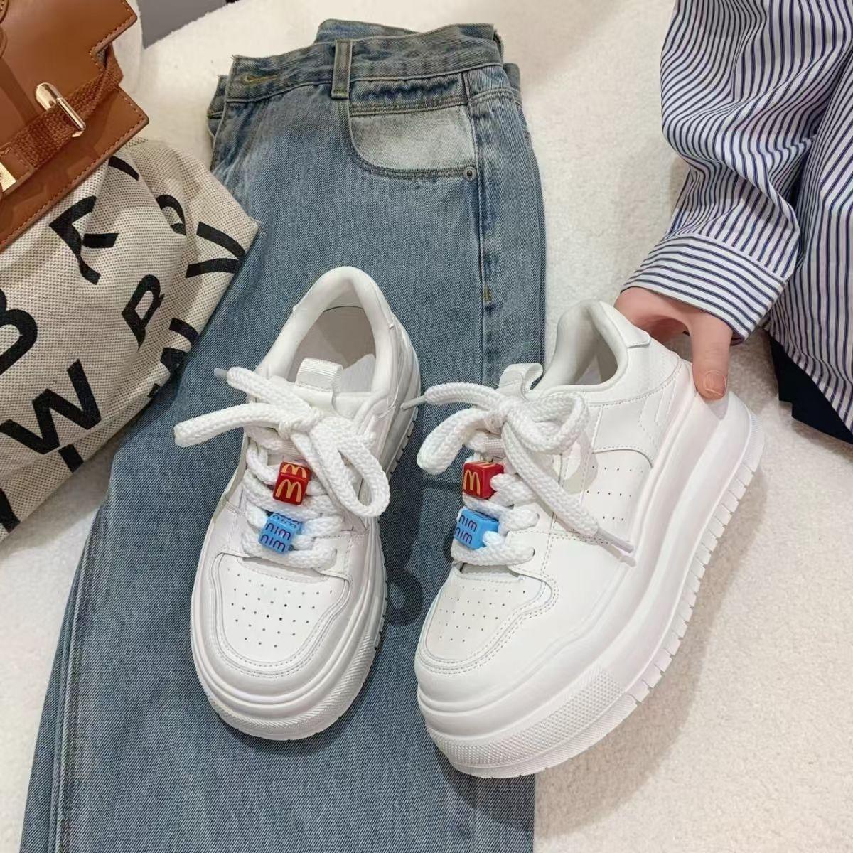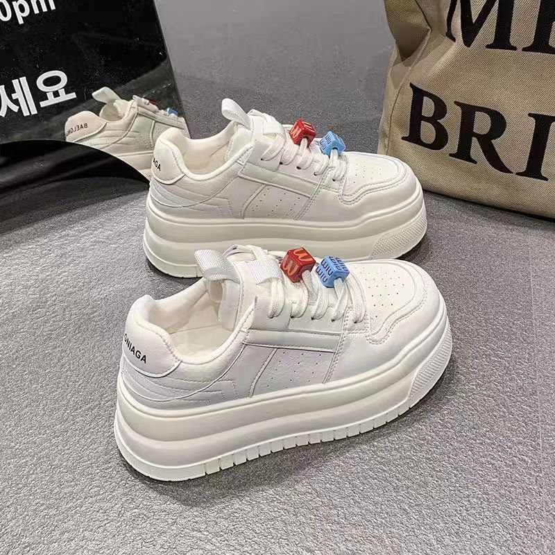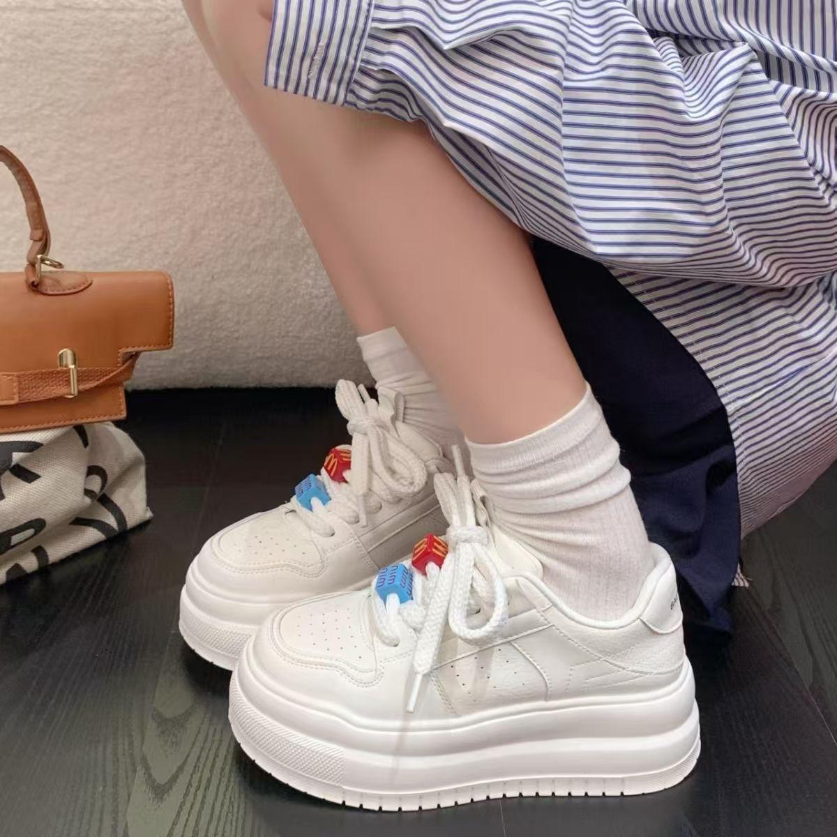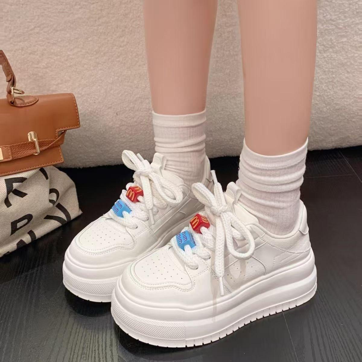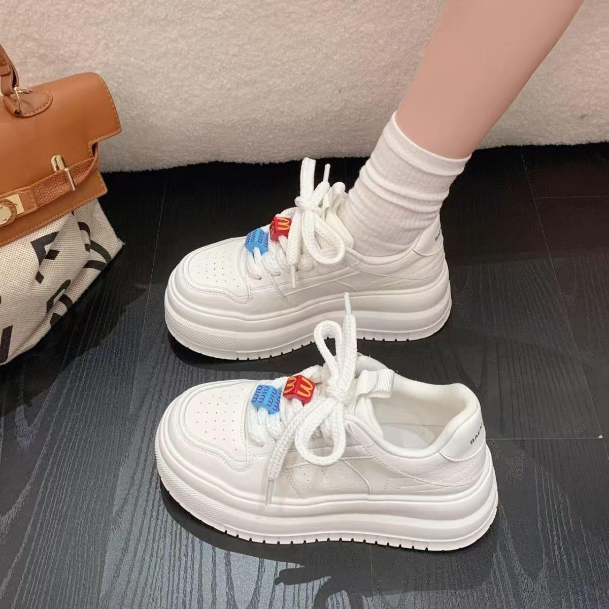 Zapatos Casuales de Mujer de Estilo Coreano de Color Sólido, Zapatos Blancos de Punta Redonda con Suela Gruesa, Moda de Primavera, Nicho Versátil, Zapatos de Plataforma de Tacón Plano
