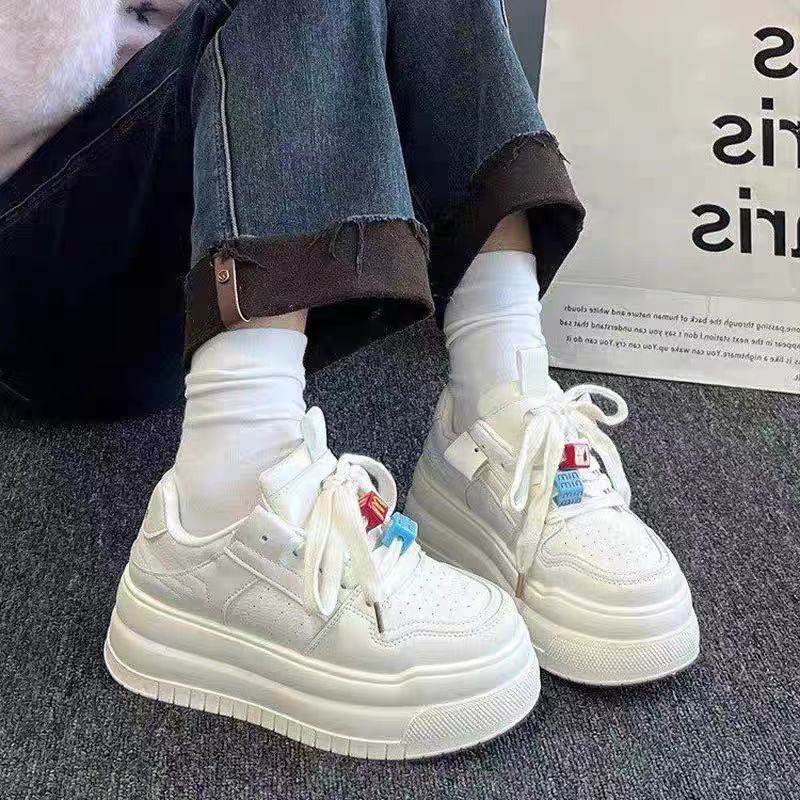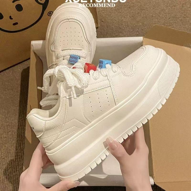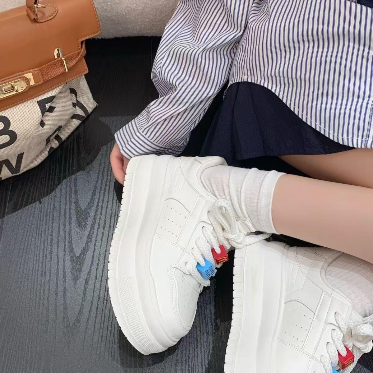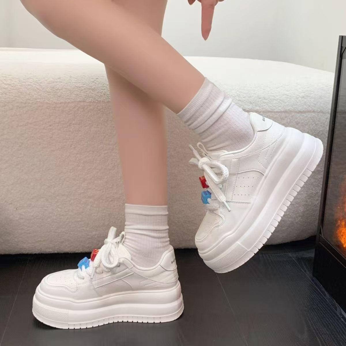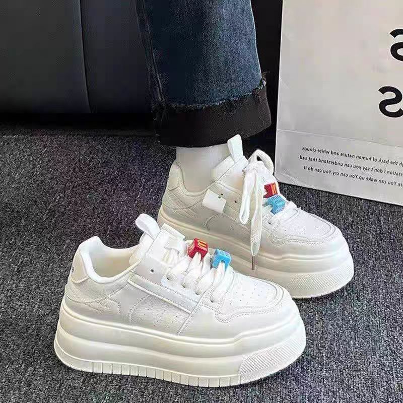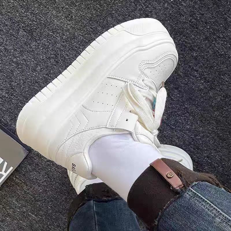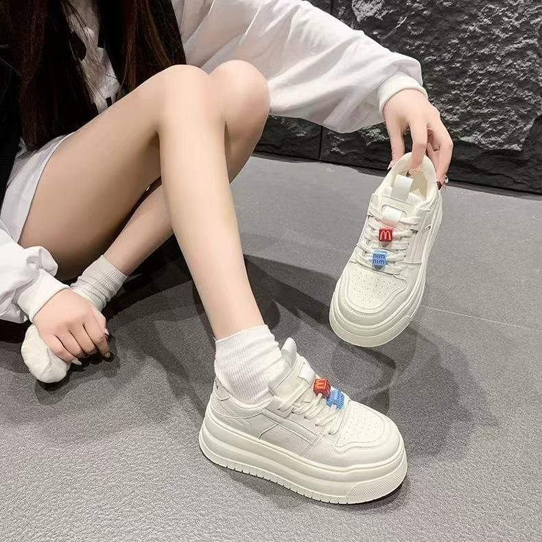 Zapatos Casuales de Mujer de Estilo Coreano de Color Sólido, Zapatos Blancos de Punta Redonda con Suela Gruesa, Moda de Primavera, Nicho Versátil, Zapatos de Plataforma de Tacón Plano