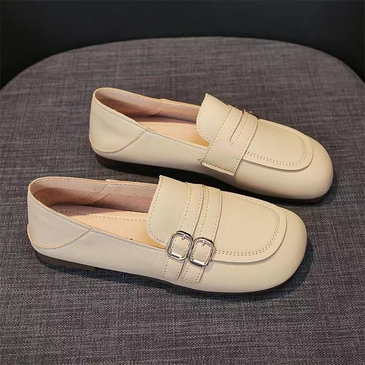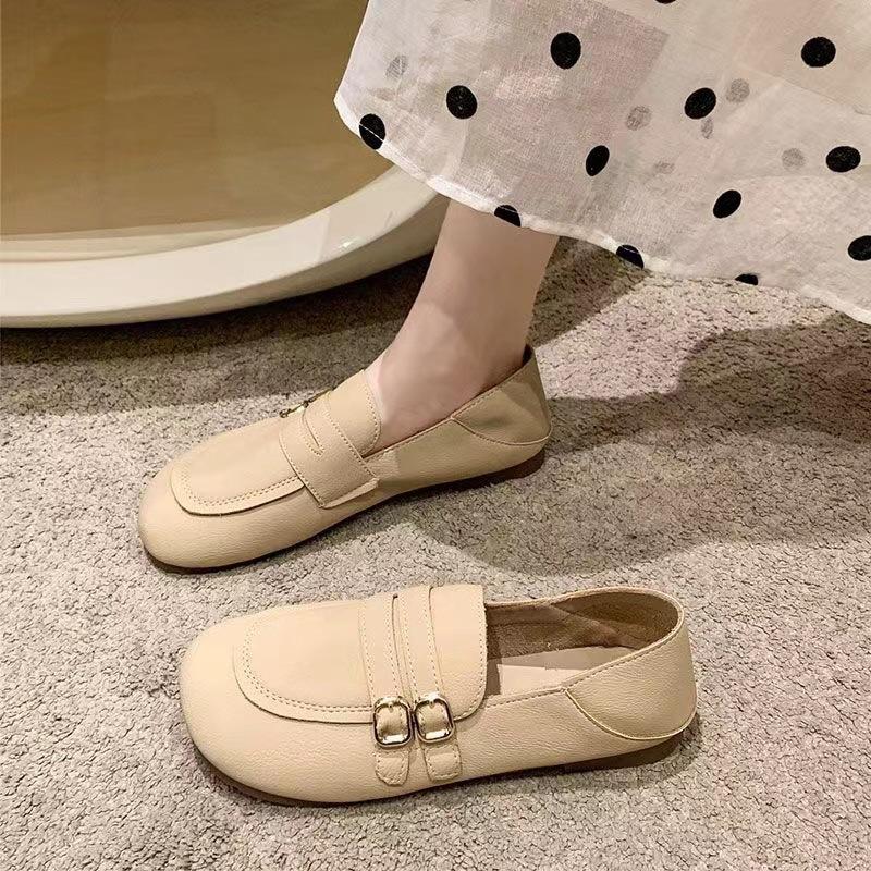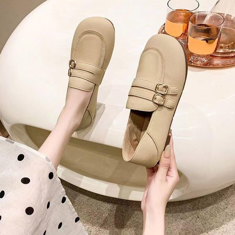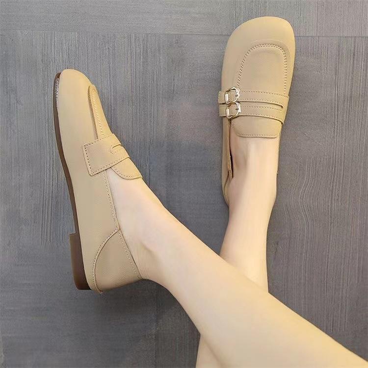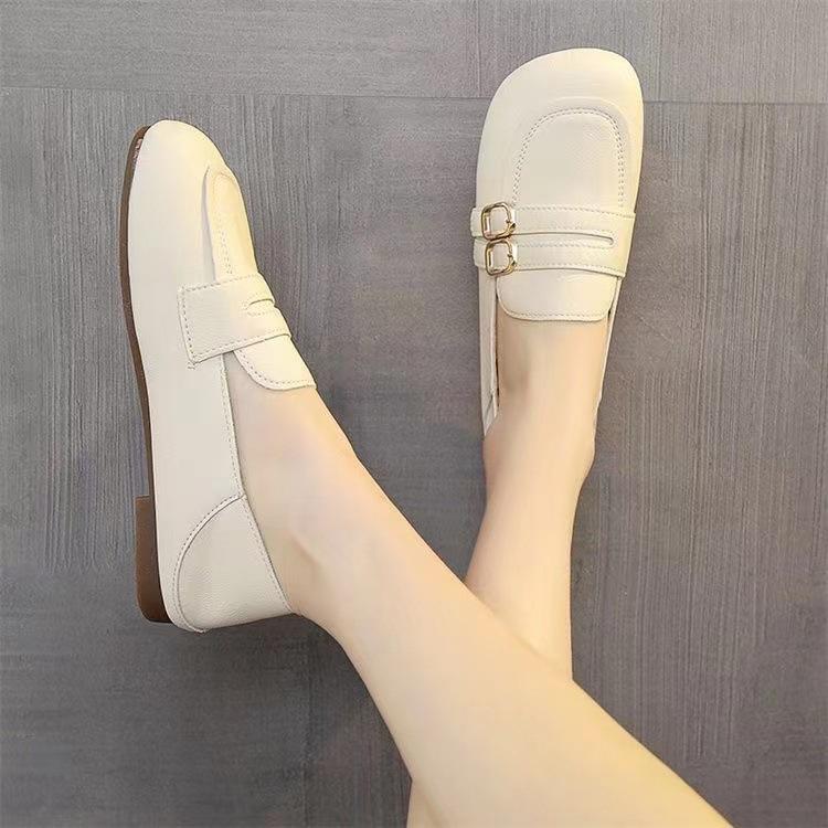 Sapatos Baixos Solteiros Estilo Coreano Feminino 2025 Outono Novo Versátil Slip-on Dois-usos Decote Baixo Solado Macio Mocassins de Couro Macio