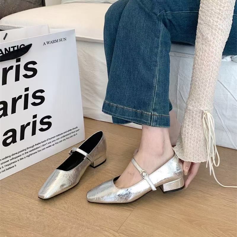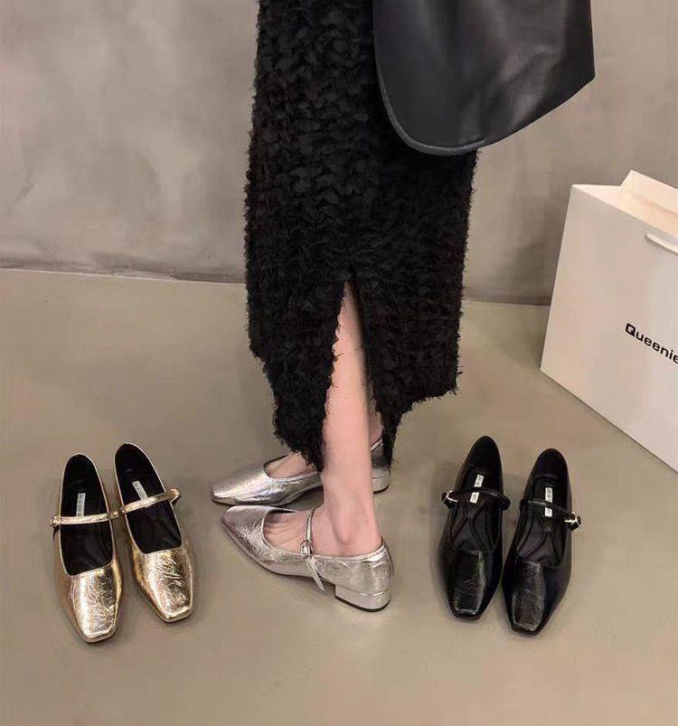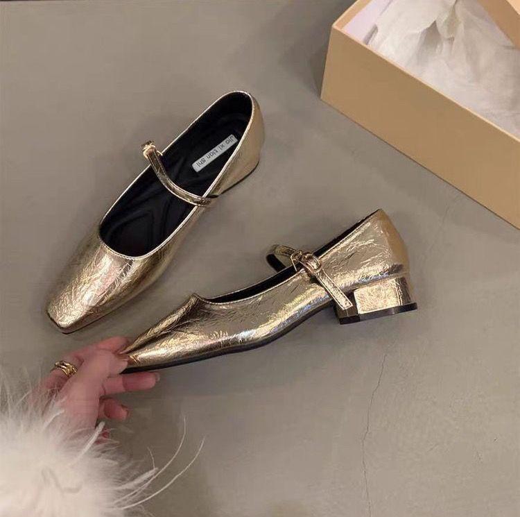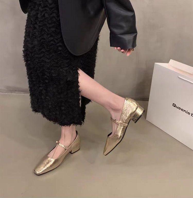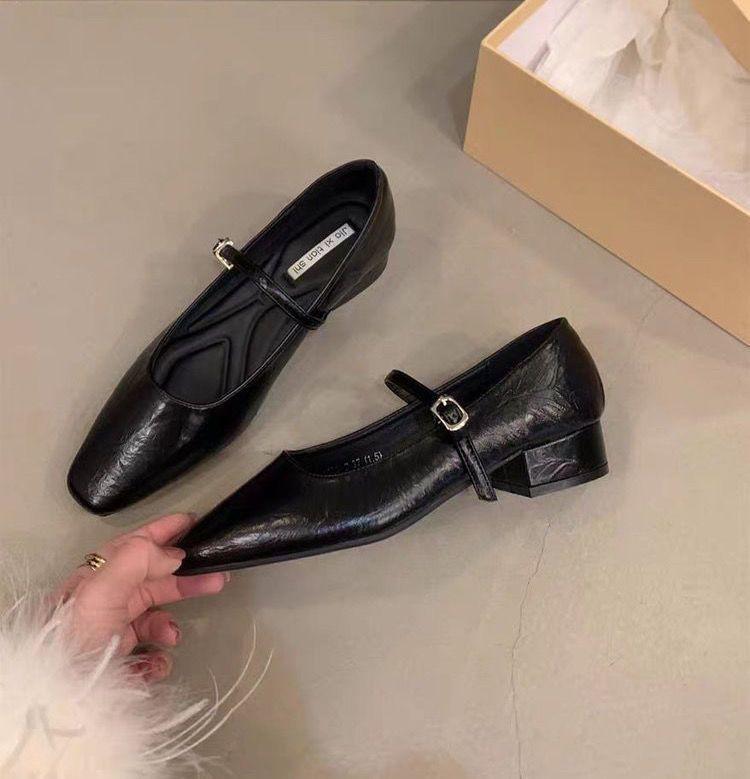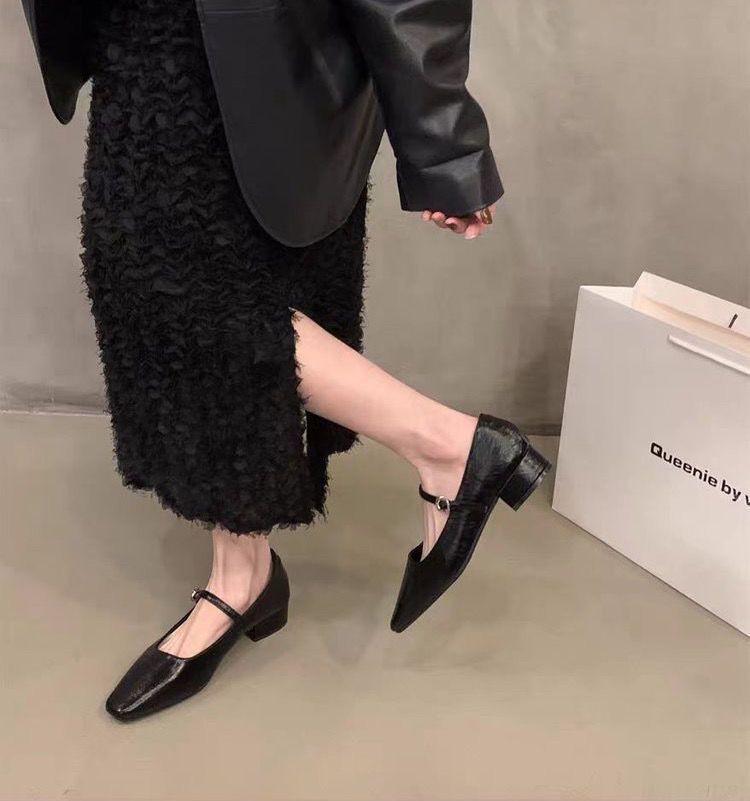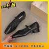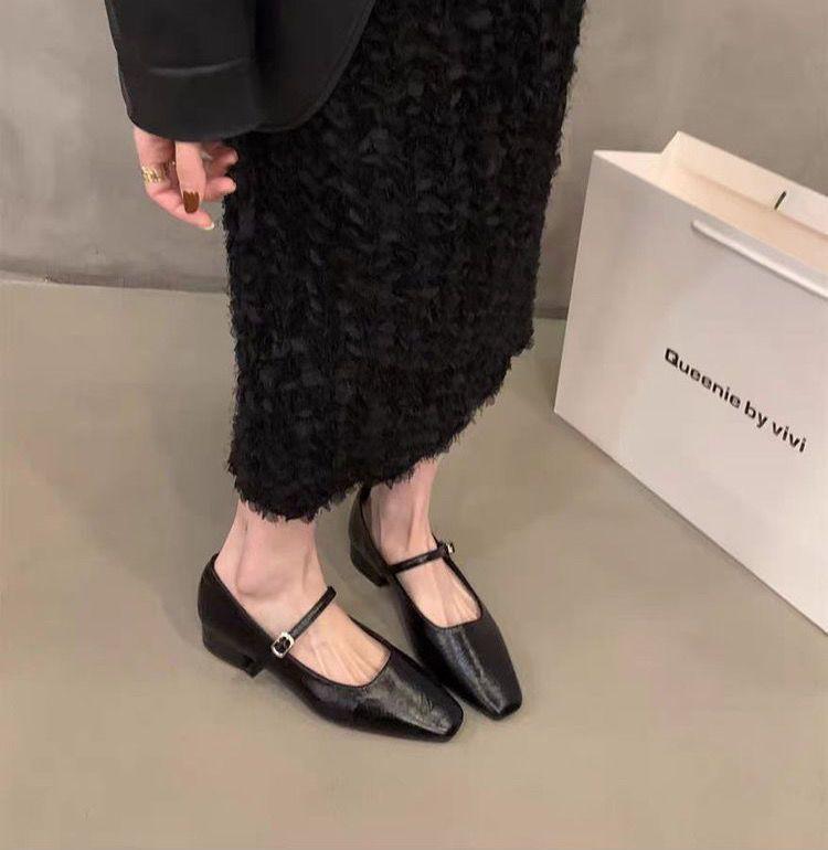 Zapatos de piel pequeños de punta cuadrada de diseño nicho francés 2025 primavera nuevos tacón bajo tacón grueso boca poco profunda Mary Jane zapatos individuales mujer
