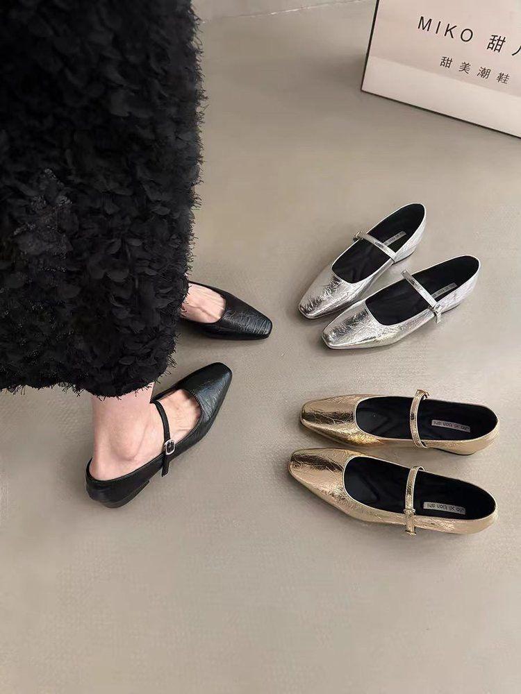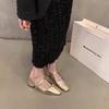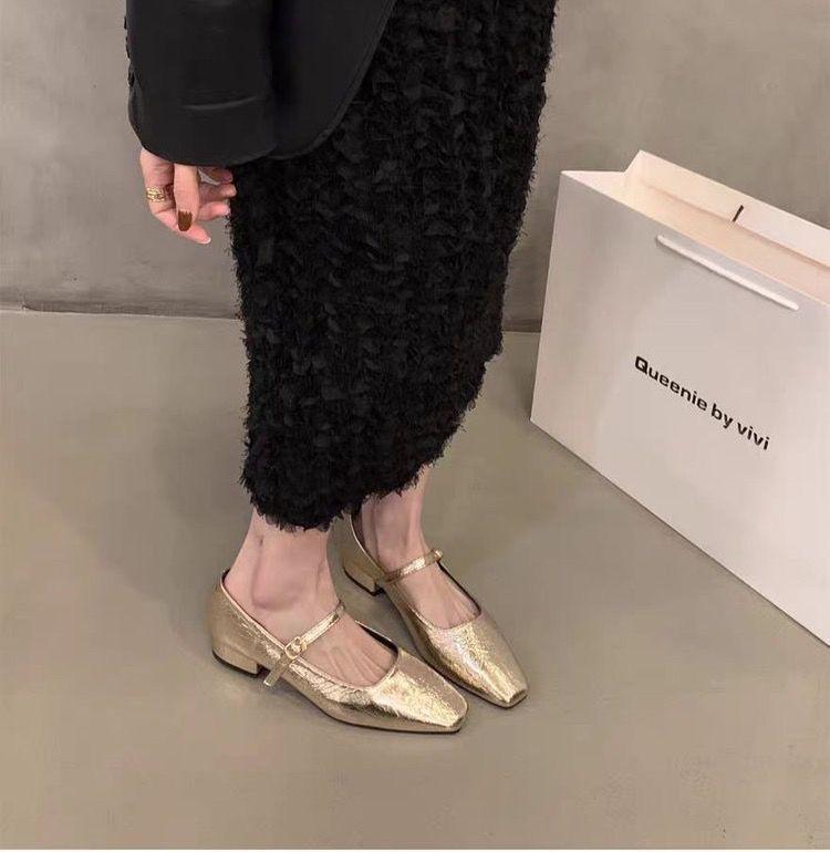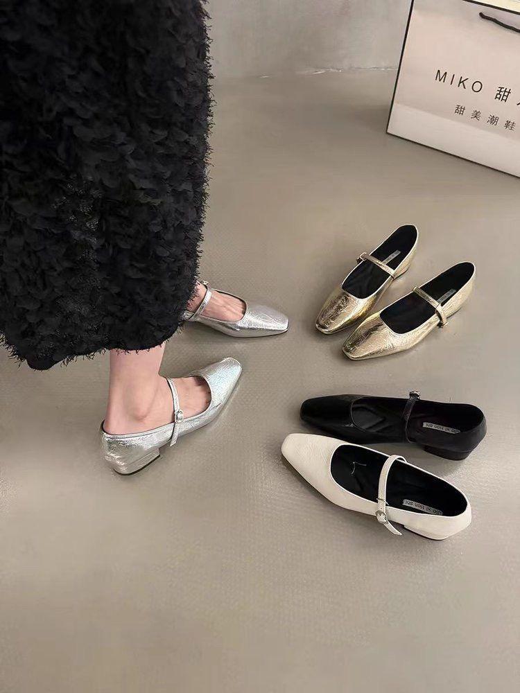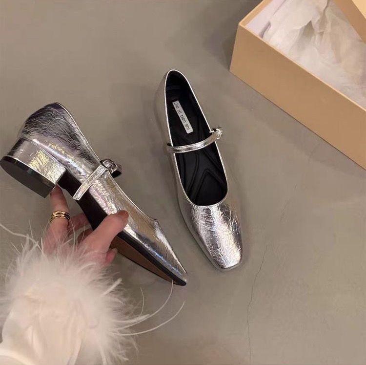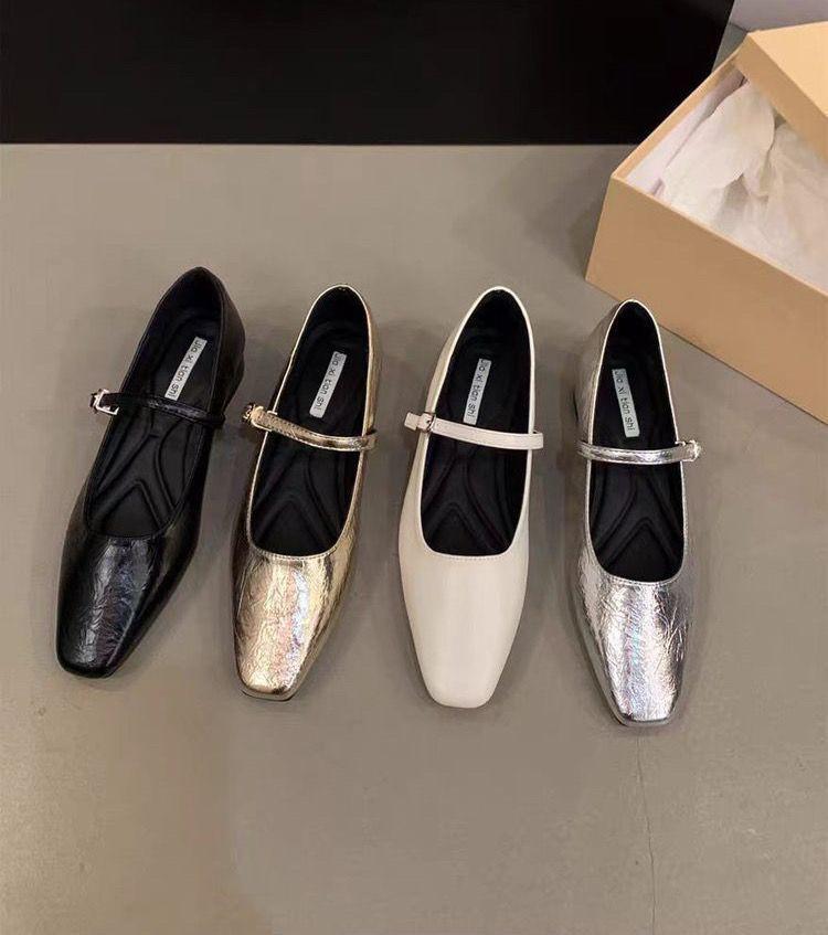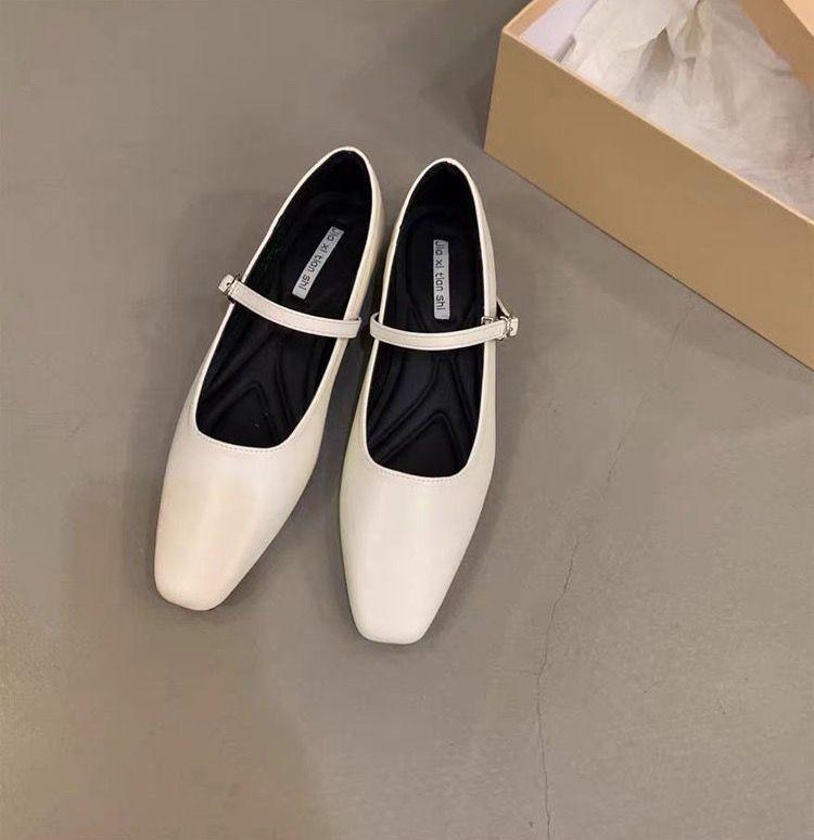 Zapatos de piel pequeños de punta cuadrada de diseño nicho francés 2025 primavera nuevos tacón bajo tacón grueso boca poco profunda Mary Jane zapatos individuales mujer