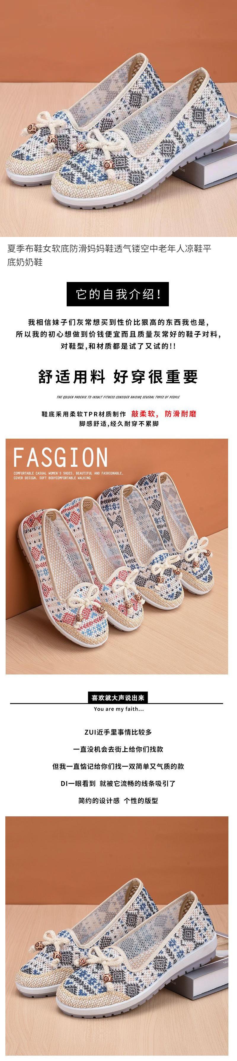 Compra Zapatos de Tela de Verano para Mujer, Zapatos de Mamá Antideslizantes de Suela Blanda, Sandalias Huecas Transpirables para Personas de Mediana Edad y Mayores, Zapatos de Abuela a la Moda de Suela Plana al por mayor en Joom.pro