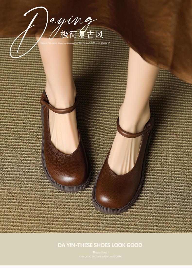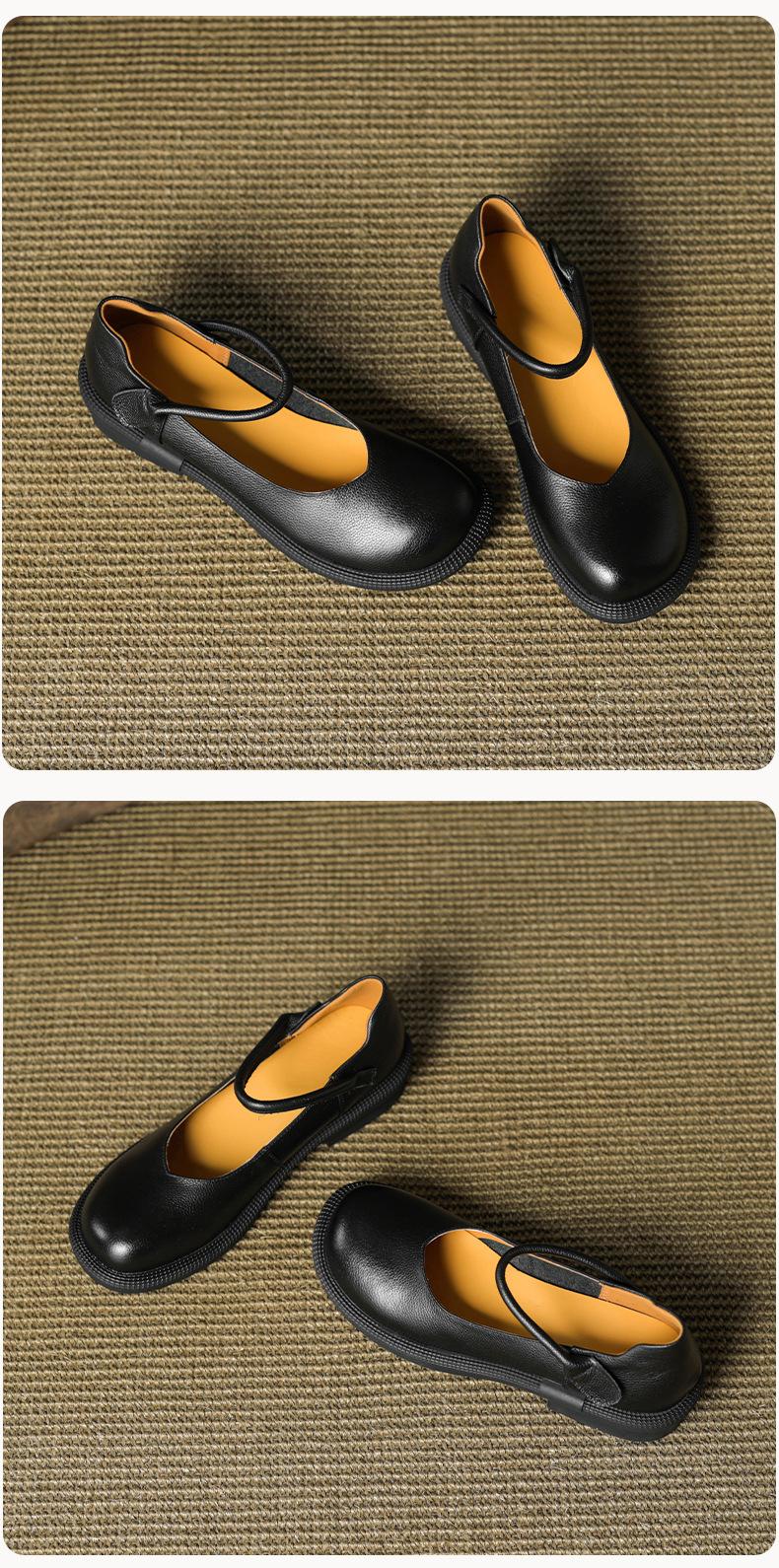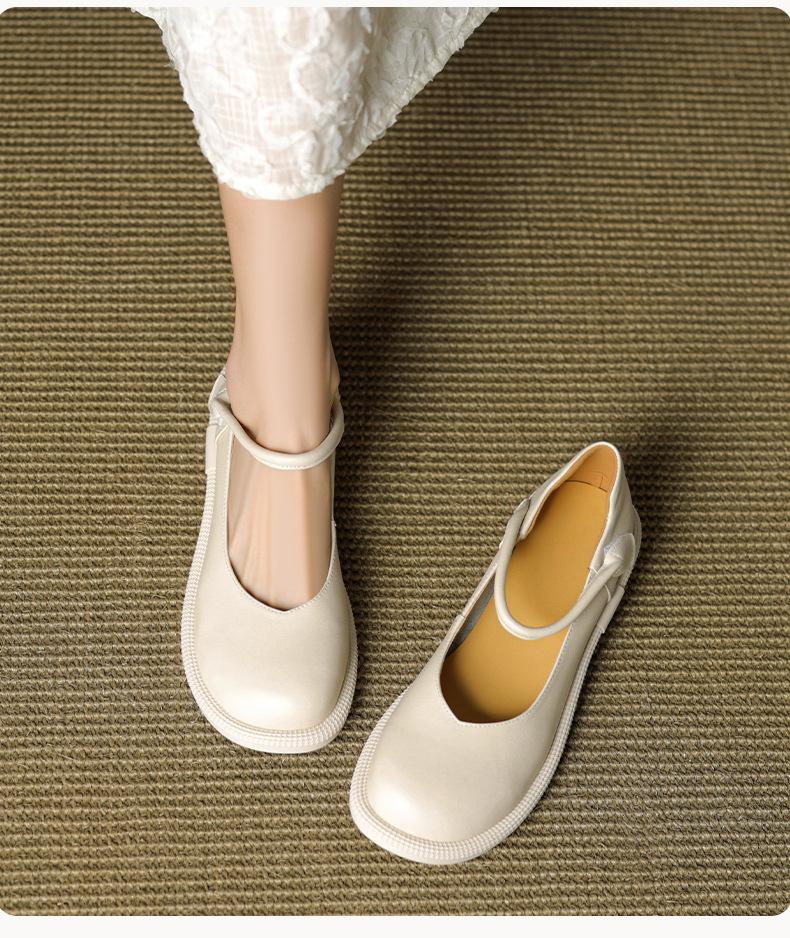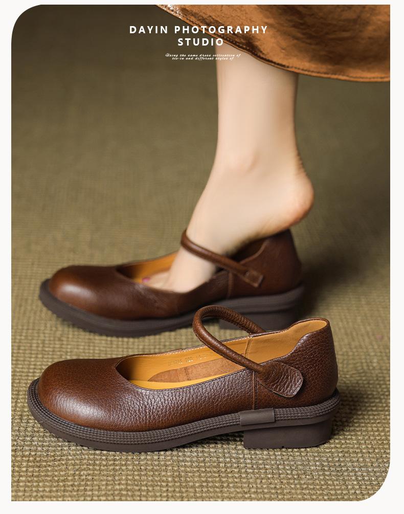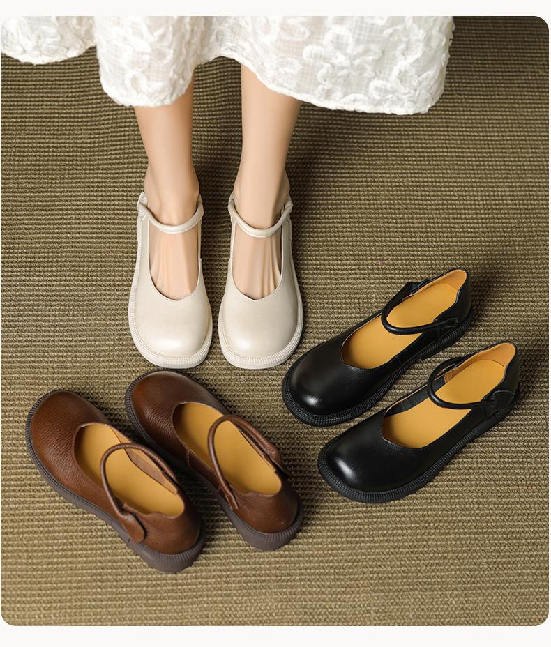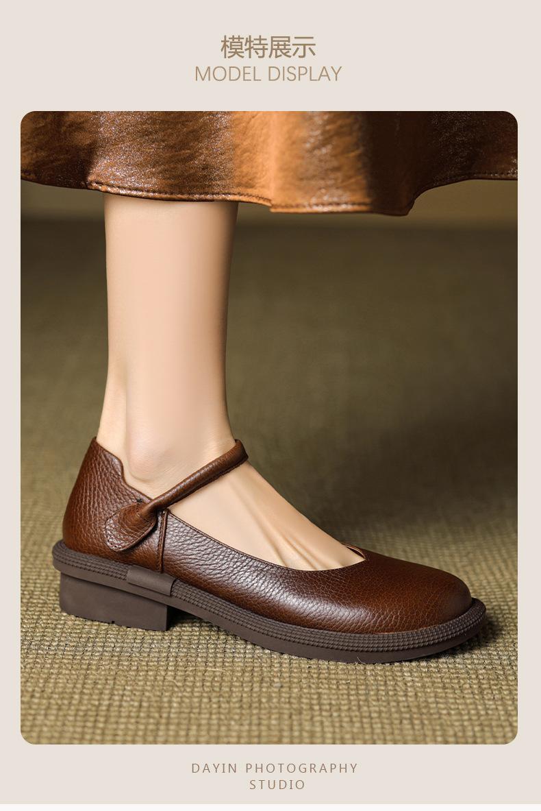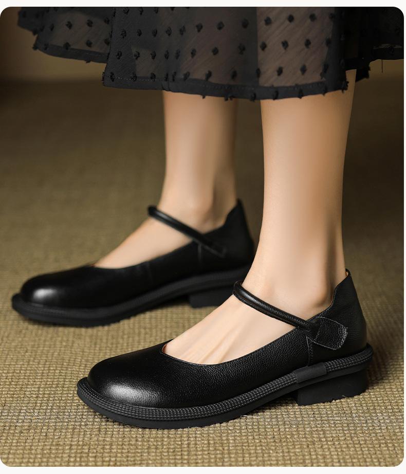 Zapatos de Cuero Genuino Vintage Pequeños Zapatos de Cuero Corte Bajo Zapatos Individuales Mujer 2025 Nuevo Primavera y Otoño Zapatos de Mujer Punta Redonda Mary Janes