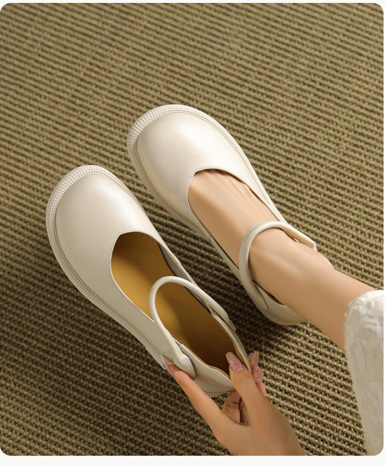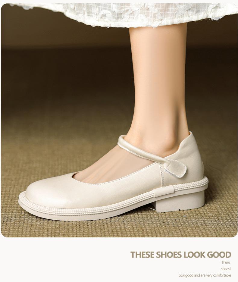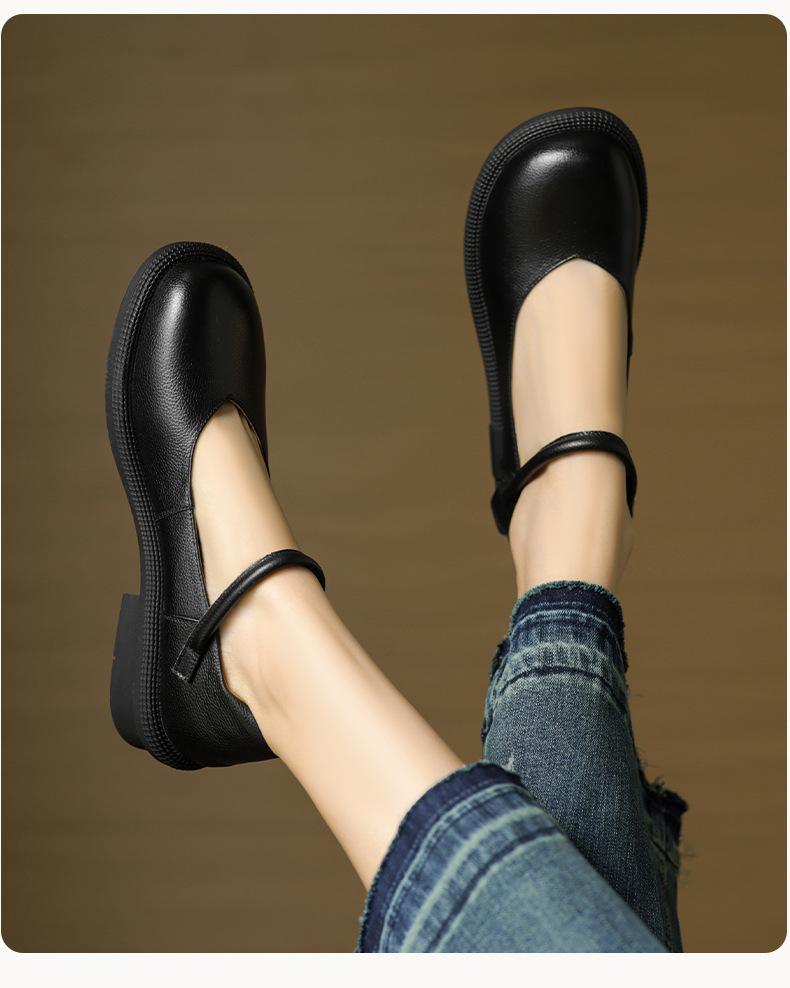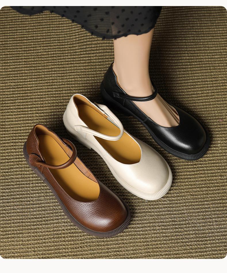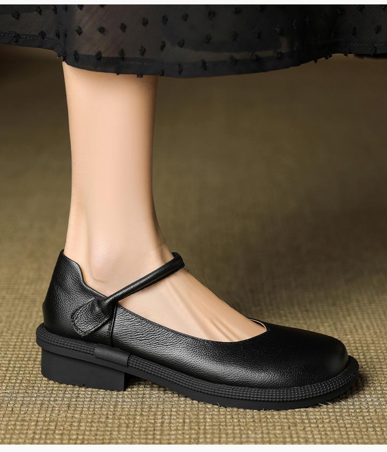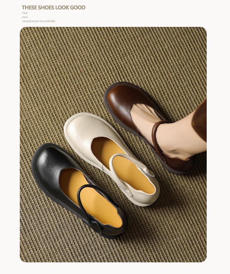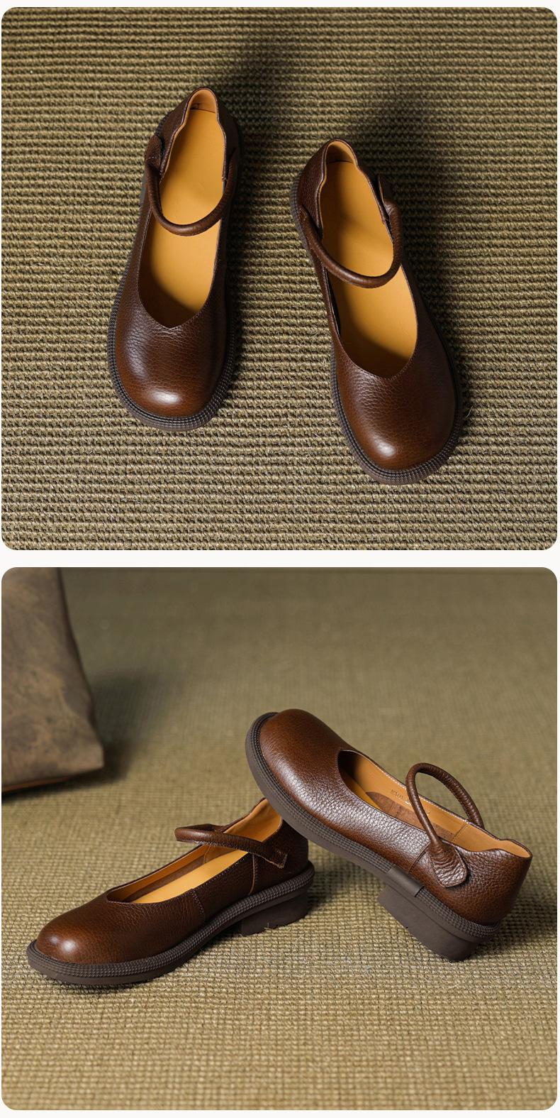 Zapatos de Cuero Genuino Vintage Pequeños Zapatos de Cuero Corte Bajo Zapatos Individuales Mujer 2025 Nuevo Primavera y Otoño Zapatos de Mujer Punta Redonda Mary Janes