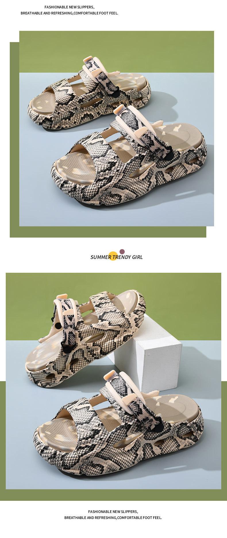 Sandalias de verano nuevas para mujer de una línea con suela gruesa, piel de serpiente, EVA antideslizante, resistente al desgaste, transpirable, no apestan los pies, pantuflas de playa