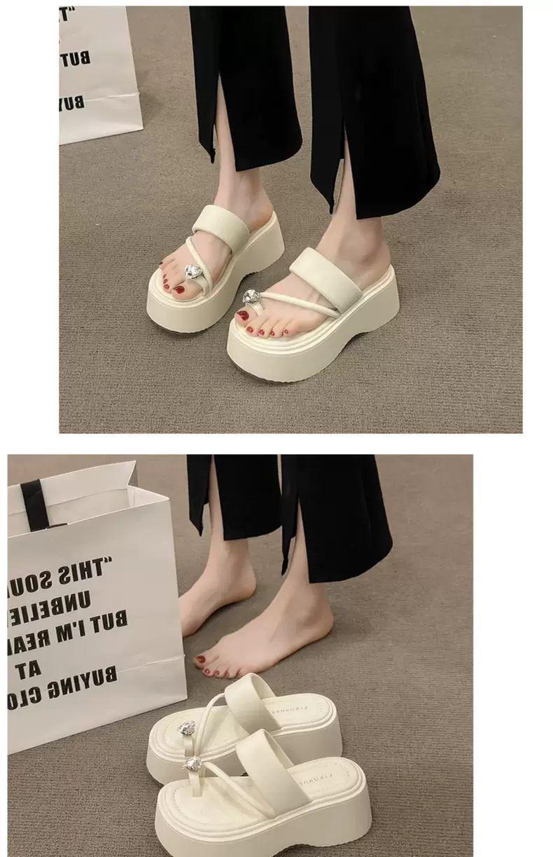 Sandalias populares de plataforma con pedrería para mujeres bajas para aumentar la altura, sandalias y pantuflas de moda nueva para mujer para el verano de 2025
