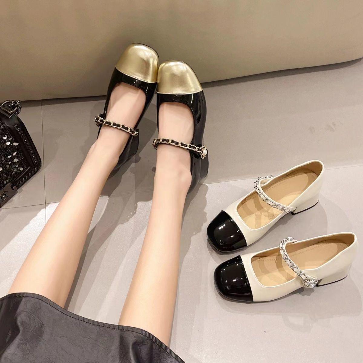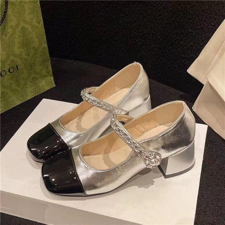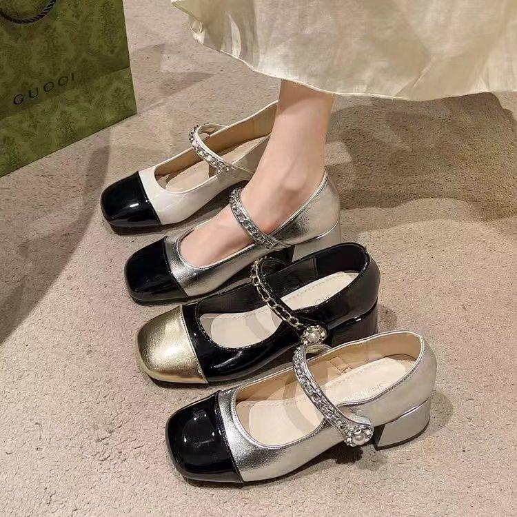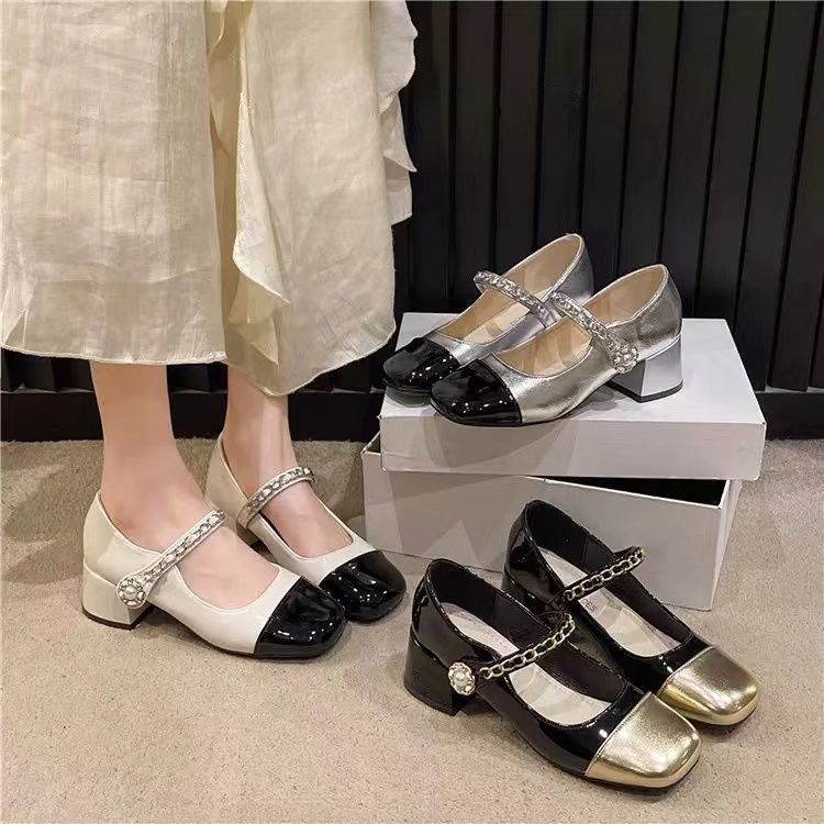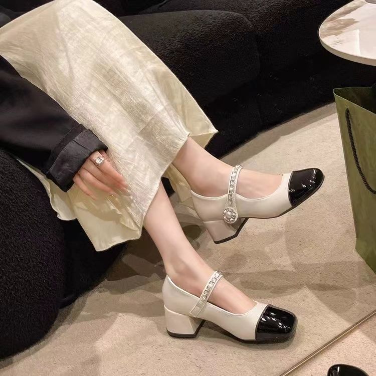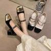 Zapatos Mary Jane de una tira de nuevo estilo de otoño 2025, zapatos de noche a juego de colores, versátiles, de tacón grueso, estilo pequeña fragancia para mujer