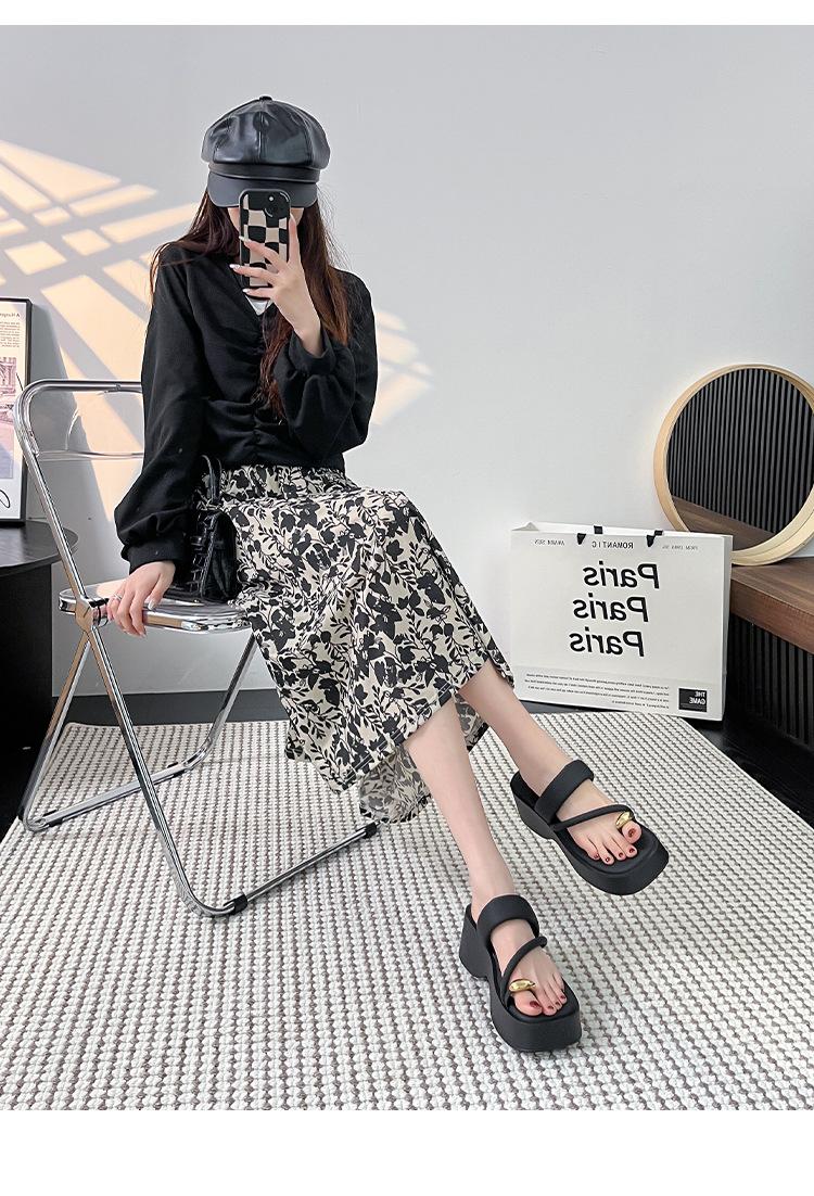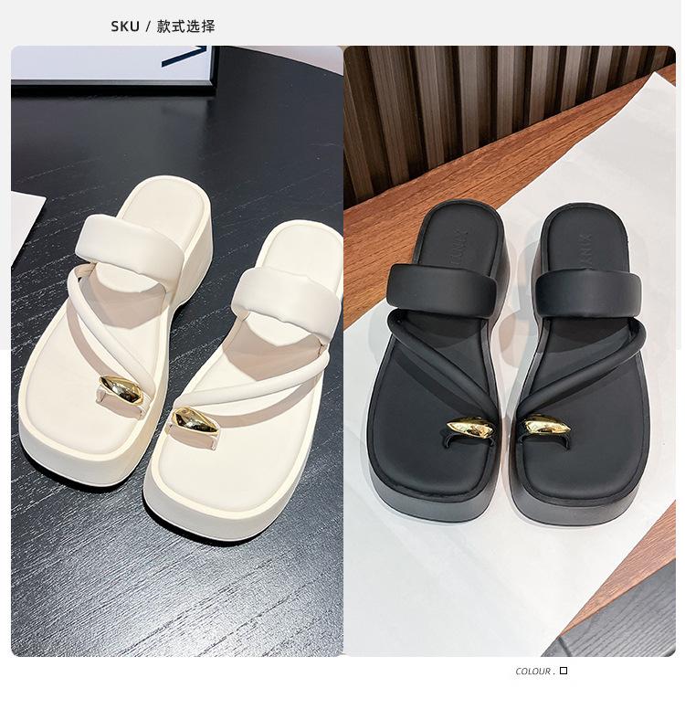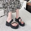 Sandalias y pantuflas de suela gruesa para mujer 2025 verano lo último con falda playa sandalias de dedo para mujer pantuflas de una línea de moda para mujer