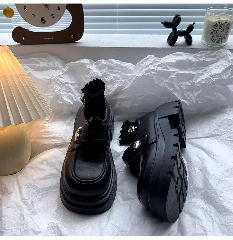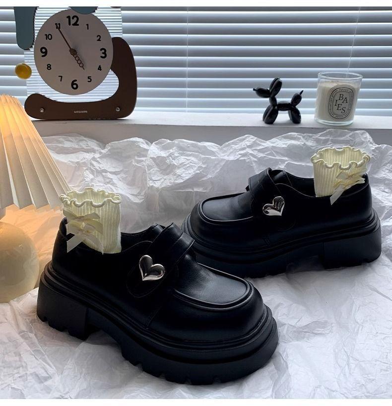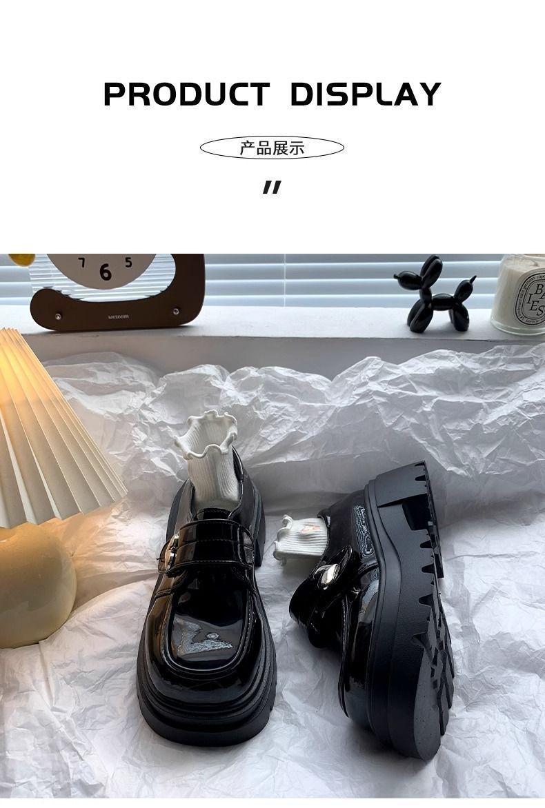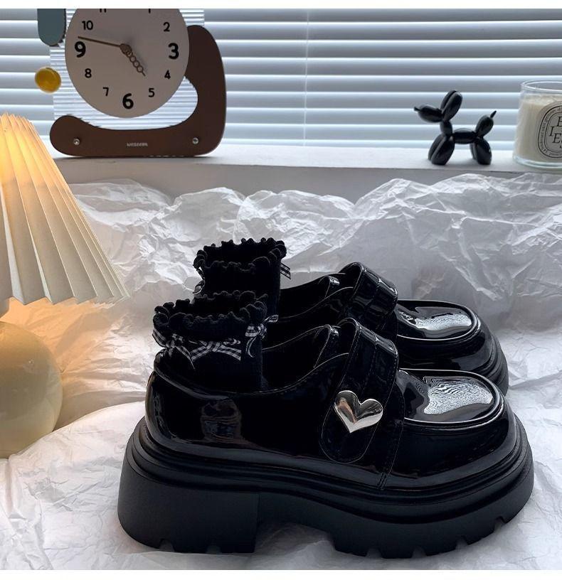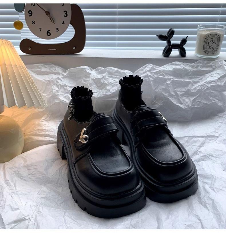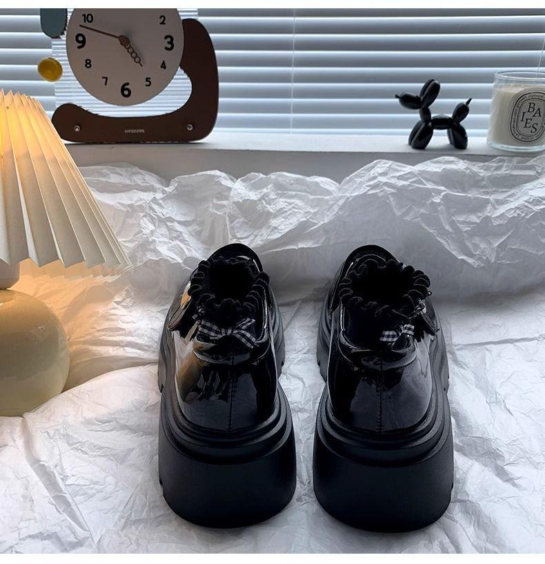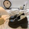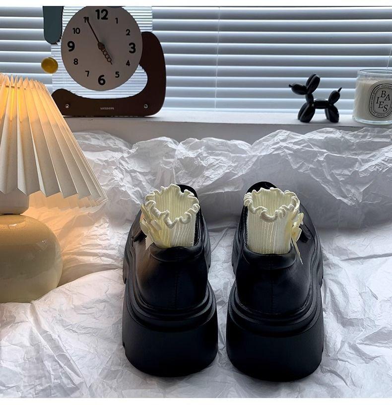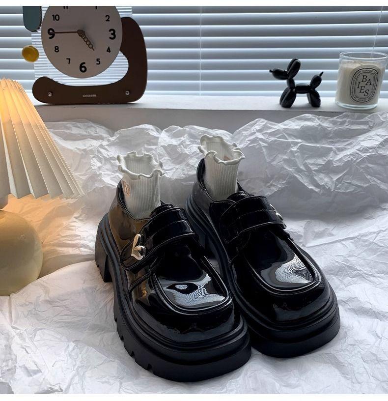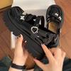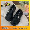 Zapatos Mary Jane de suela gruesa que combinan con todo y realzan la altura de la falda, nuevos para el otoño de 2024, zapatos de cuero pequeños Lefu de cabeza grande negros para mujer