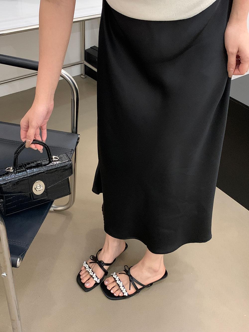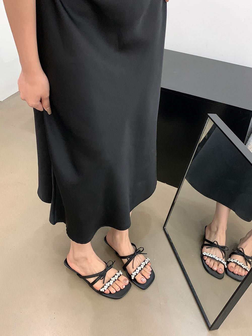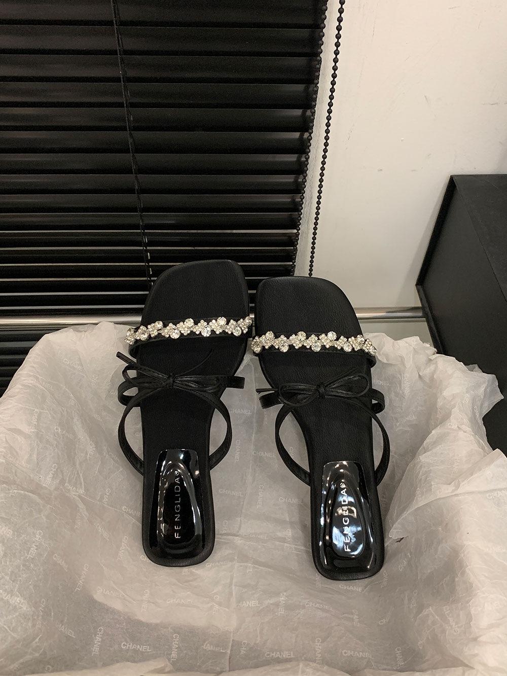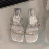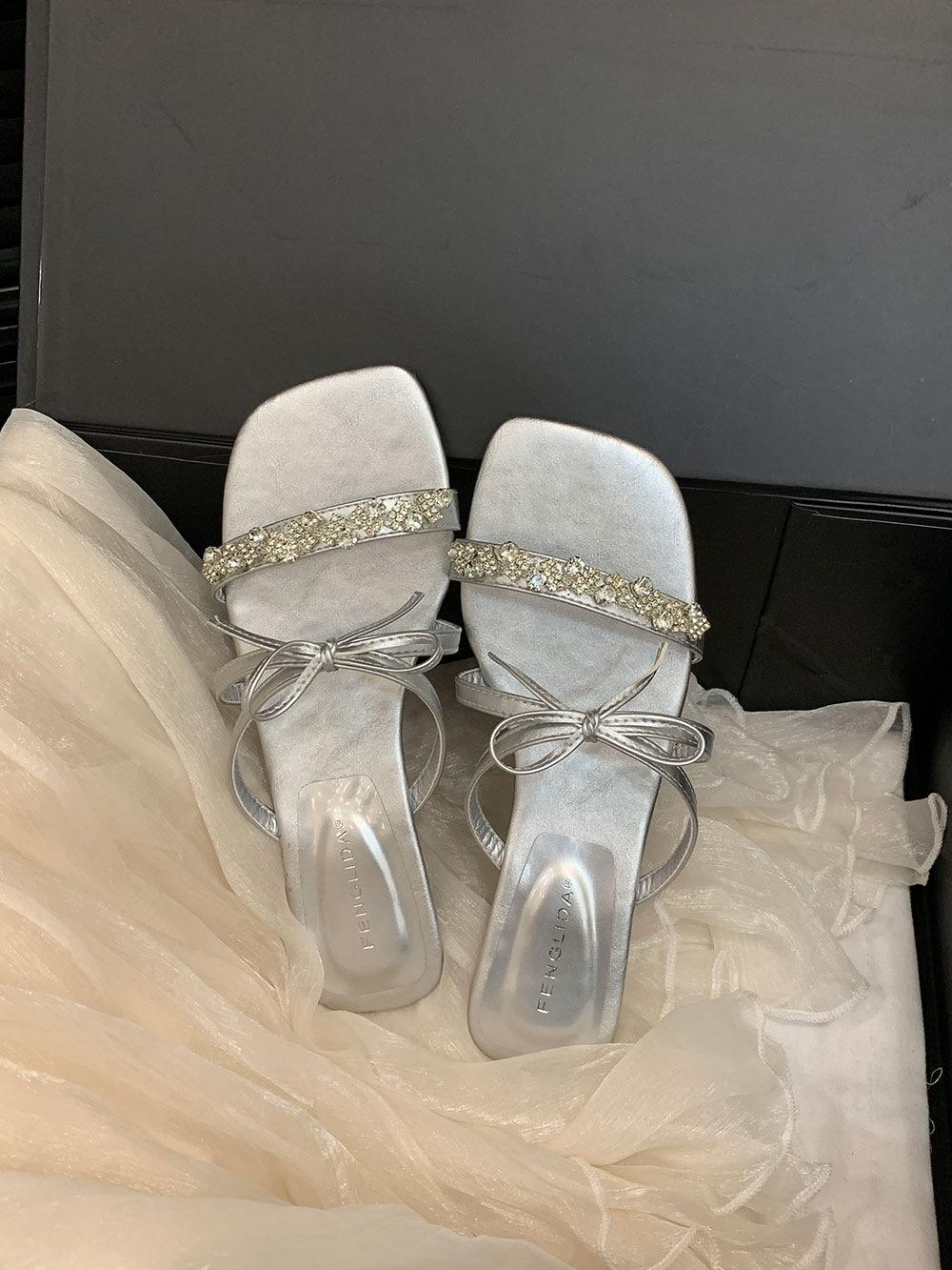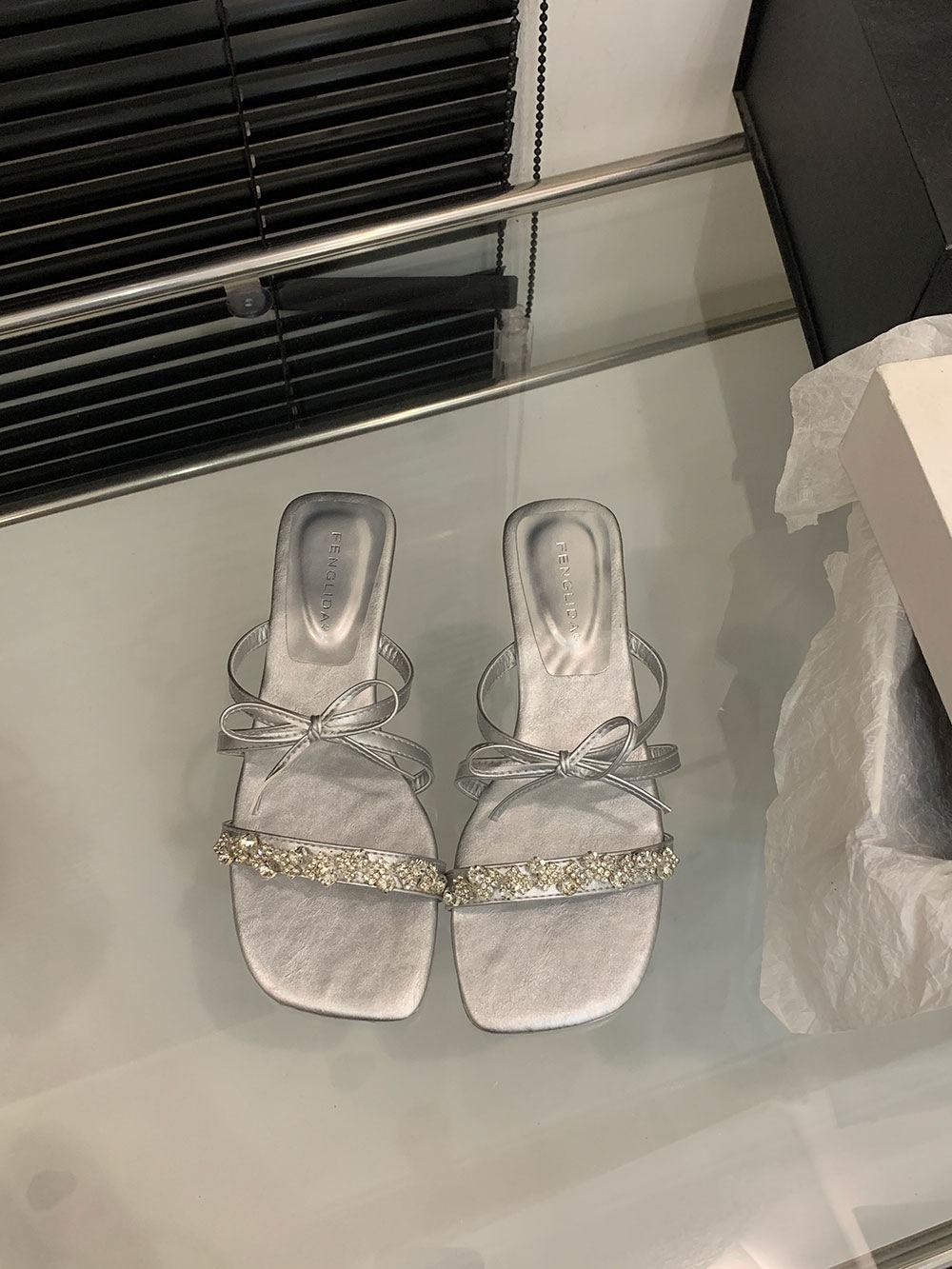 Pantuflas Francesas de Tacón Plano con Pedrería Zapatos de Hada para Exterior Verano 2025 Rosa Falda Lazo Sandalias