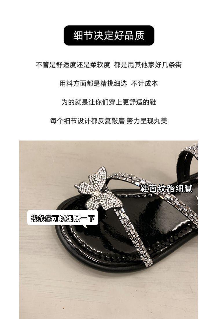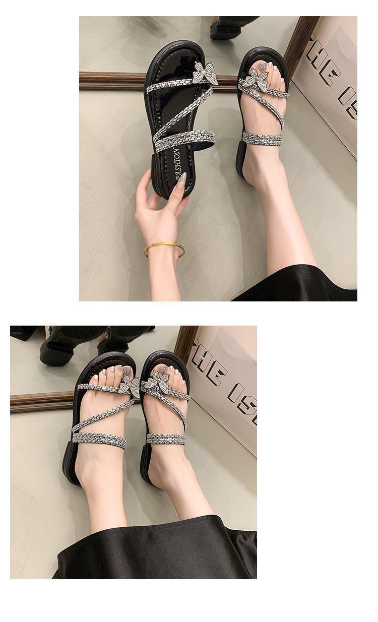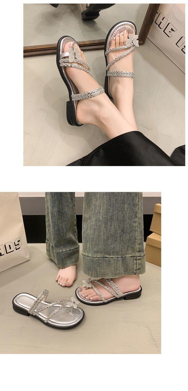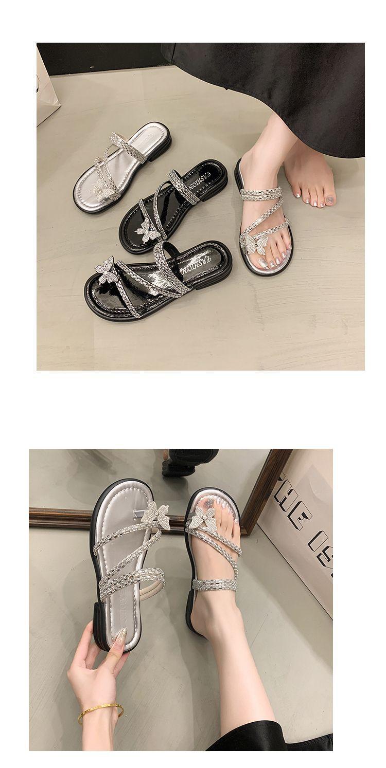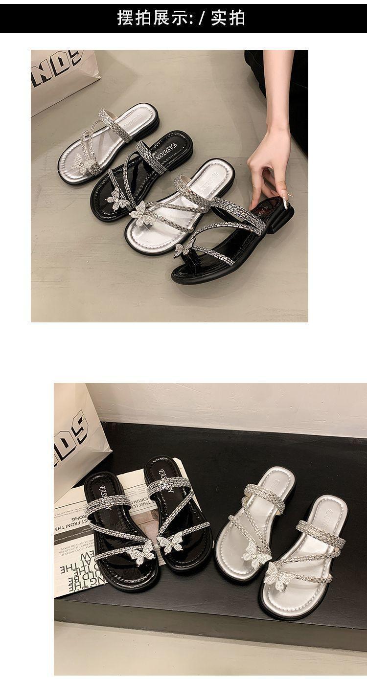 Anillo de Dedo Mariposa de Pedrería Plana Exquisitas Pantuflas Mujer 2025 Nuevo Dos Usos Pantuflas de Playa Mujer Verano para Salir