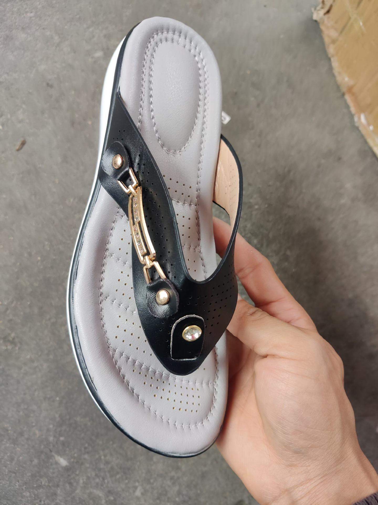Primavera y Verano 2025 Nuevas Pantuflas de Cuña Sandalias de Playa para Mujer Hebilla Metálica Cuña Moda Casual Europeas y Americanas Talla Grande Sandalias de Mujer