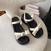 Zapatos de Playa Antideslizantes con Lazo de Hada para Mujer 2025 Verano Nuevo Exterior Suela Gruesa Una Tira Sandalias Versátiles Estilo Coreano