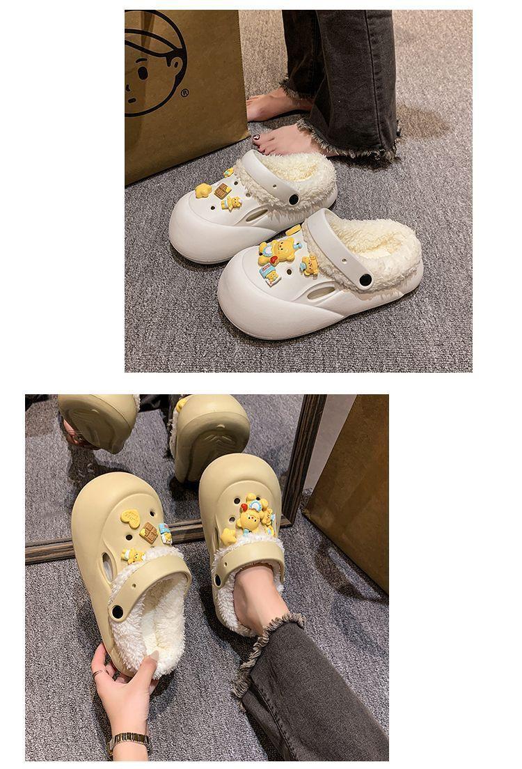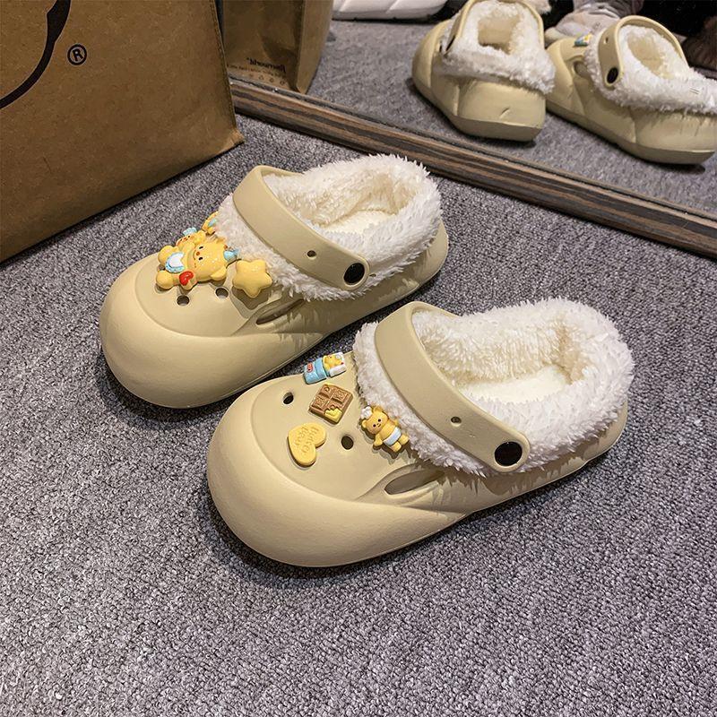 Pantuflas Peludas Cálidas y Cómodas de Terciopelo de Felpa para Uso Exterior Impermeables para Casa Antideslizantes de Algodón con Suela Gruesa Nuevo Estilo Otoño e Invierno 2025
