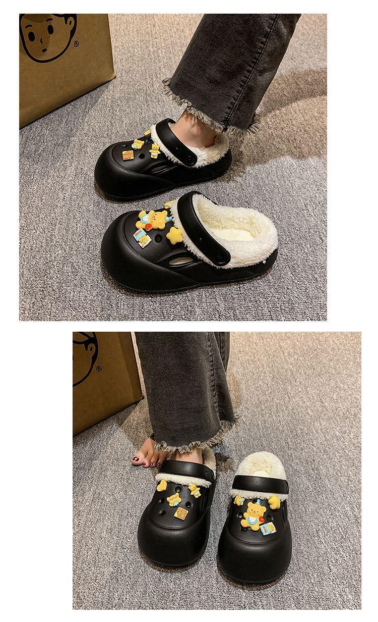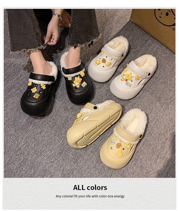 Pantuflas peludas cálidas y cómodas con forro polar 2025 otoño e invierno nuevas para exterior impermeables para casa antideslizantes de algodón con suela gruesa