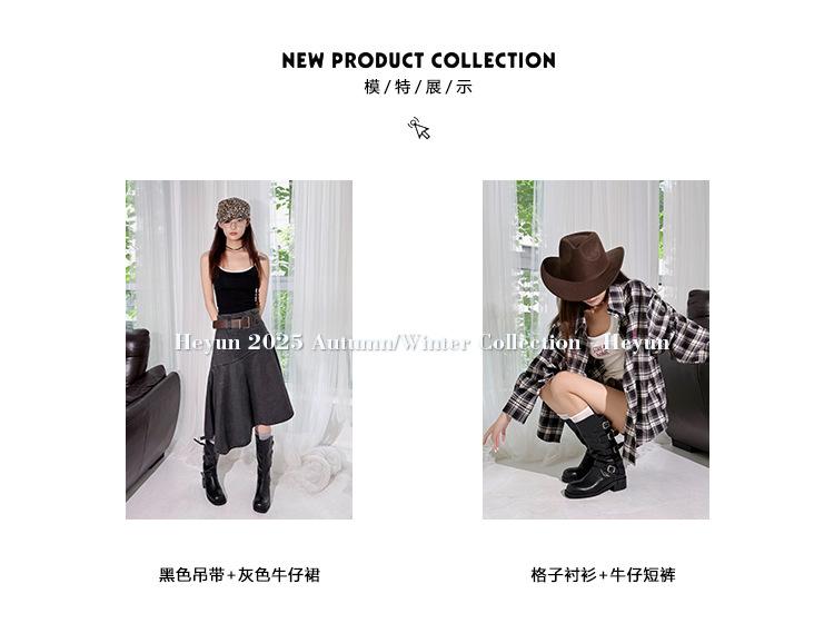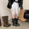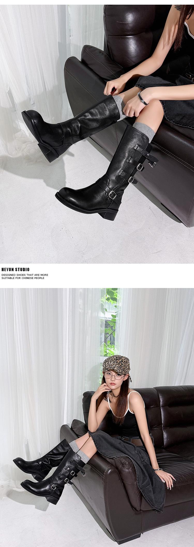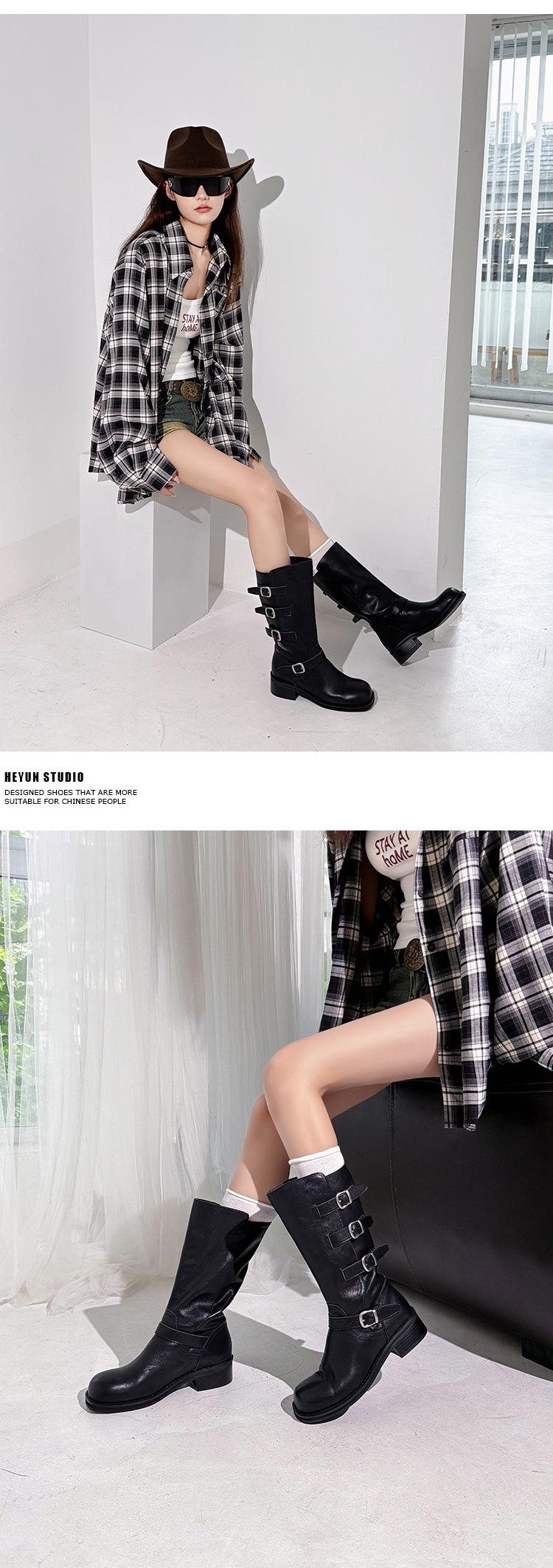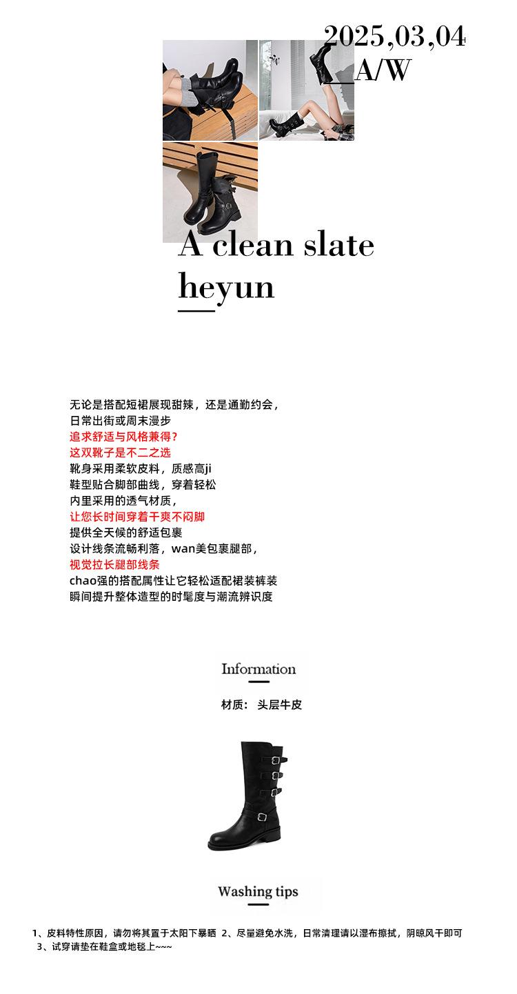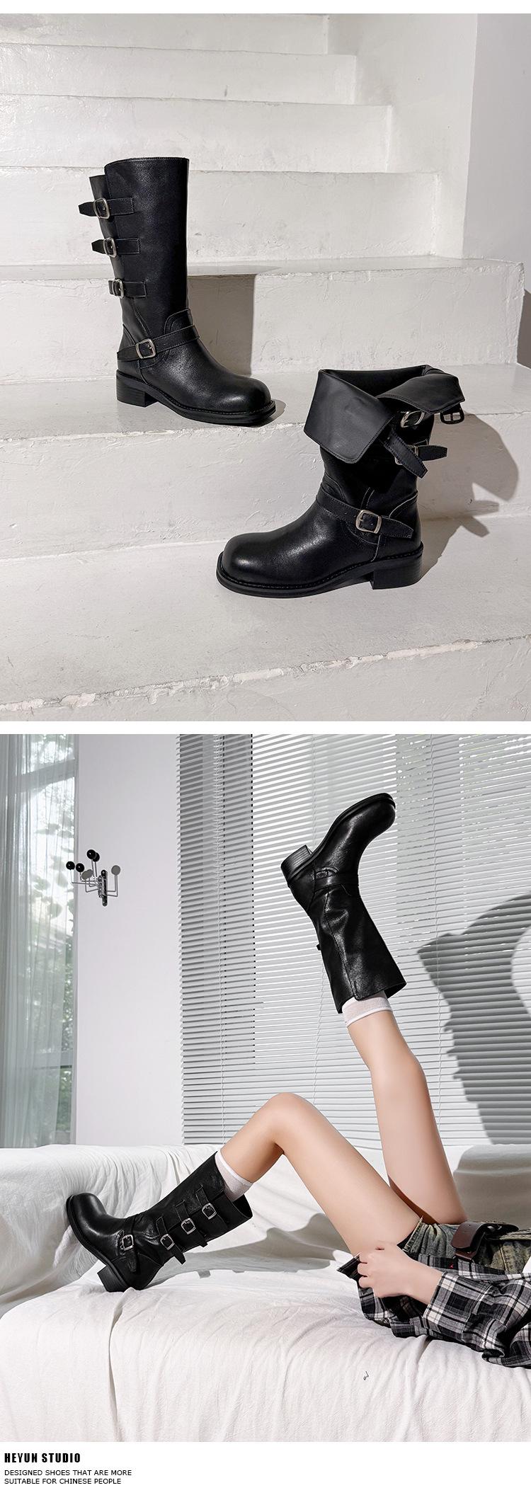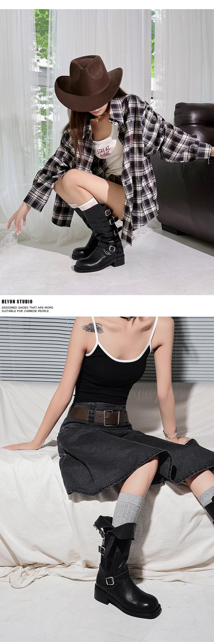 2025 Nuevas Botas Altas de Caballero Oscuro de Otoño e Invierno para Mujer, Cuero Completo Tacón Medio Hebilla de Cinturón Dos Usos Botas Dulces y Geniales por Encima de la Rodilla