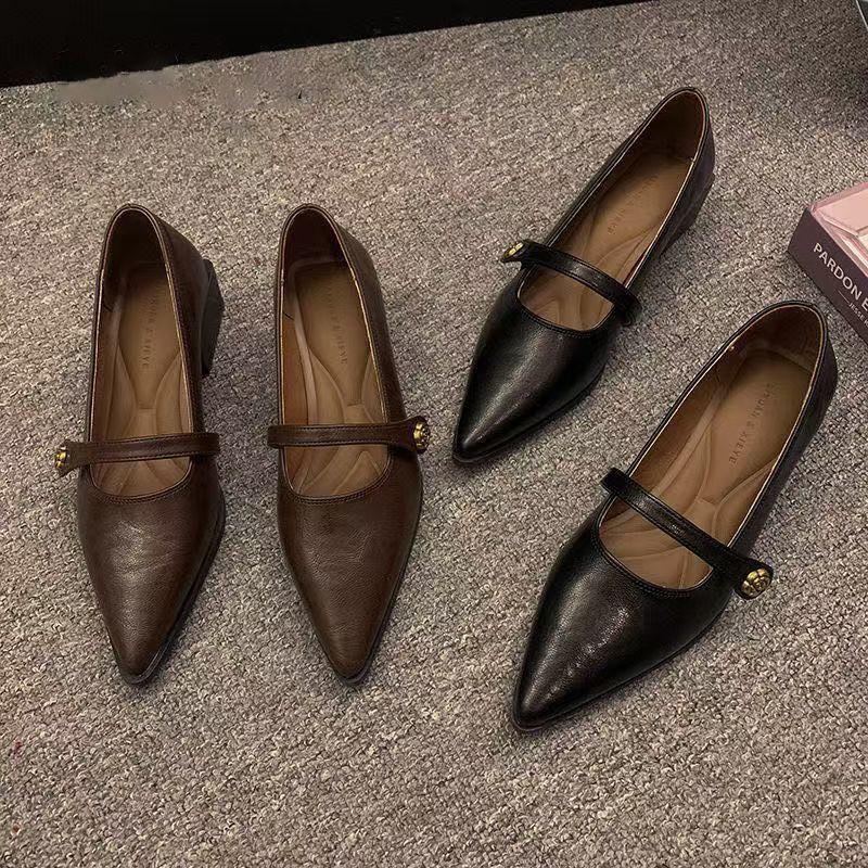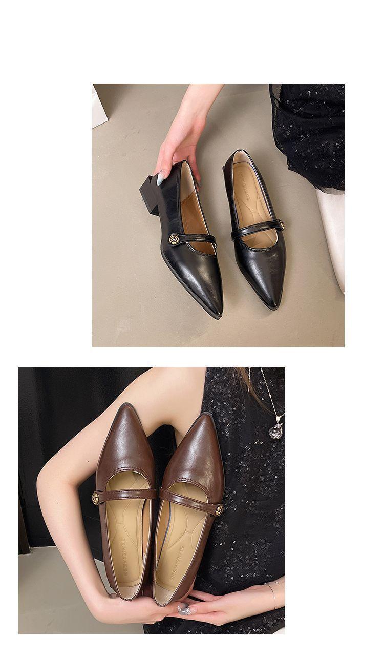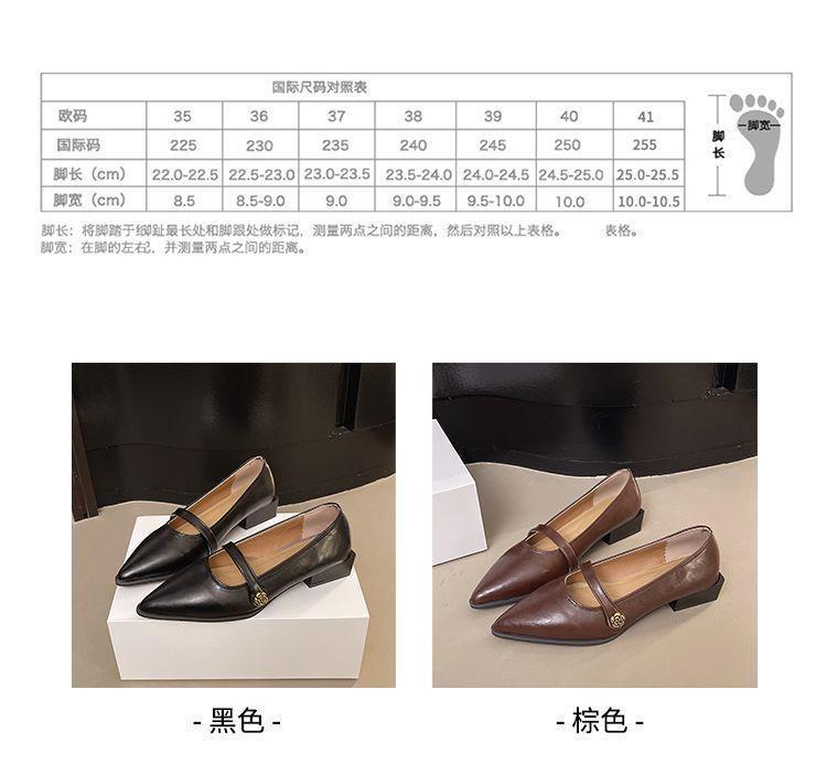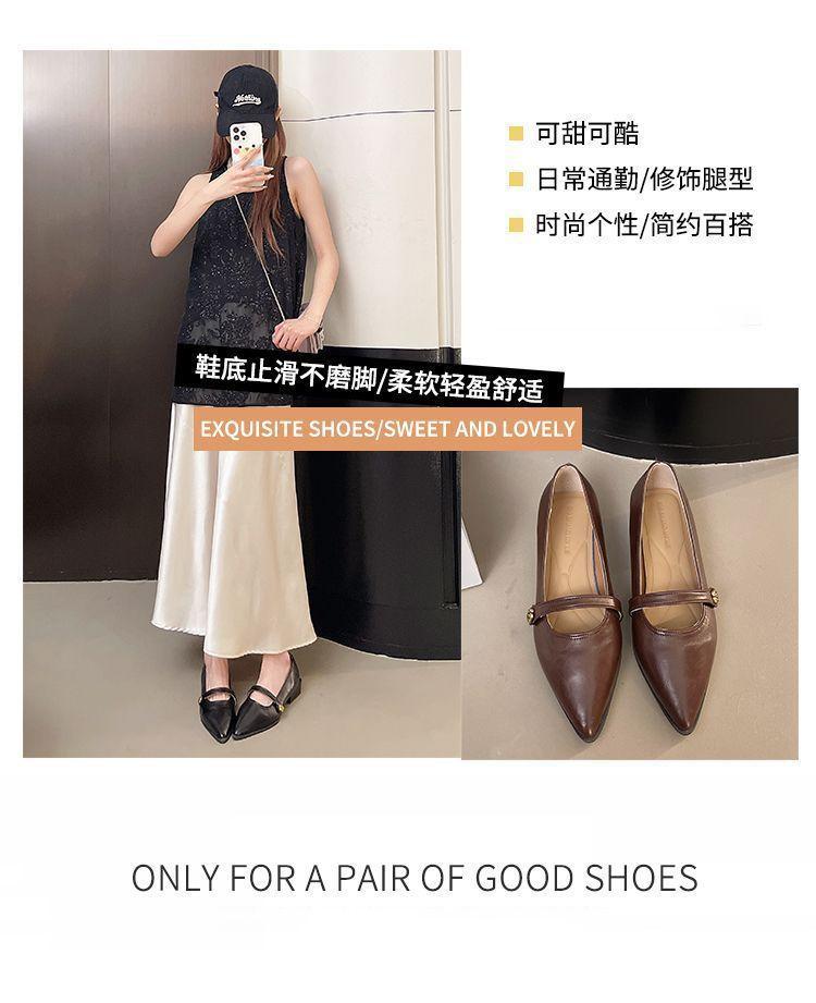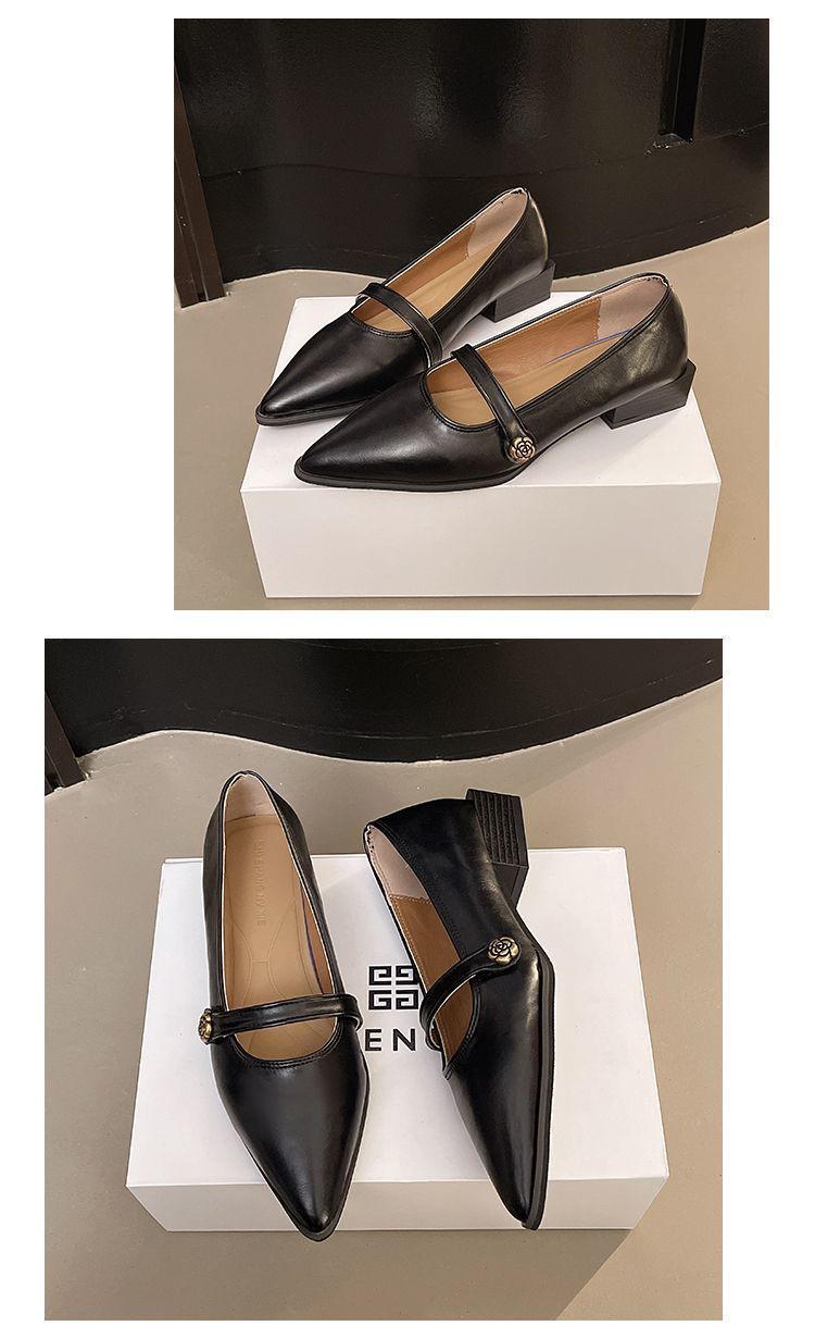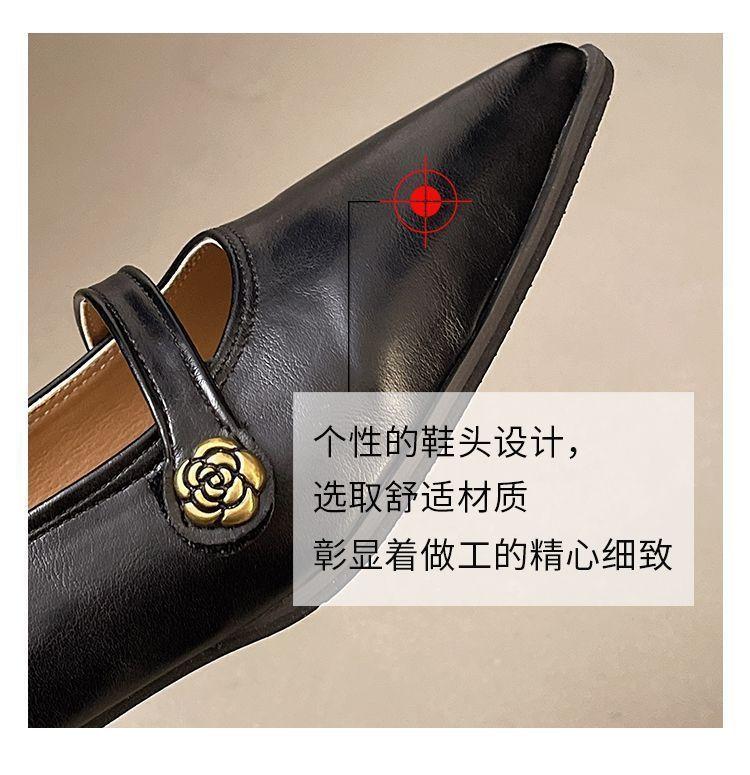 Zapatos de Tacón Alto Planos de Punta Negra para Primavera y Otoño 2025 Nuevo Estilo Francés Mary Jane Zapatos Pequeños de Cuero Zapatos de Mujer