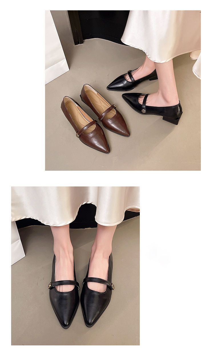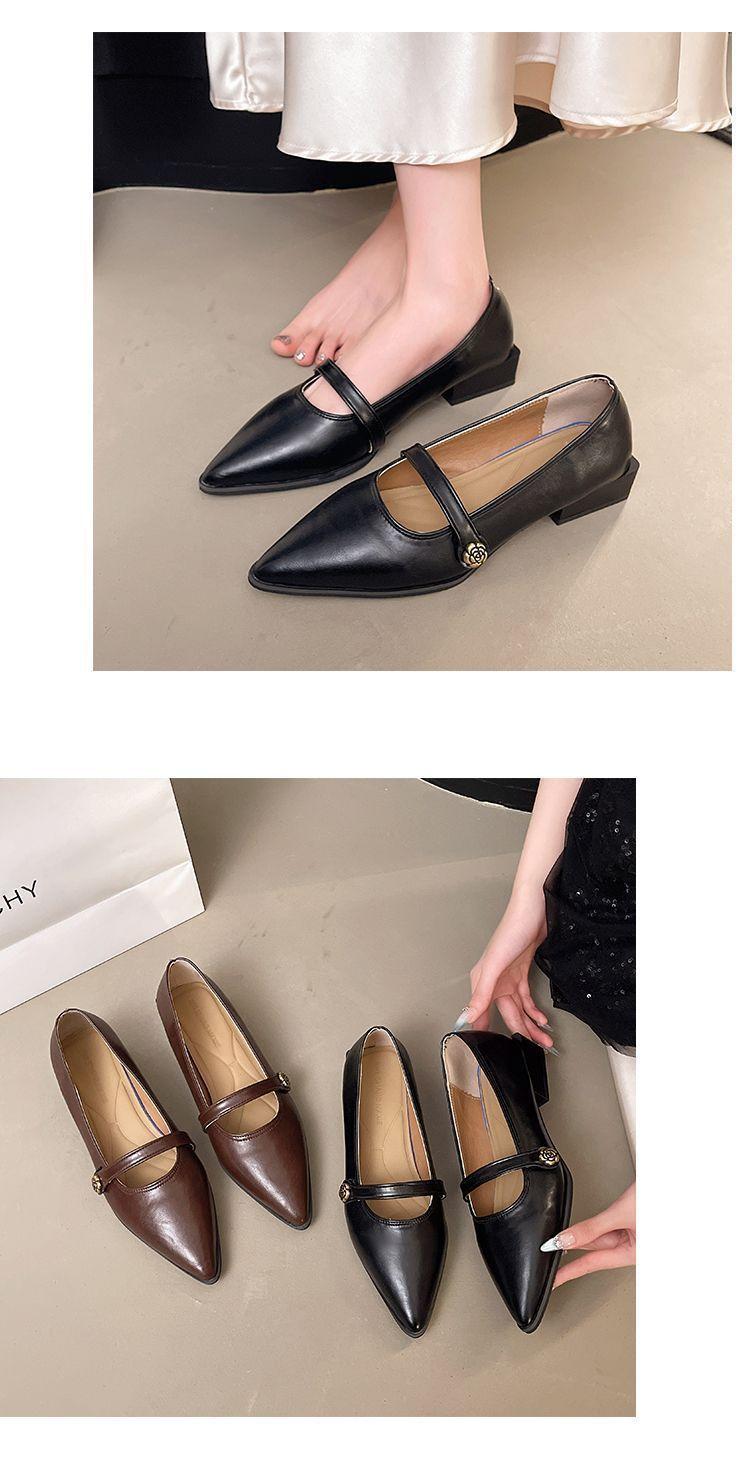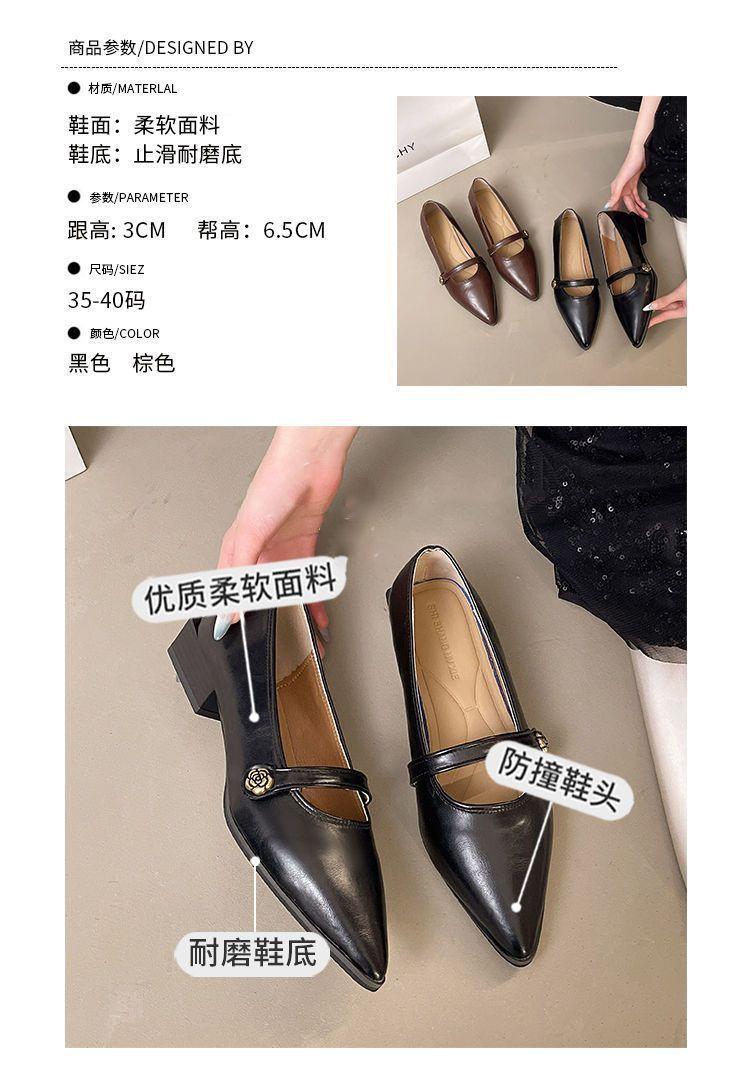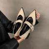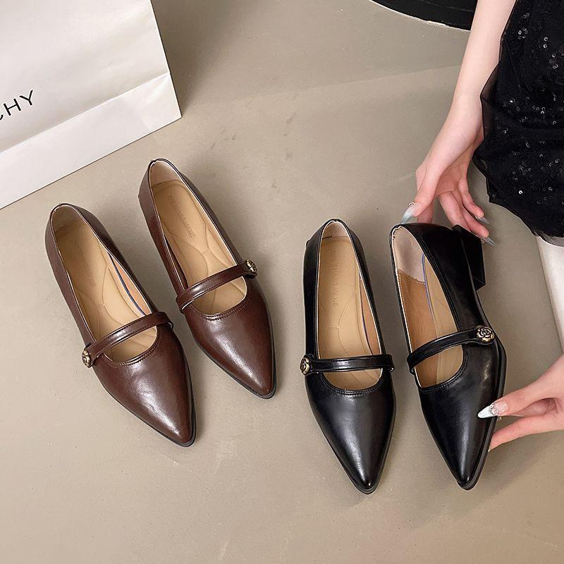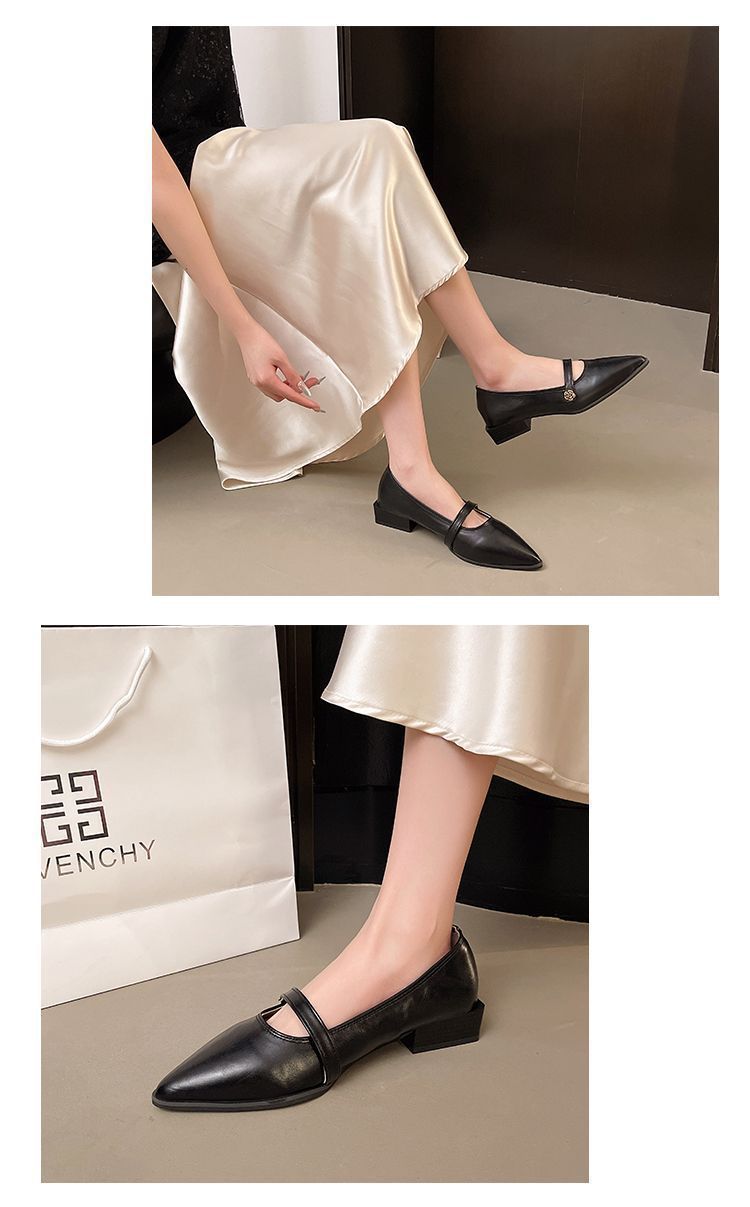 Zapatos de Tacón Alto Planos de Punta Negra para Primavera y Otoño 2025 Nuevo Estilo Francés Mary Jane Zapatos Pequeños de Cuero Zapatos de Mujer