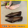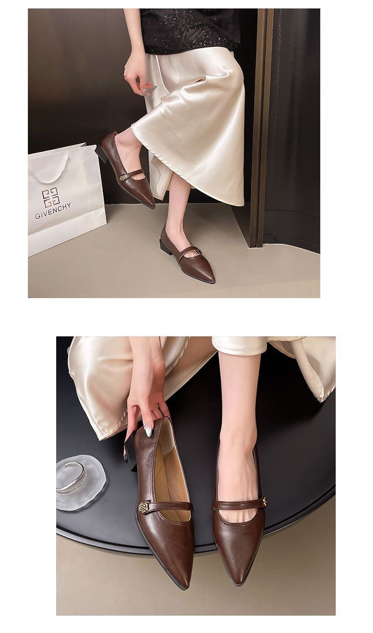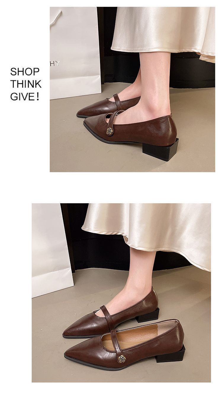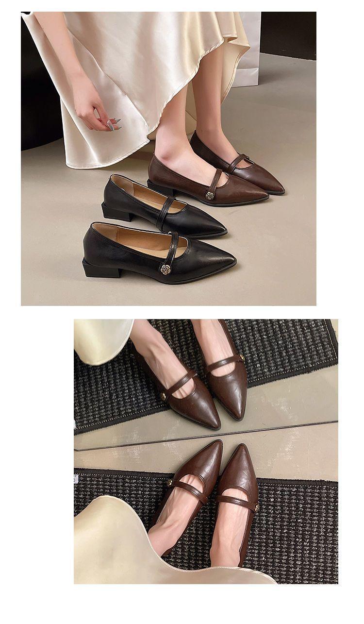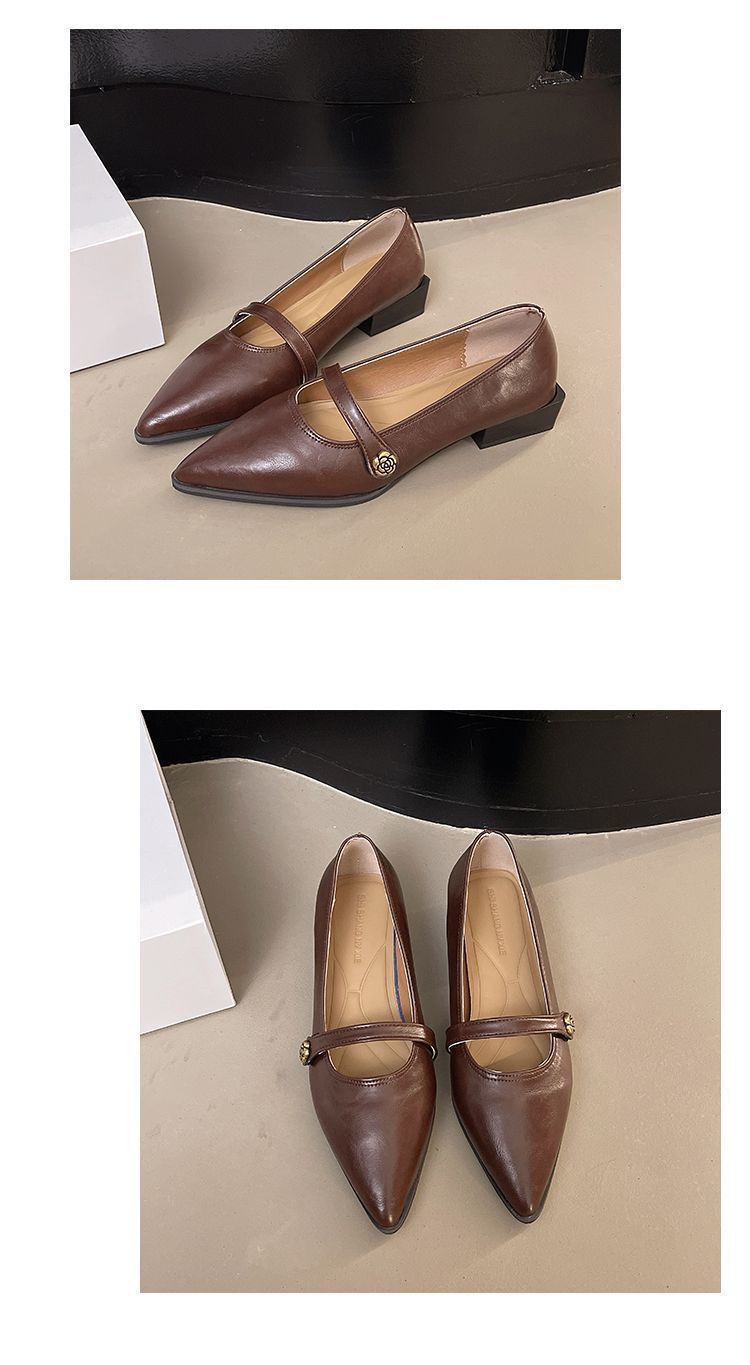 Zapatos de Tacón Alto Planos de Punta Negra para Primavera y Otoño 2025 Nuevo Estilo Francés Mary Jane Zapatos Pequeños de Cuero Zapatos de Mujer