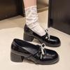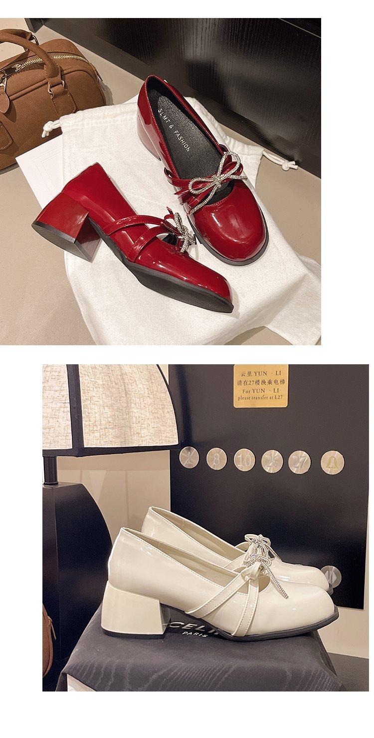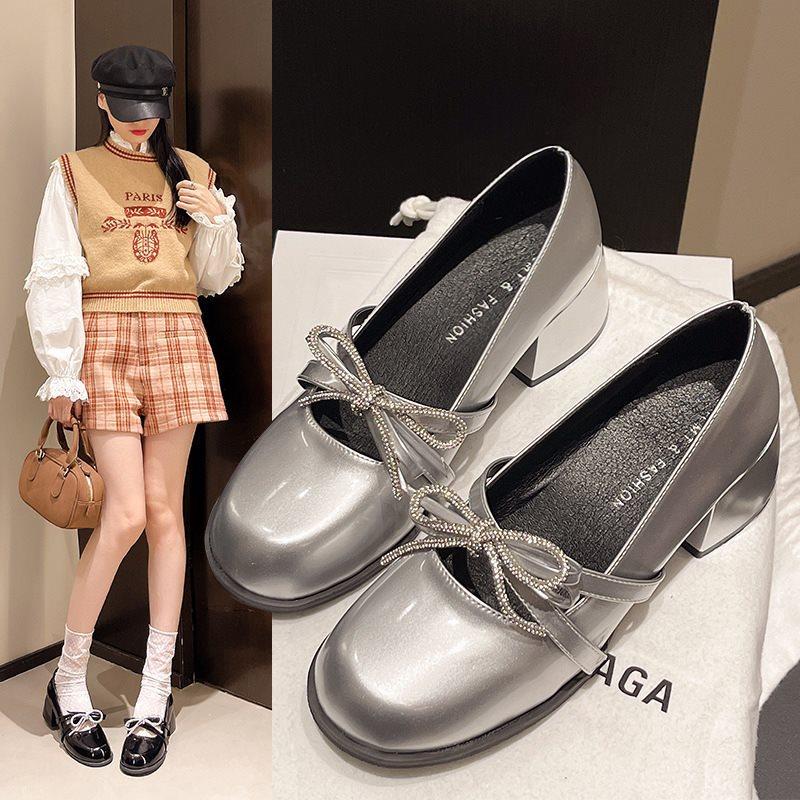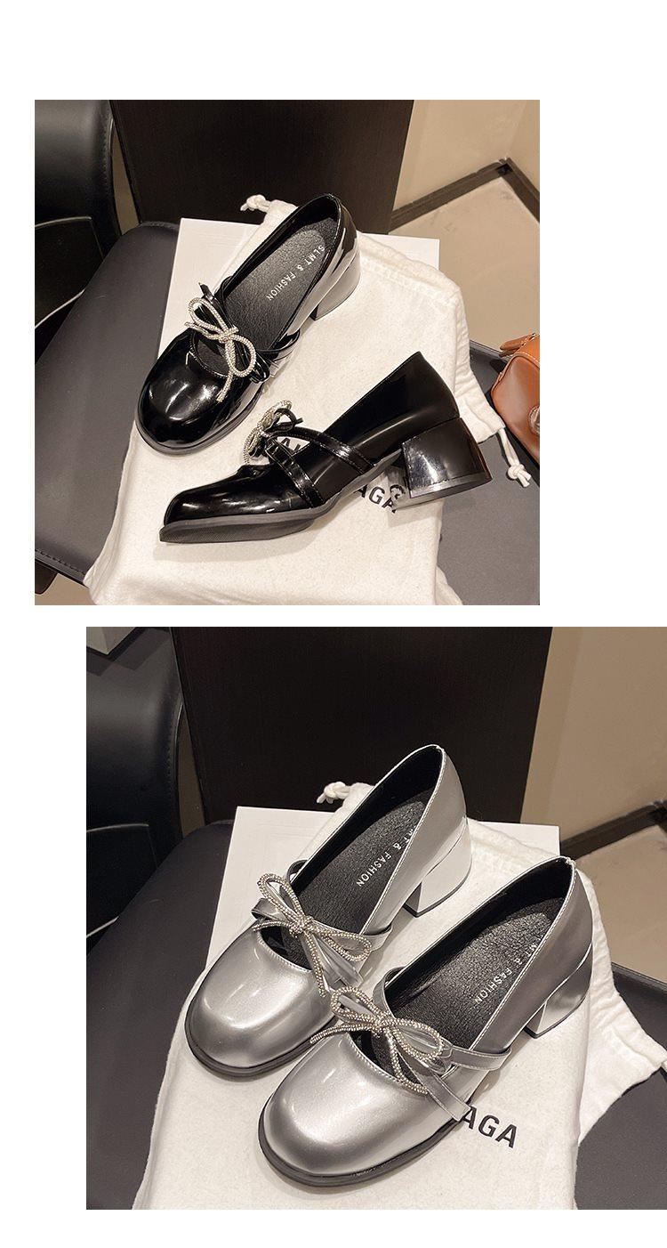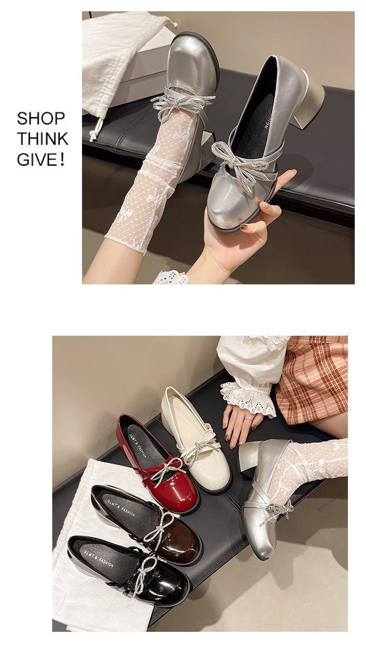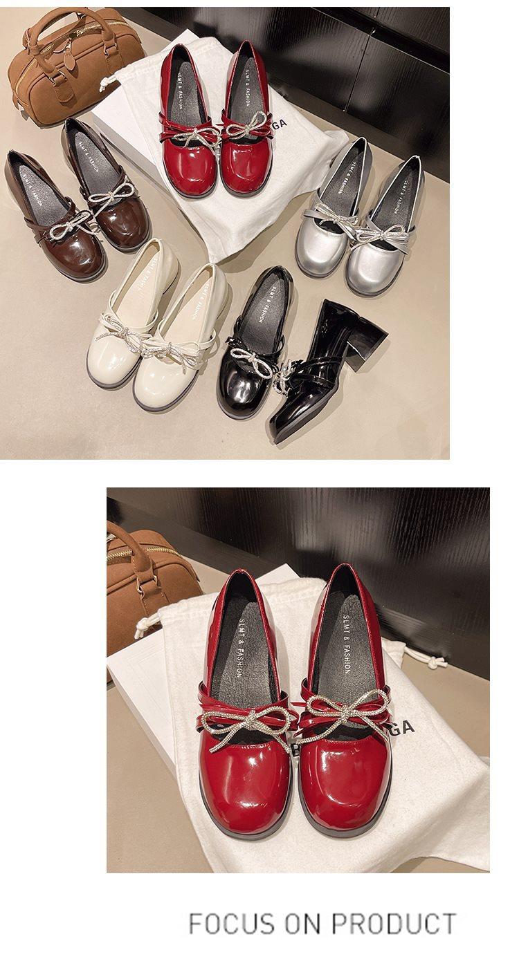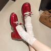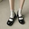 Zapatos Mary Jane Tacones Altos para Mujer 2025 Verano Nuevos Zapatos Pequeños de Cuero Negro Charol Punta Redonda Boca Baja Tacón Medio Grueso Flats
