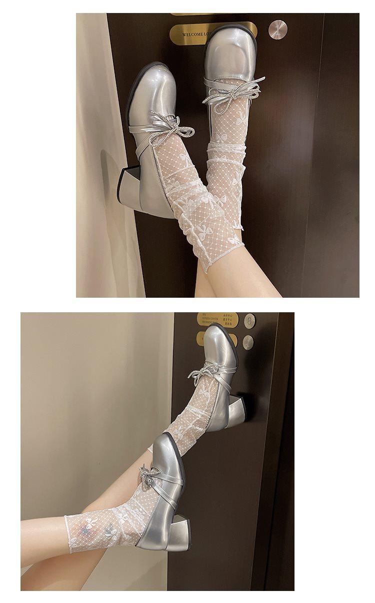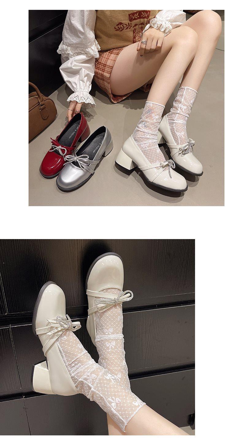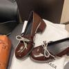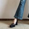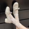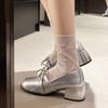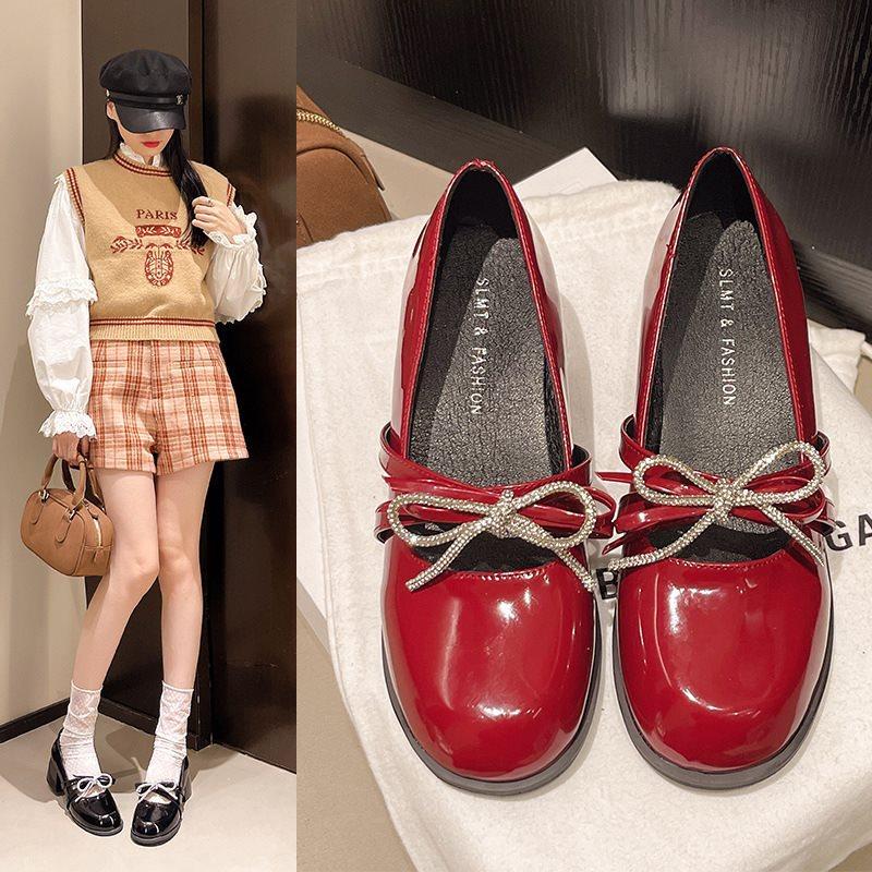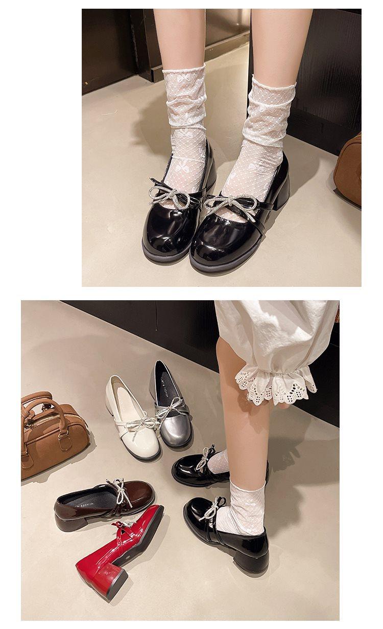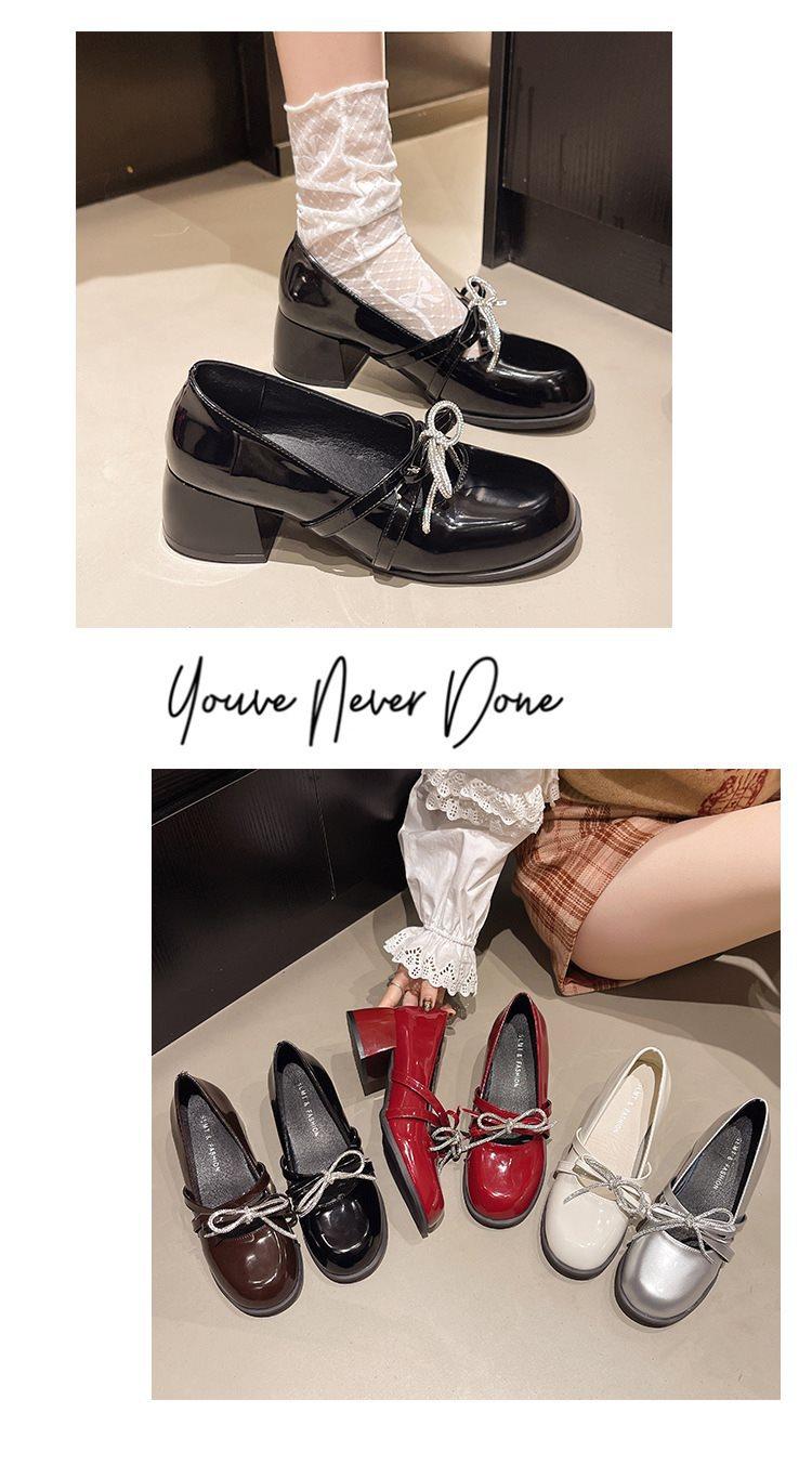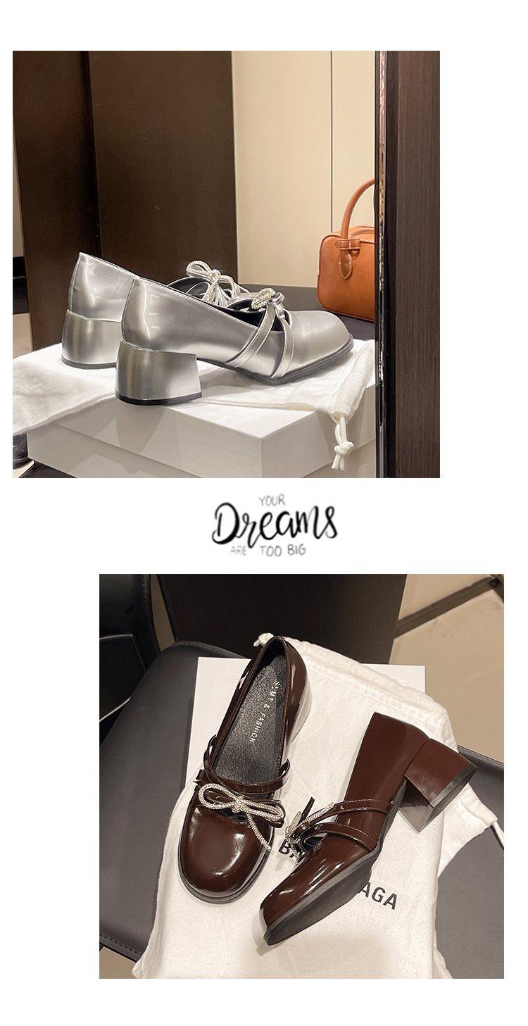 Zapatos Mary Jane Tacones Altos para Mujer 2025 Verano Nuevos Zapatos Pequeños de Cuero Negro Charol Punta Redonda Boca Baja Tacón Medio Grueso Flats