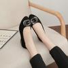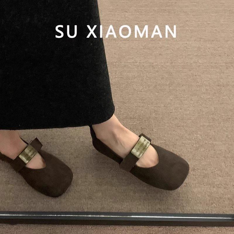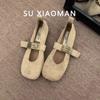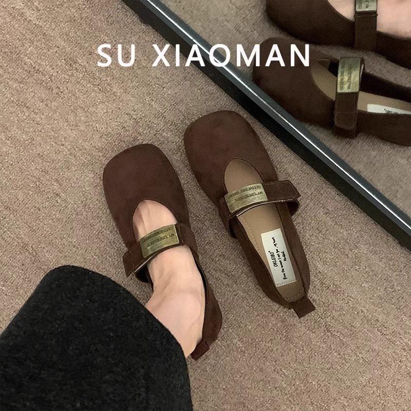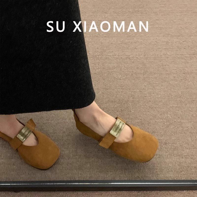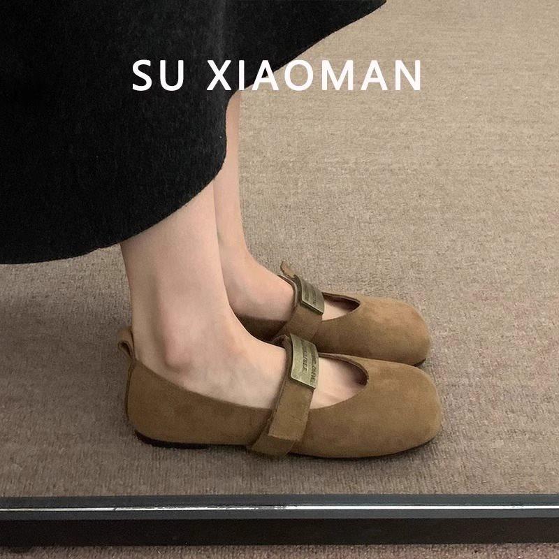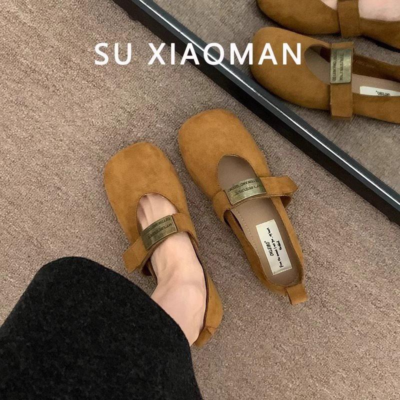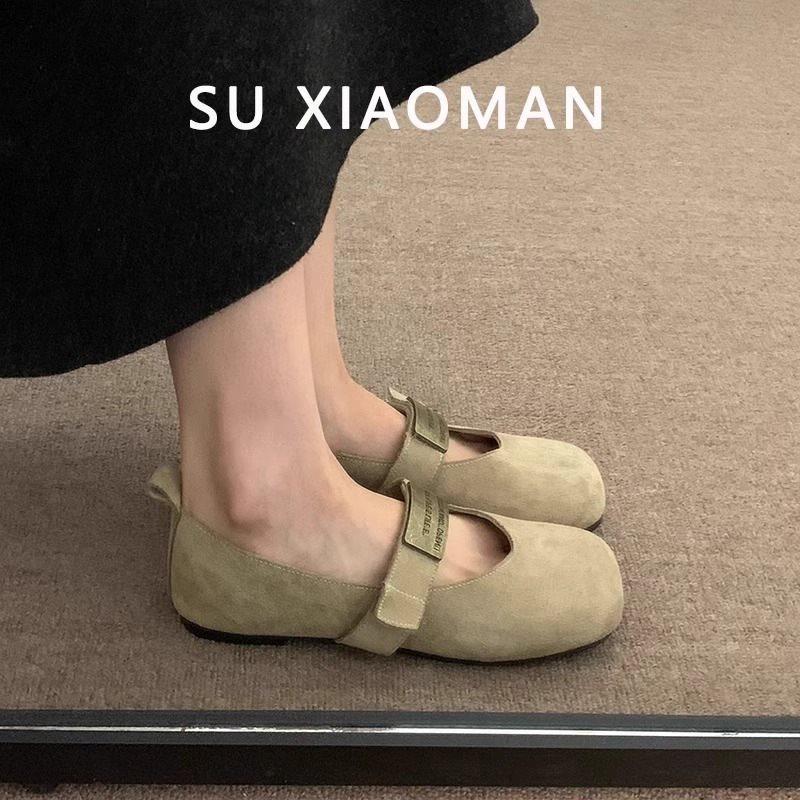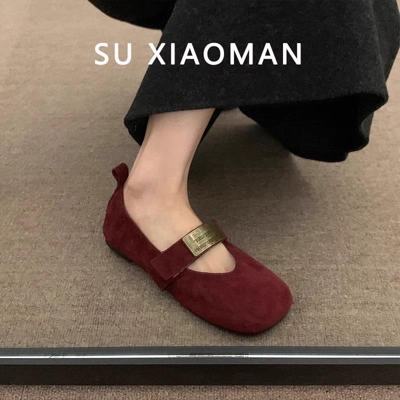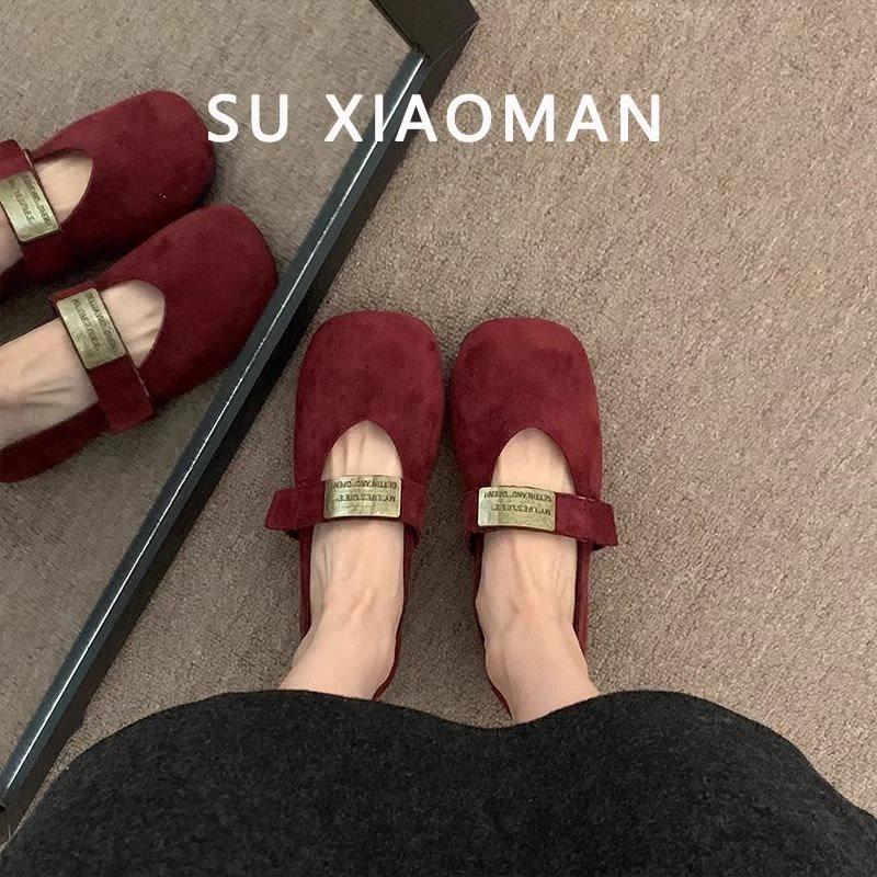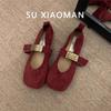 Zapatos Mary Jane planos de gamuza de piel suave para mujer 2025 Primavera y Otoño Nuevos Zapatos Rojos de Boda Zapatos Individuales de Boca Baja