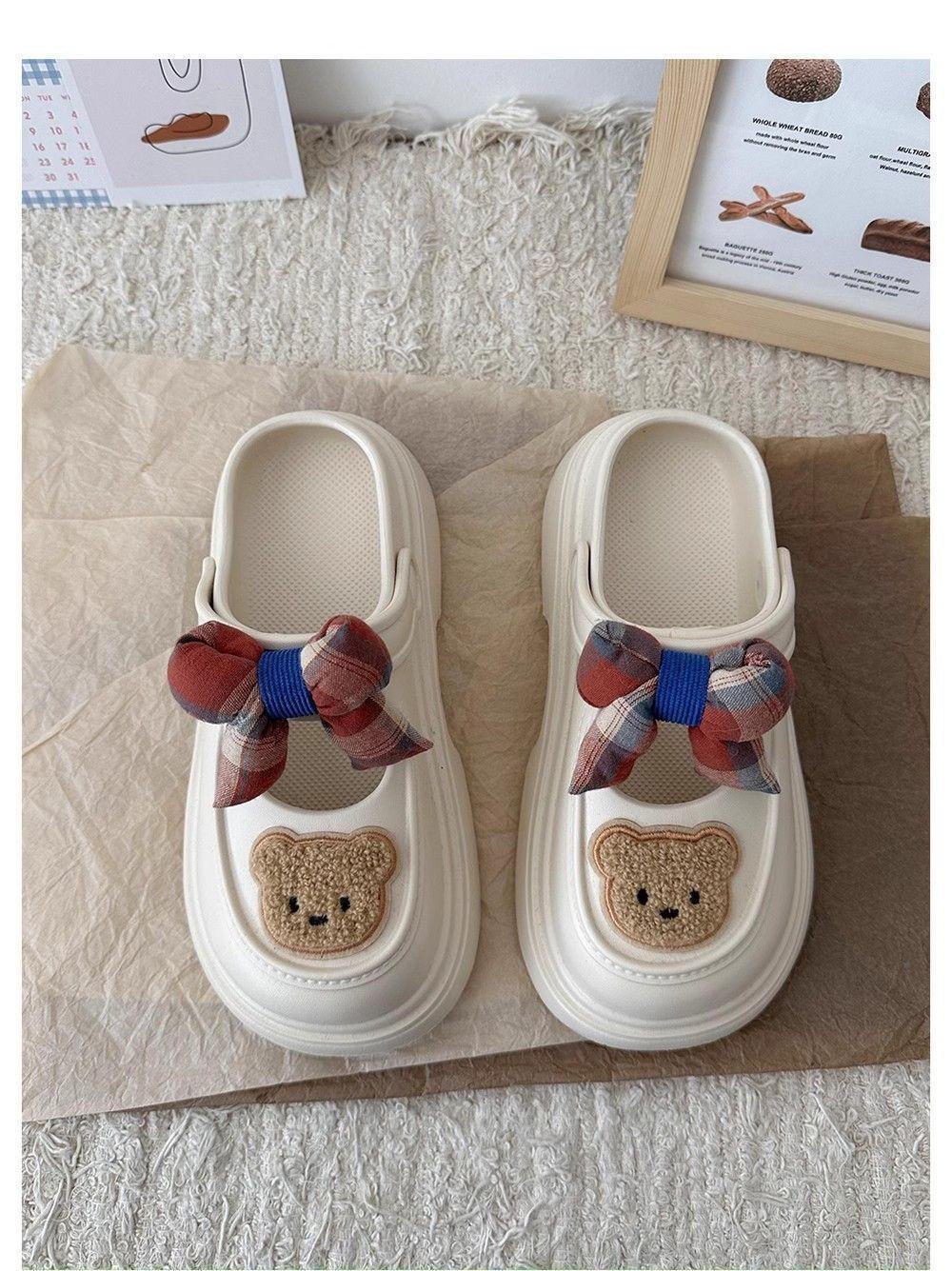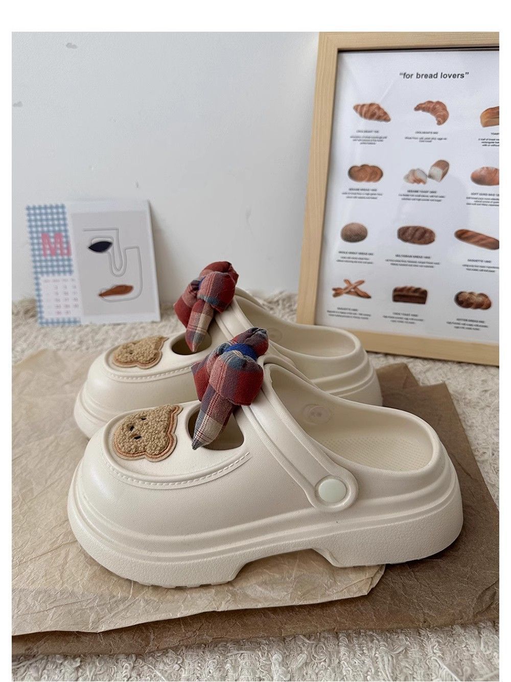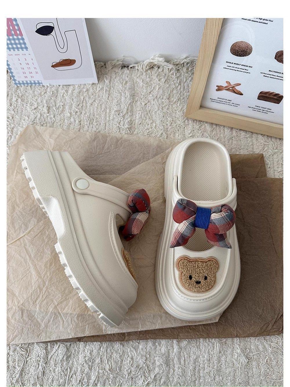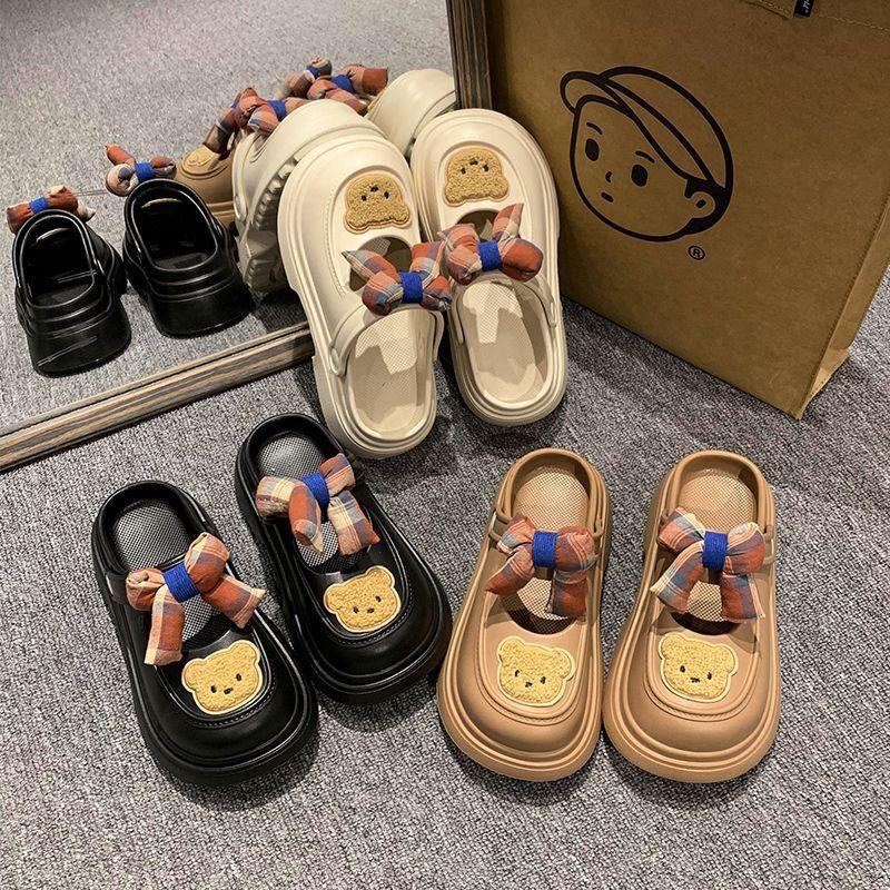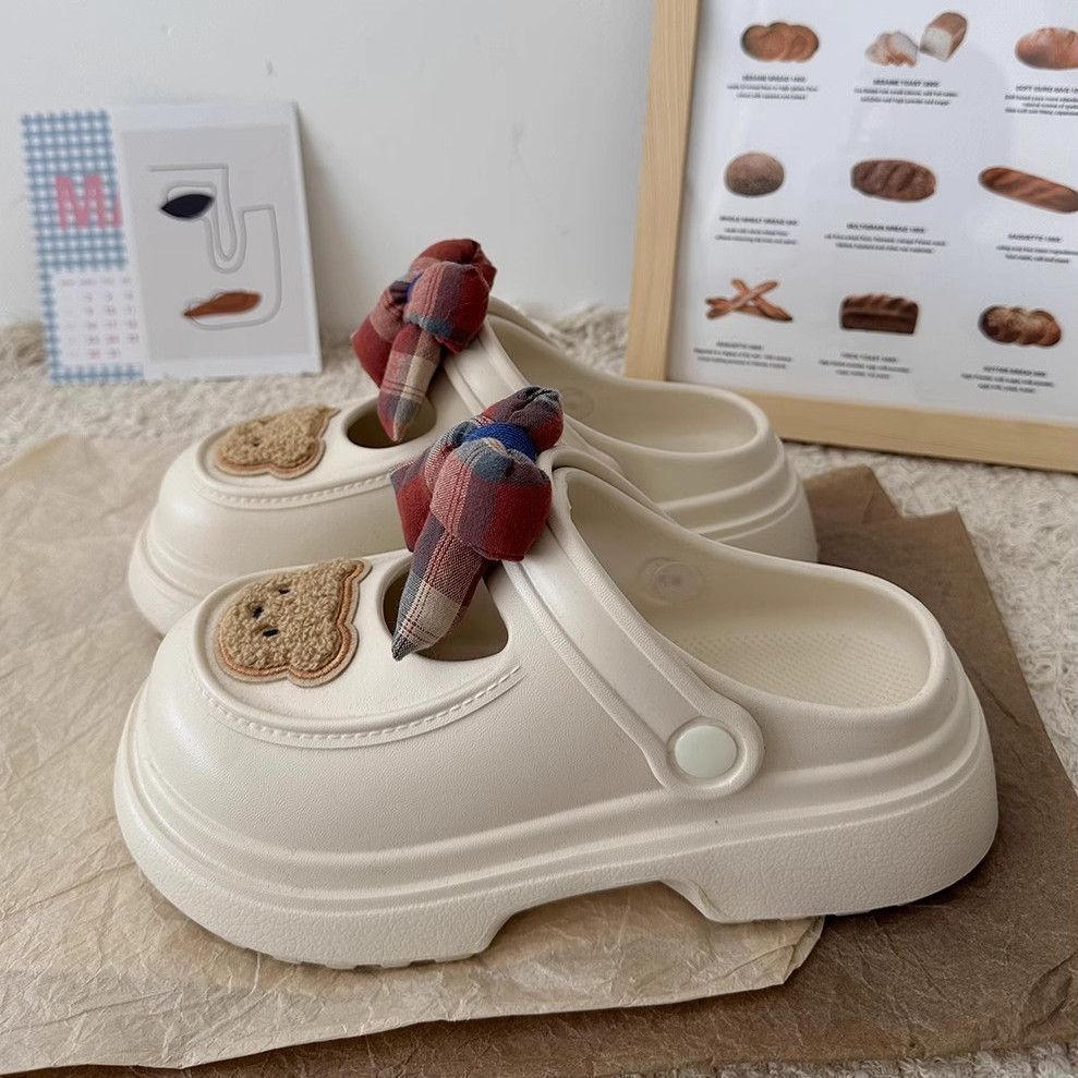 Verano 2025 Nueva Moda Suela Gruesa para Mujer Lazo Ropa Exterior Lindo Zapatos con Agujeros Antideslizantes Playa Pantuflas Cerradas