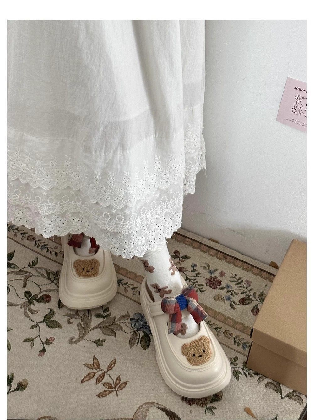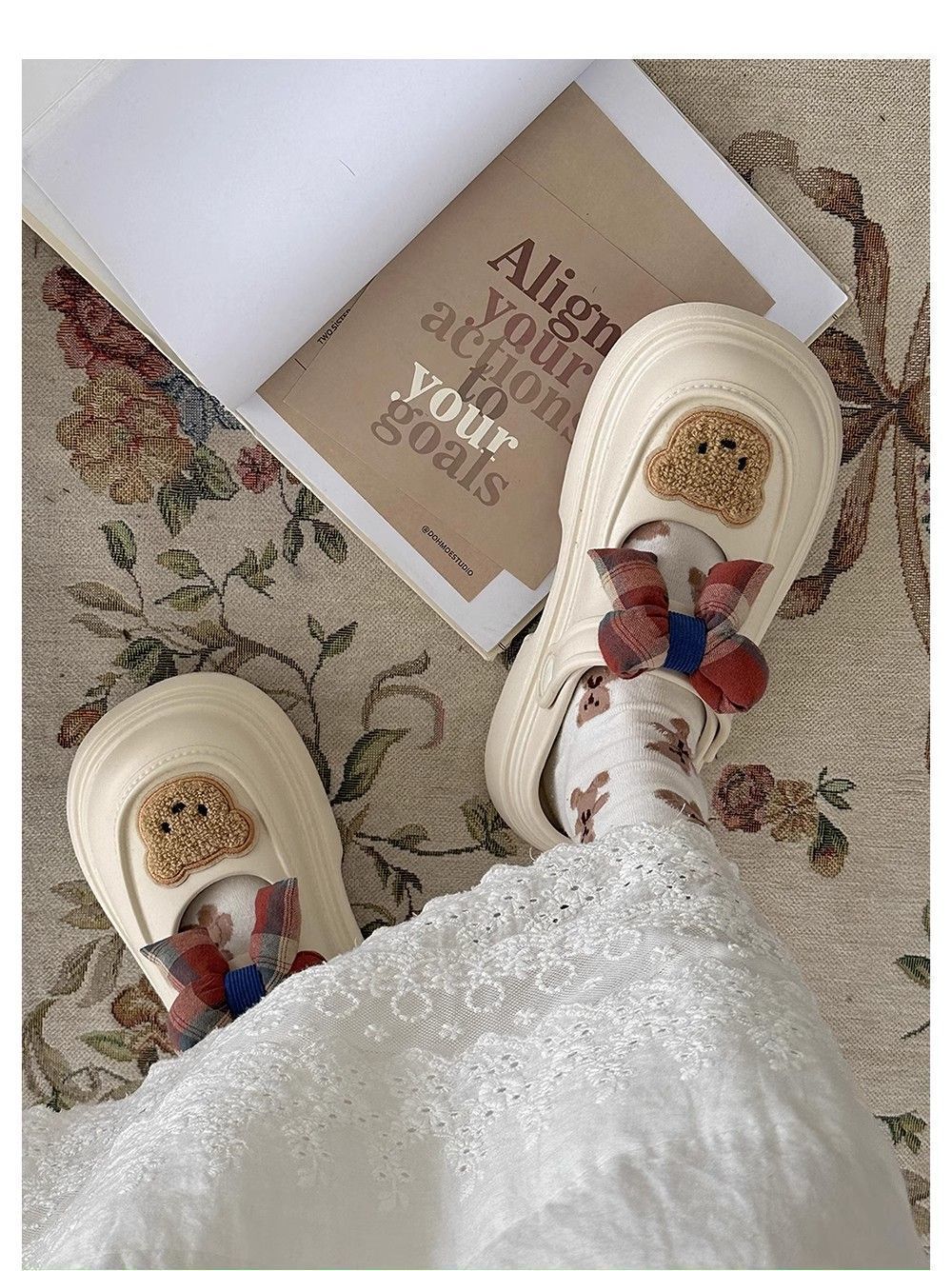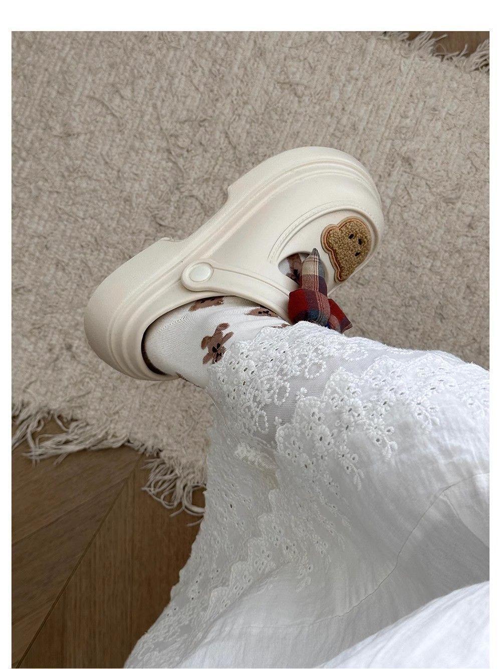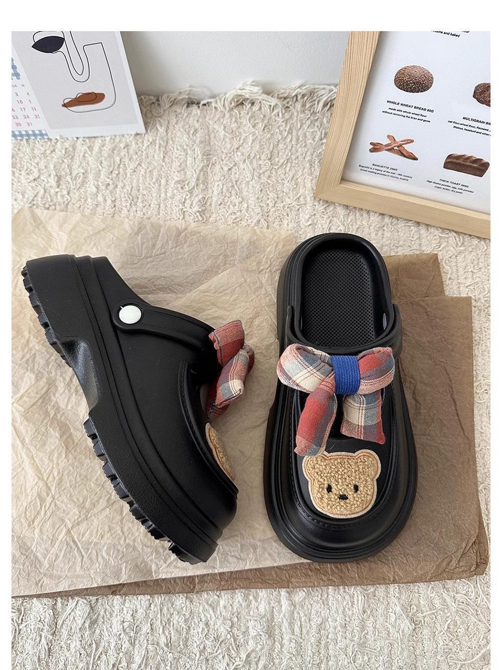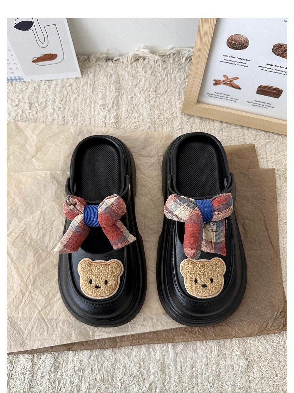 Verano 2025 Nueva Moda Suela Gruesa para Mujer Lazo Ropa Exterior Lindo Zapatos con Agujeros Antideslizantes Playa Pantuflas Cerradas