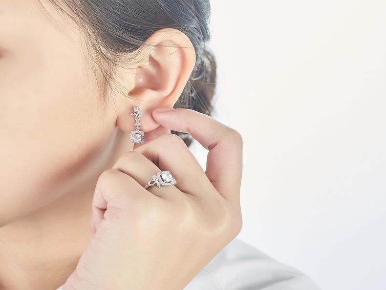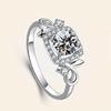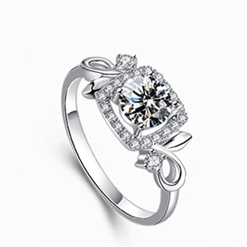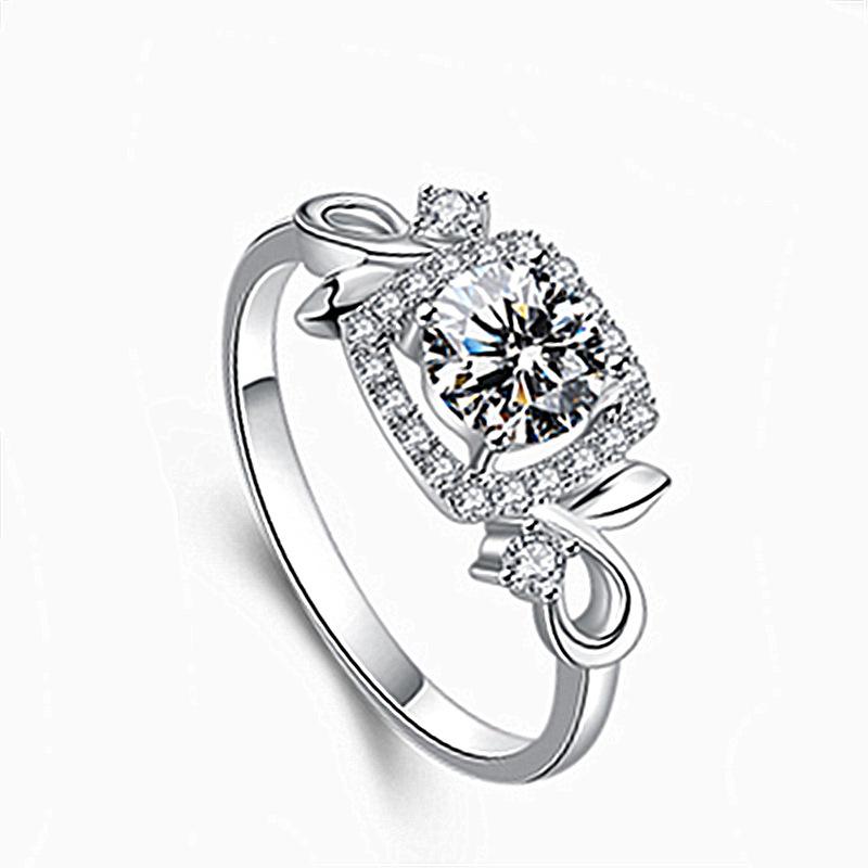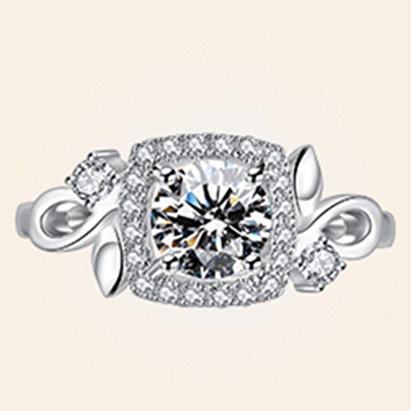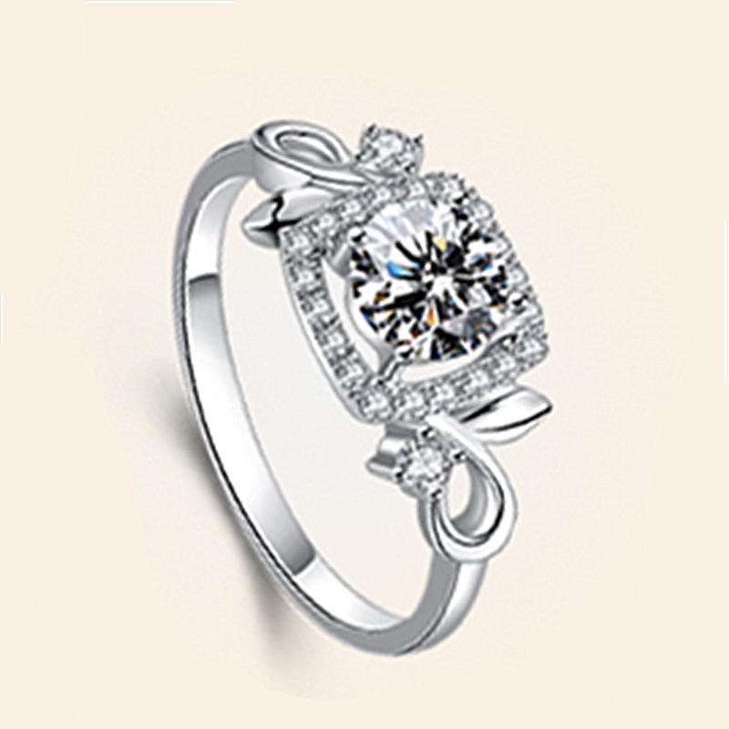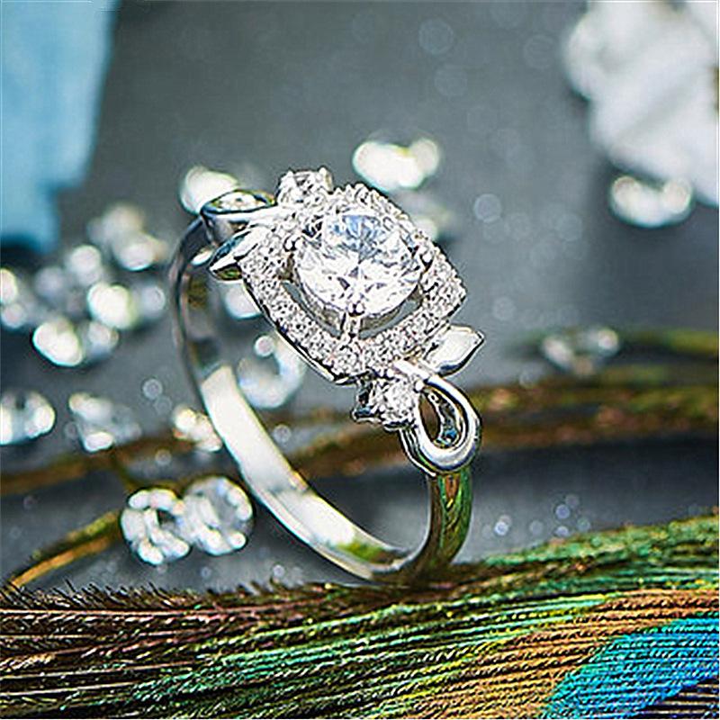 Versión coreana de anillo plateado anillo distintivo lujo ligero atractivo anillo de flor y hoja apertura anillo de diamante anillo de boda puesto venta al por mayor