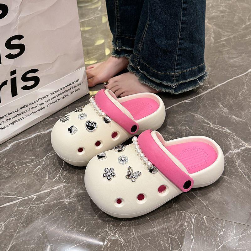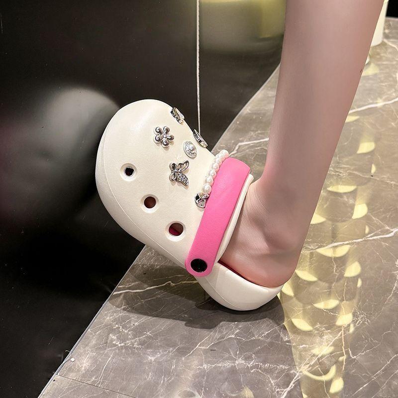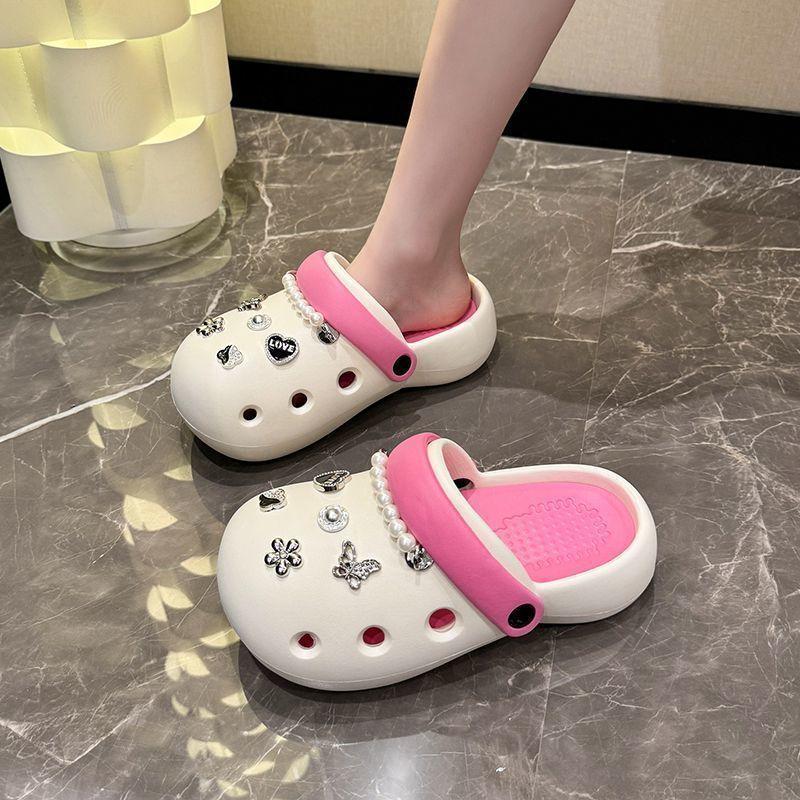 Lindas Pantuflas con Agujeros Antideslizantes 2025 Verano Nuevo Estilo Moda para Exterior Versátiles Suela Gruesa Sensación de Pisar Mierda Pantuflas de Punta Cerrada para Mujer