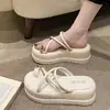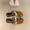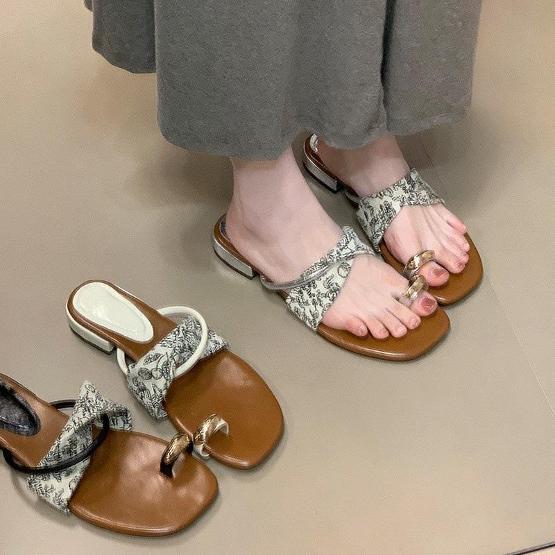 Sandalias y Pantuflas de Moda con Hebilla Metálica en la Puntera y Tacón Bajo para Verano Plata Chanclas Francesas para Uso Exterior