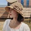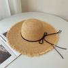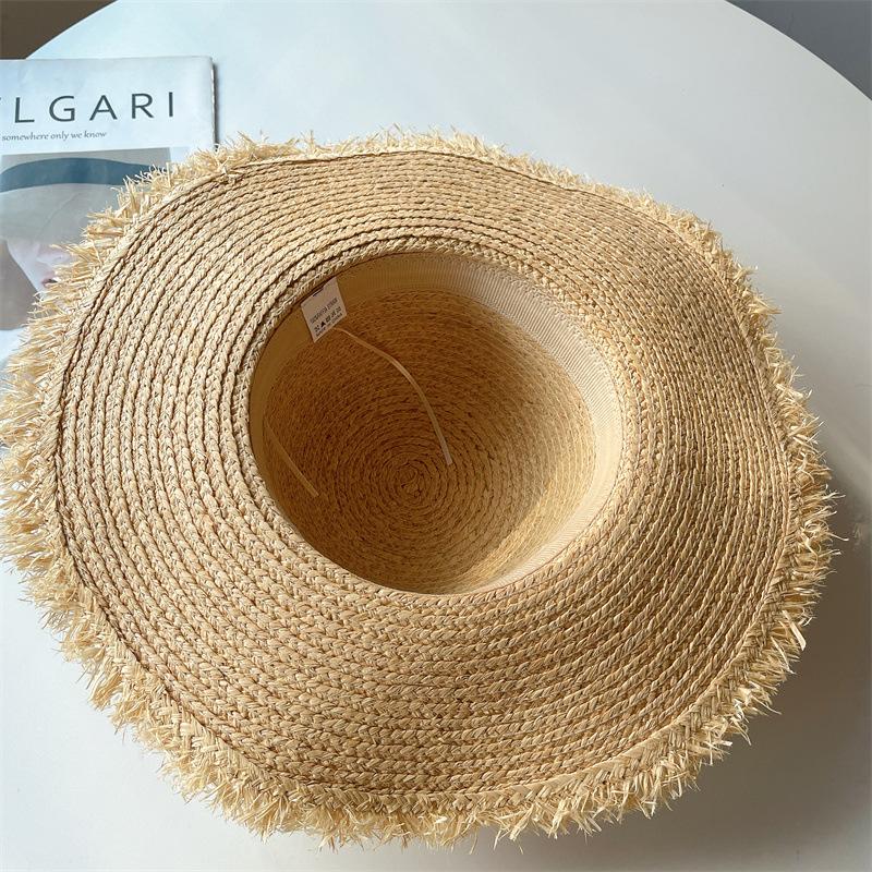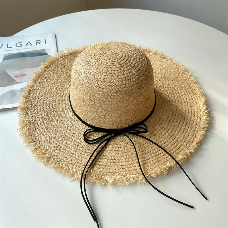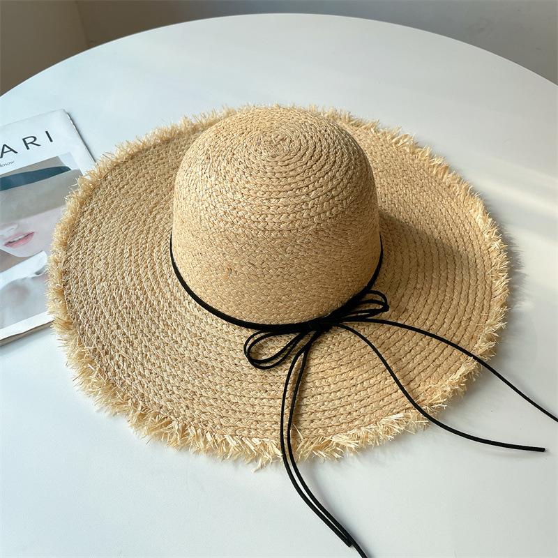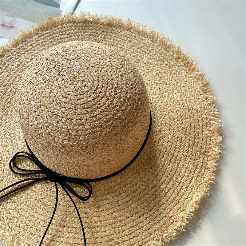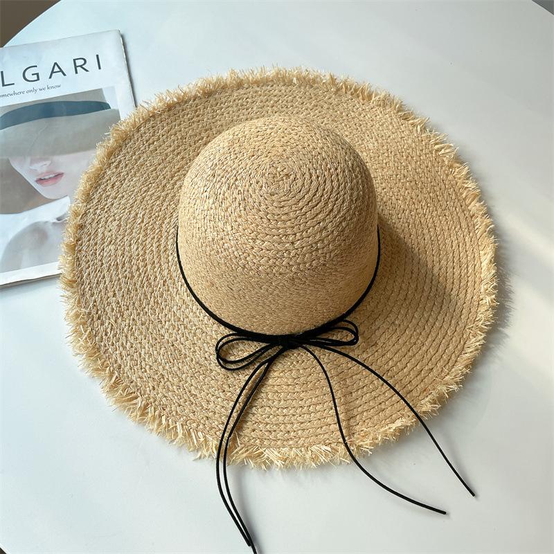 Sombrero de Rafia Protección Solar Sombrero de Playa para Vacaciones de Verano para Mujer Ala Ancha Cubre Rostro Sombrero para el Sol Versátil Tendencia Borde Crudo