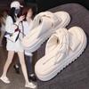 Sandalias Chanclas de Plataforma de Celebridad de Internet Etiqueta Metálica Sandalias Tendencia de Moda Nueva de Primavera y Verano Zapatillas Europeas y Americanas de Suela Gruesa