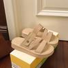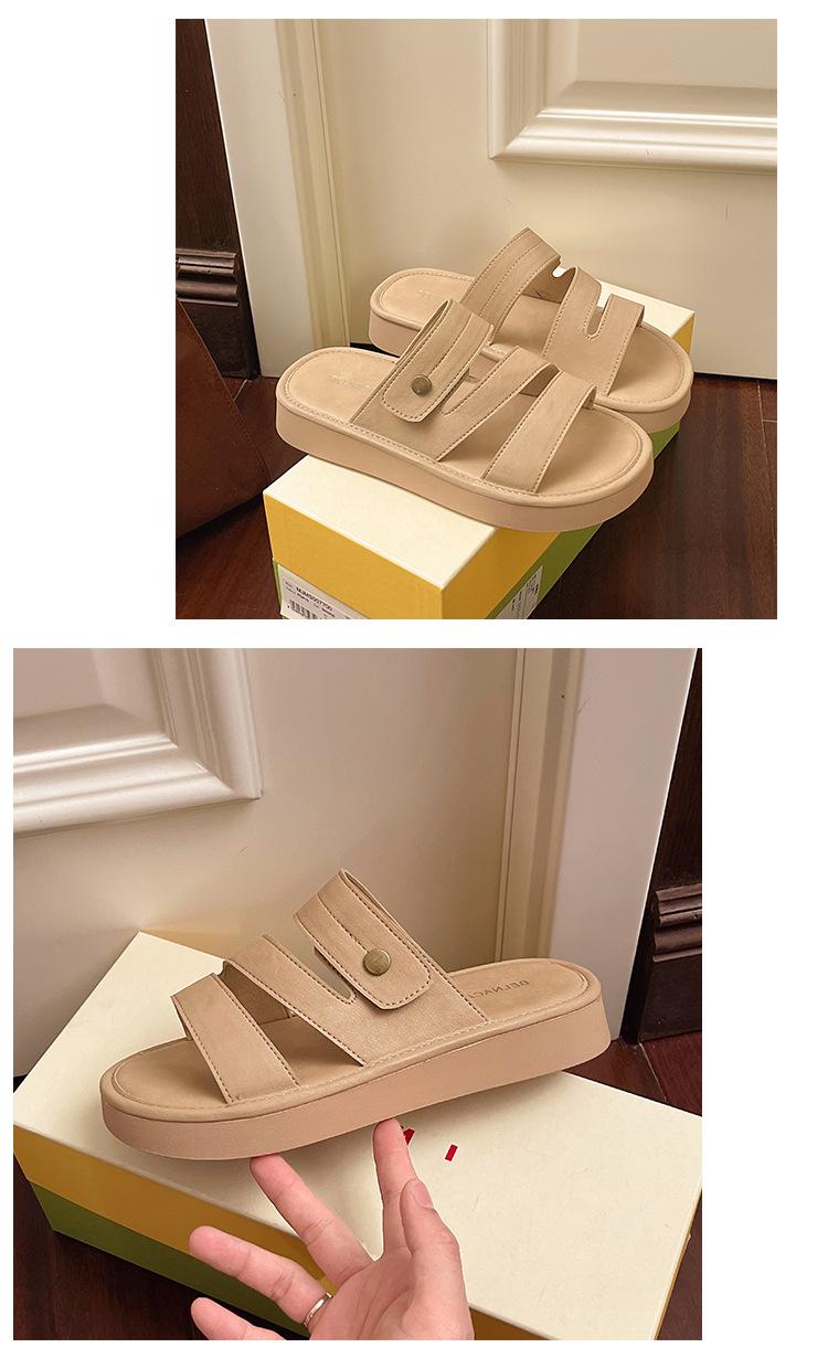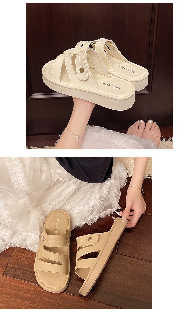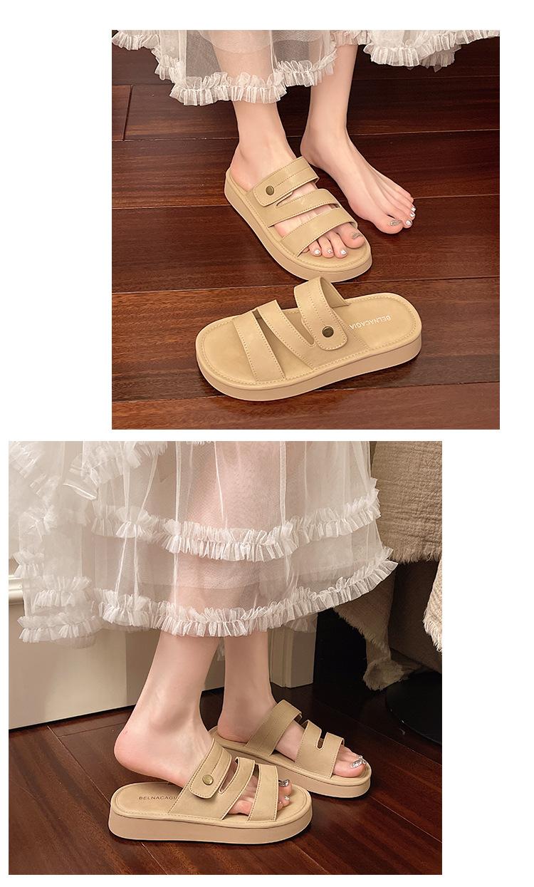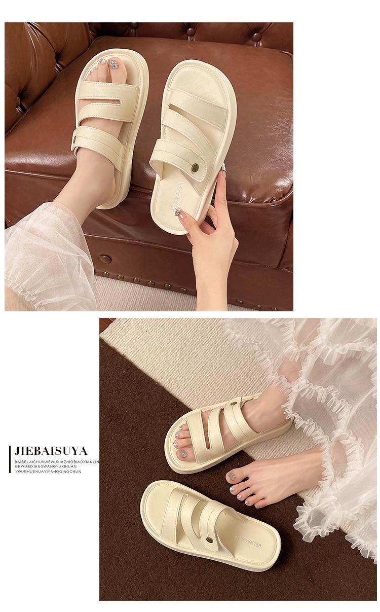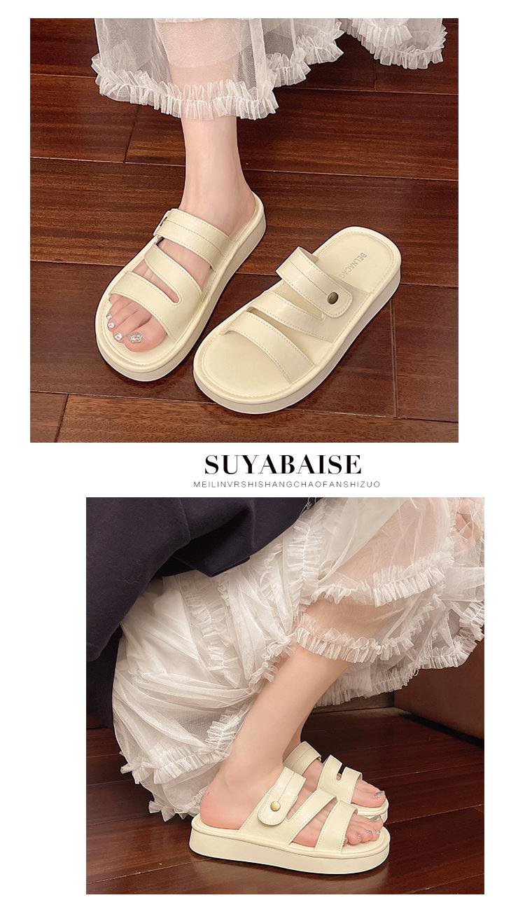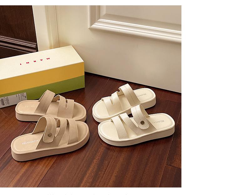 Sandalias y pantuflas de suela gruesa para verano de mujer 2025 nueva pantufla plana de una palabra para mujeres embarazadas casual antideslizante con falda sandalias y pantuflas