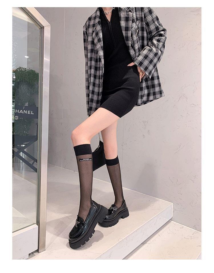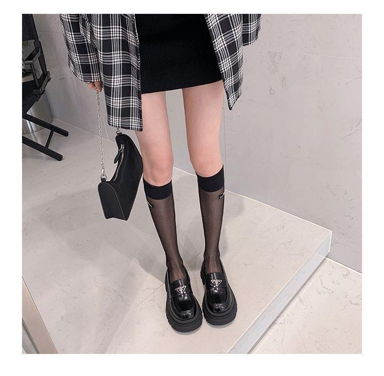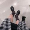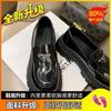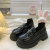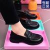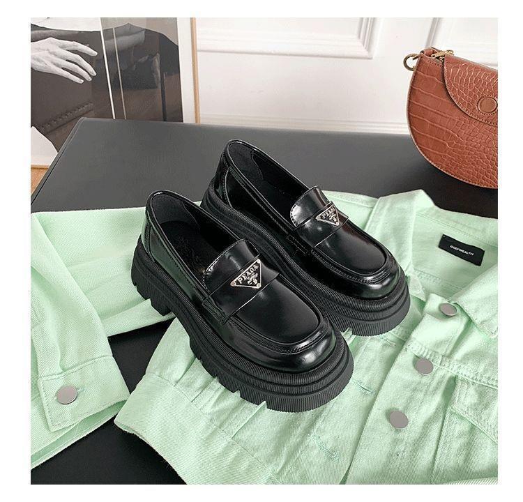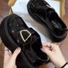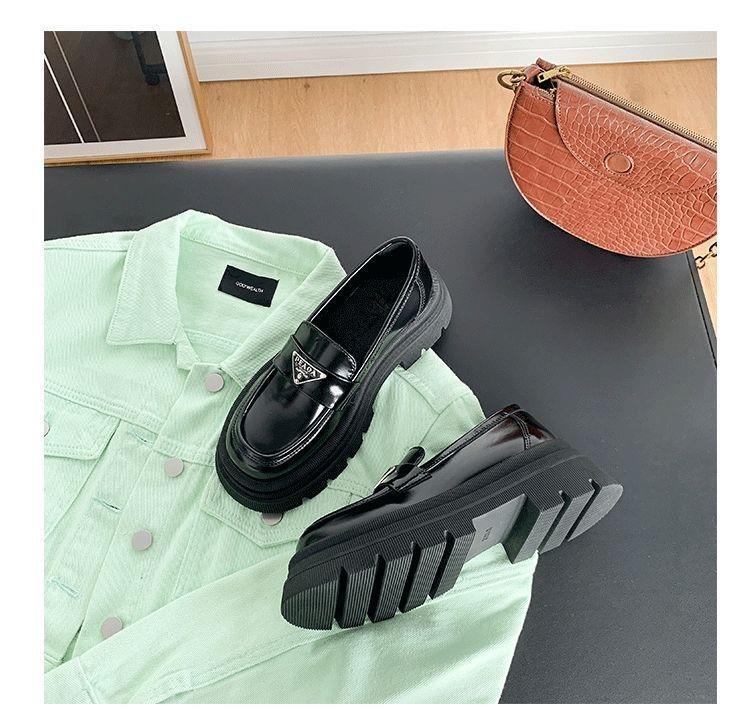 Mocasines de mujer de suela gruesa 2023 nuevos plataforma triángulo zapatos de una sola capa punta redonda negros estilo británico zapatos de cuero de mujer para combinar con todo