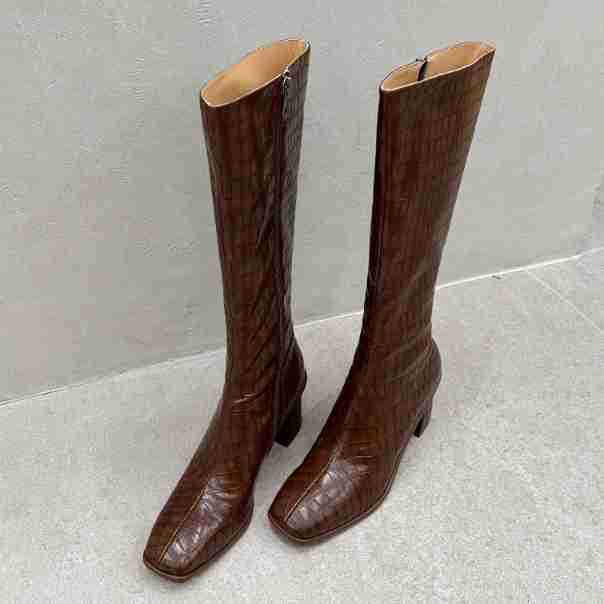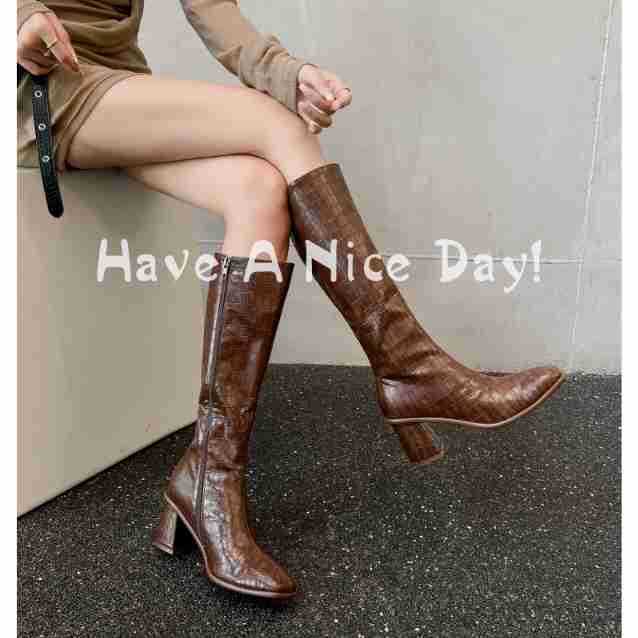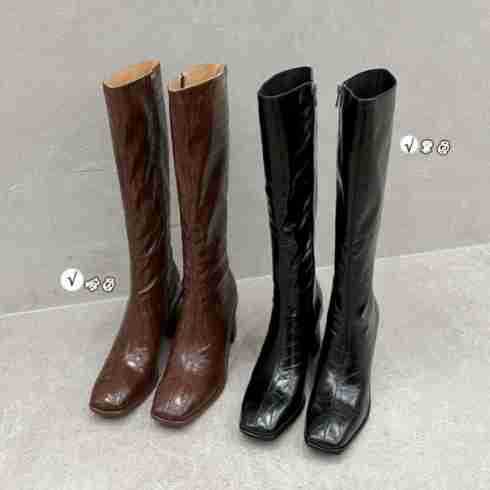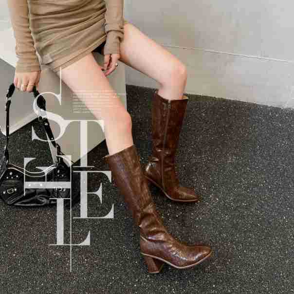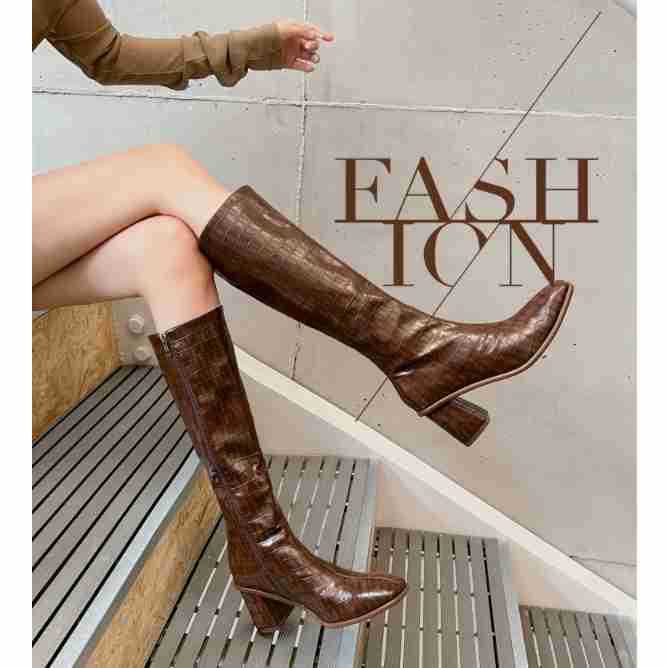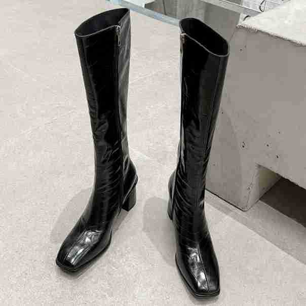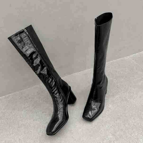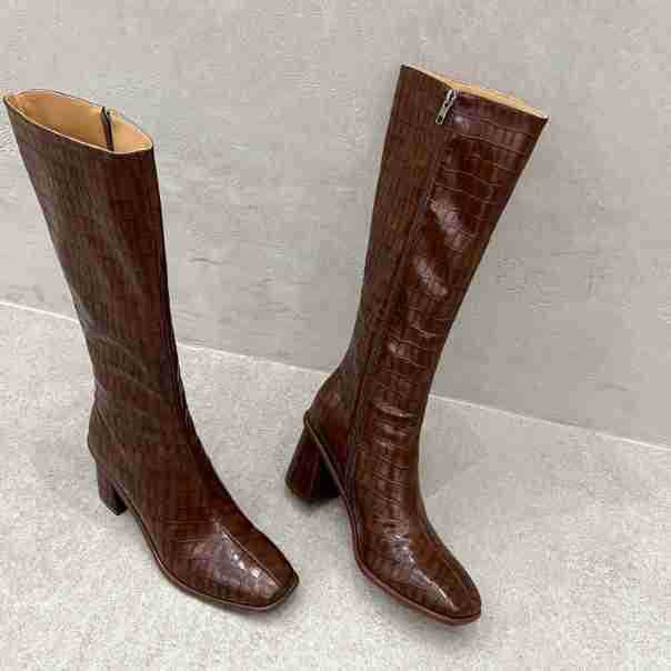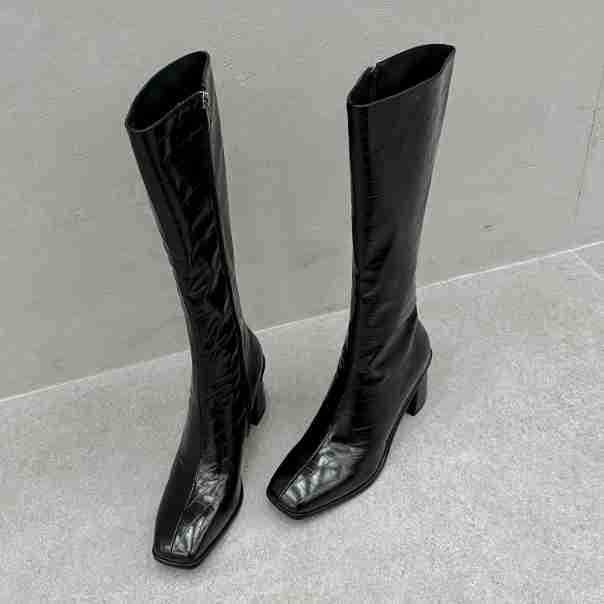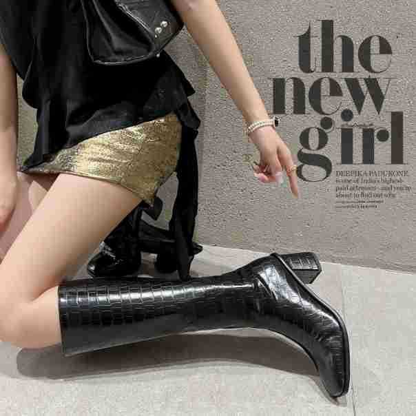2024 Comercio exterior Otoño e Invierno Nuevas botas de tacón alto cuadrado de tacón grueso europeas y americanas Moda Casual Chica Caliente Botas altas Zapatos de mujer