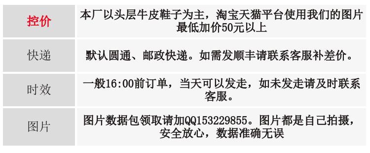 【Acerca del lote mixto】 Una pieza son 30 pares, y se admiten lotes mixtos para más de una pieza. Si tiene razones especiales, por favor contacte al servicio al cliente. 【Sobre el tamaño】 Todos los zapatos son diseñados y probados durante el desarrollo, y todos son de talla normal. 【Acerca de la calidad】 Nuestra zapatería será responsable de todos los gastos por suelas rotas, despegado, daños, diferencia de color seria y manchas serias. Los pequeños cabos de hilo, las pequeñas manchas, la ligera diferencia de color, la decoloración y el ligero olor a pegamento no son problemas de calidad. 【Sobre el olor】 Los zapatos que acaban de salir de fábrica tendrán algo de olor a pegamento, que se disipará si se colocan en un lugar ventilado. Si encuentra tales problemas, debe comunicarse con el cliente pacientemente. 【Acerca del servicio posventa】 Si hay algún problema con los zapatos vendidos, por favor contacte a nuestro servicio al cliente lo antes posible para explicar la situación, y lo resolveremos de manera rápida y adecuada. 【Acerca del flete】 Yuantong predeterminado、Boleto de Zhongtong, Xinjiang y Tíbet 6 yuanes. Xinjiang y Tíbet Zhongtong Yuantong 14 yuanes, SF Express 26 yuanes. Otra entrega exprés necesita pagar la diferencia según el costo específico, por favor contacte al servicio al cliente para realizar una nota de pedido