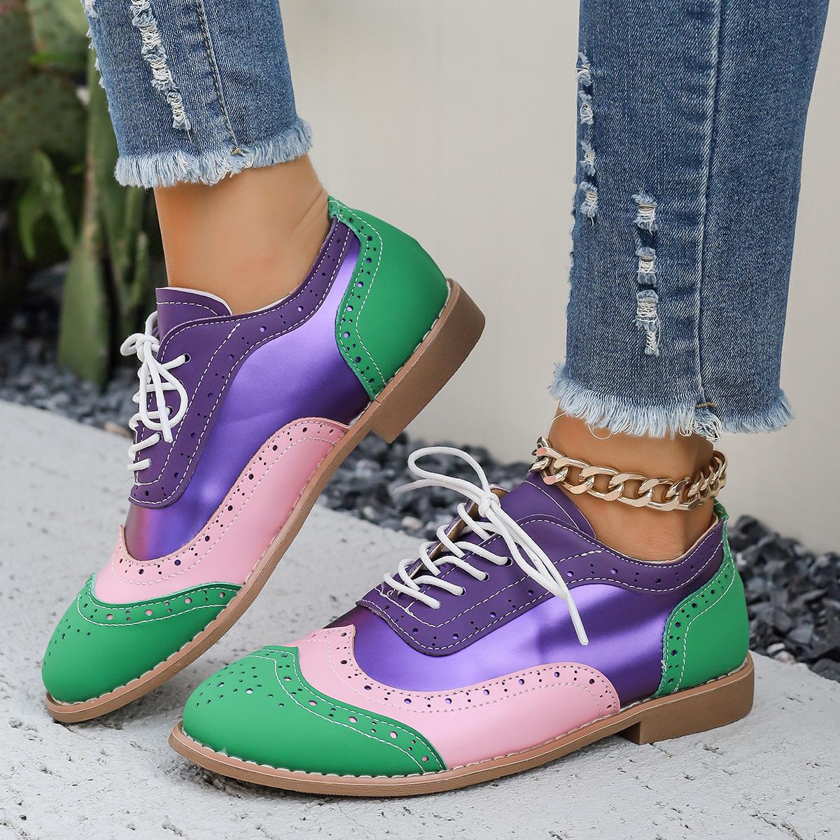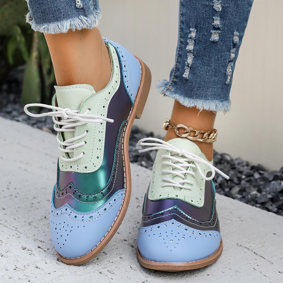 Zapatos de Cordones para Mujer en Varios Colores, Tallas Grandes para Primavera y Otoño 2025, Brogue Floral Punta Redonda Comercio Exterior Transfronterizo