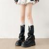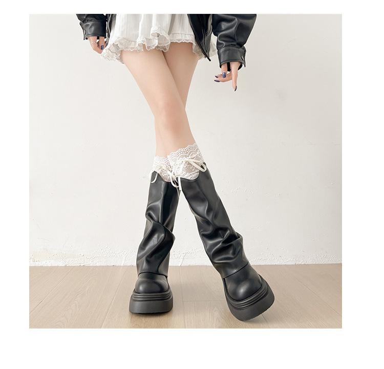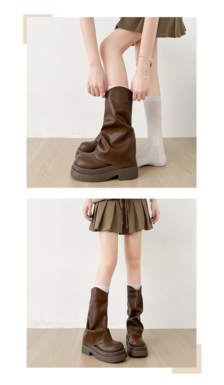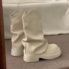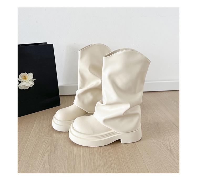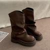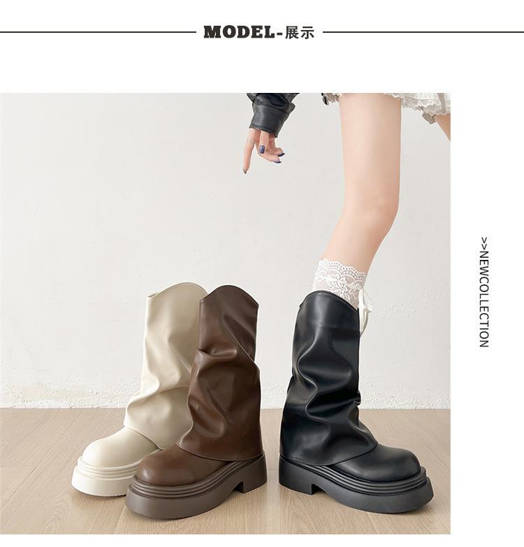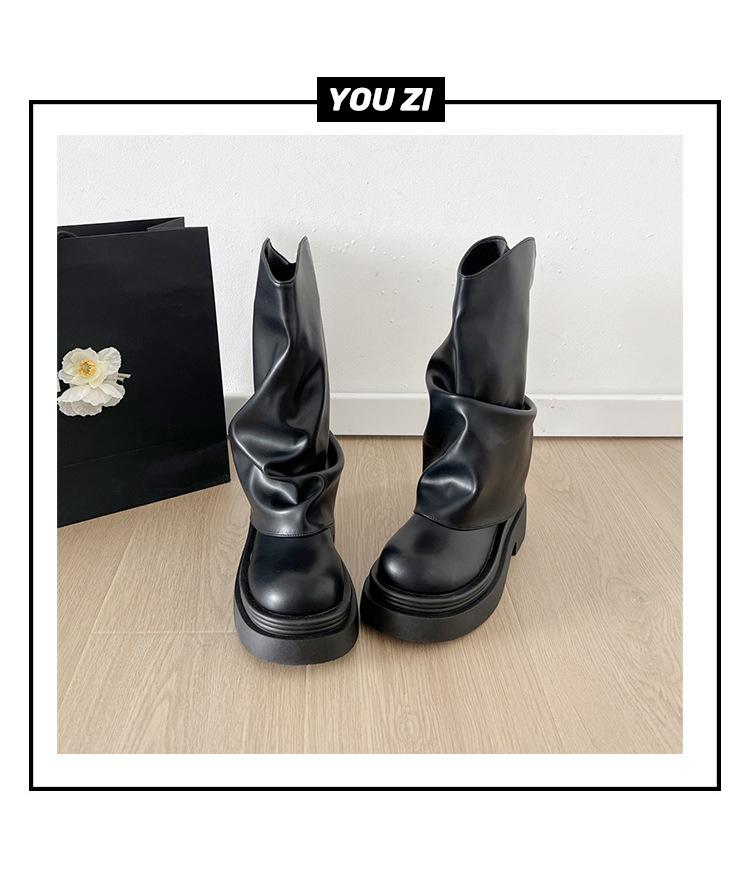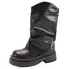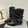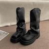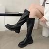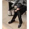 Botas negras retro versátiles de tacón grueso hasta la rodilla para mujer 2025 nuevo verano Meillard suela blanda botas de media caña