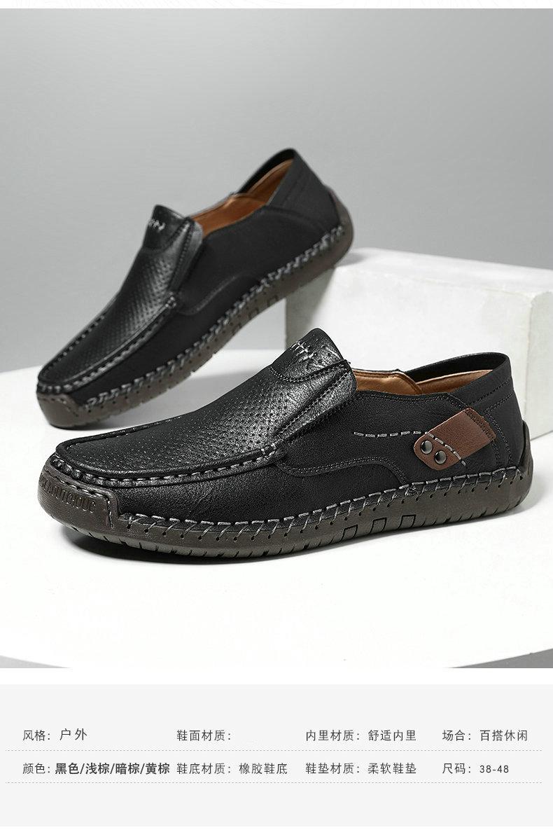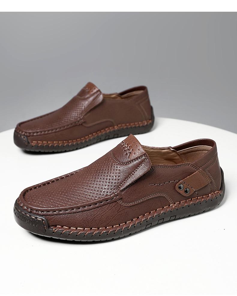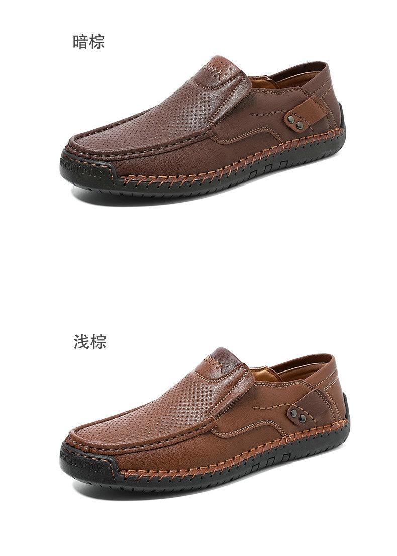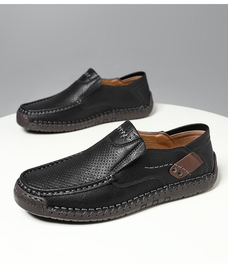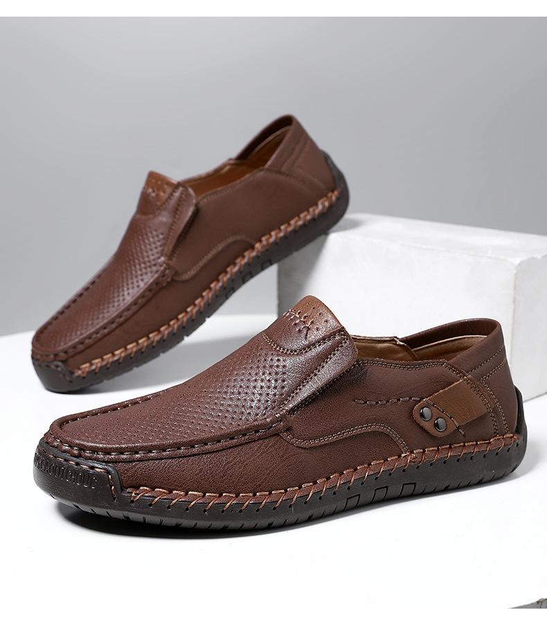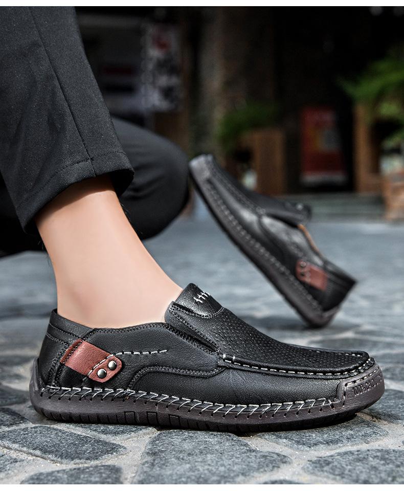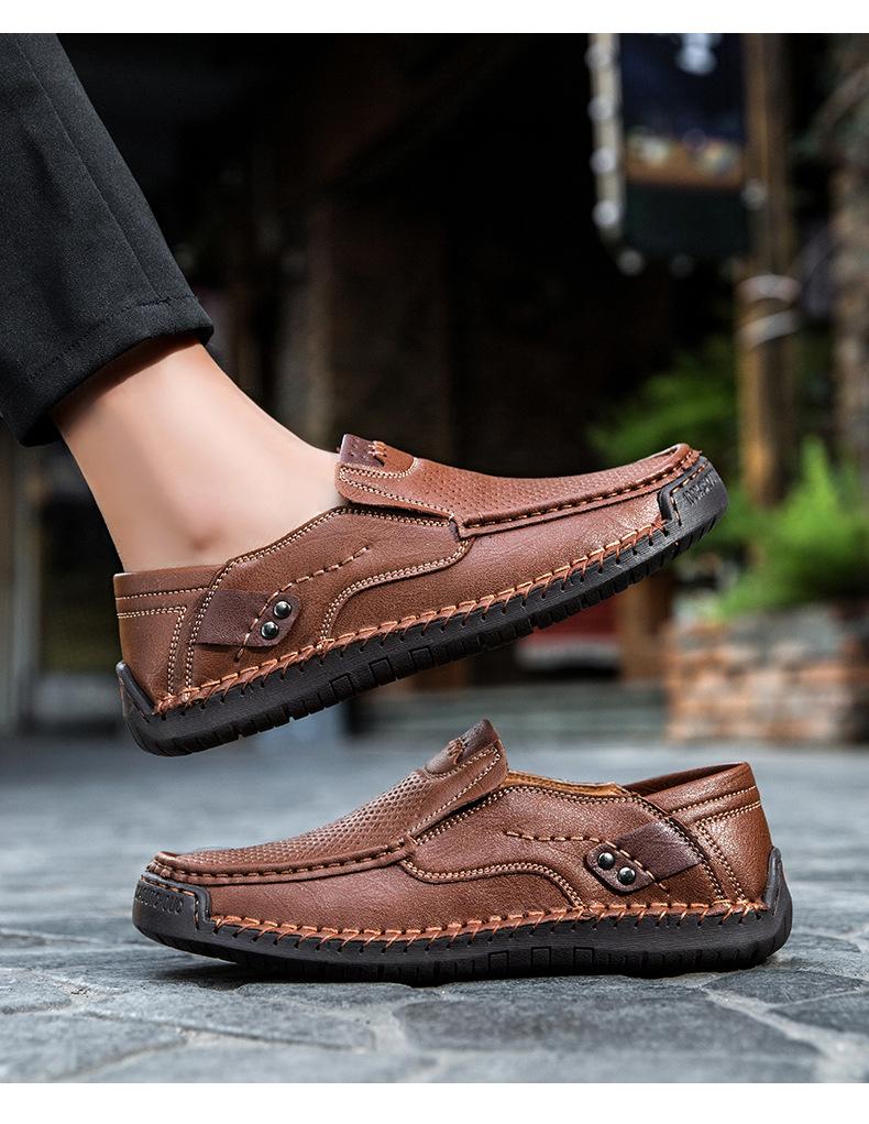 Zapatos de hombre huecos cosidos a mano, zapatos casuales para exteriores, zapatos planos de cuero sin cordones, mocasines cruzados de talla grande y caña baja