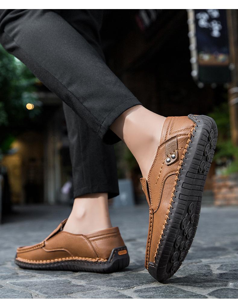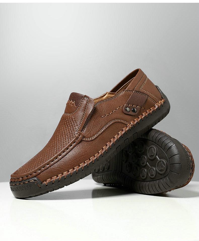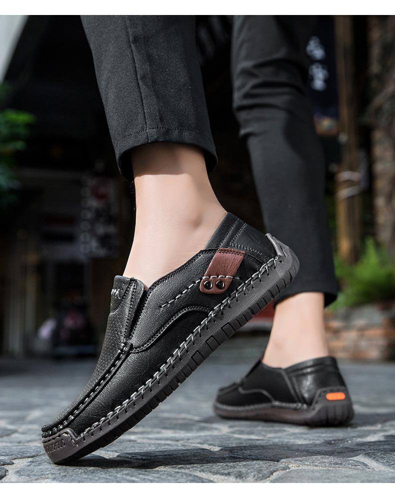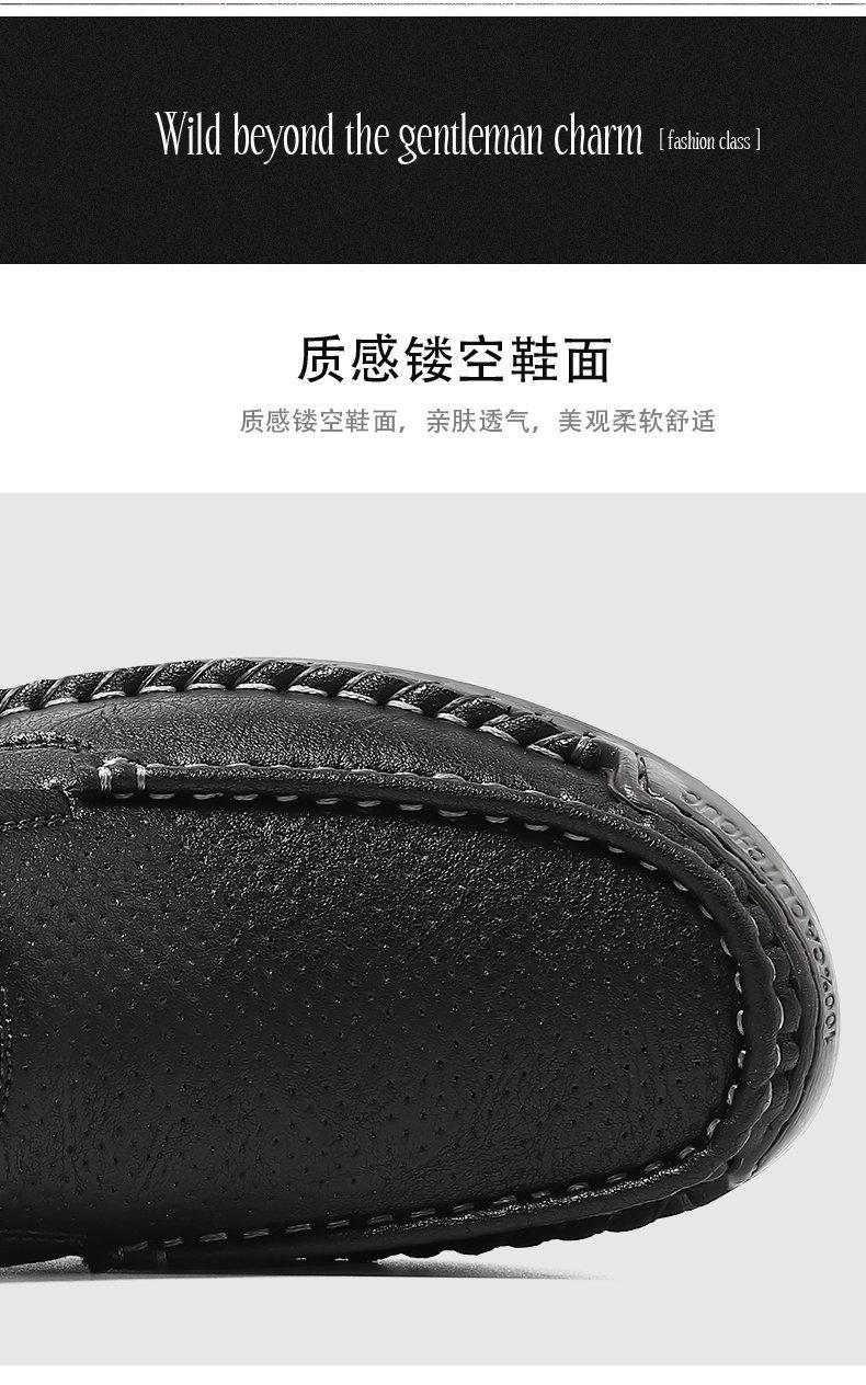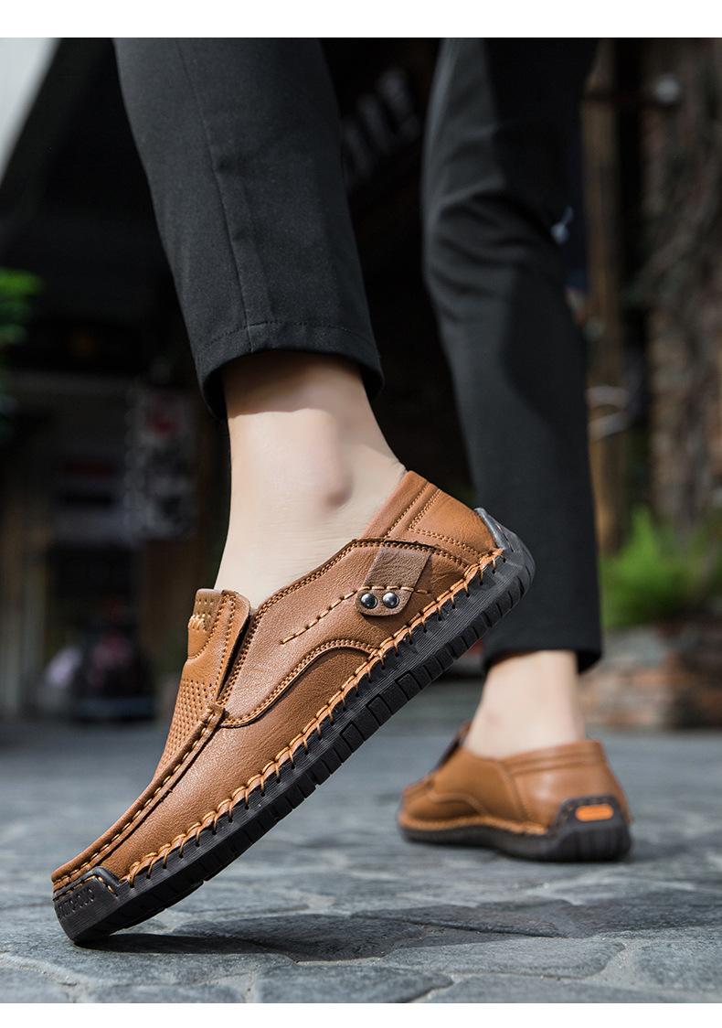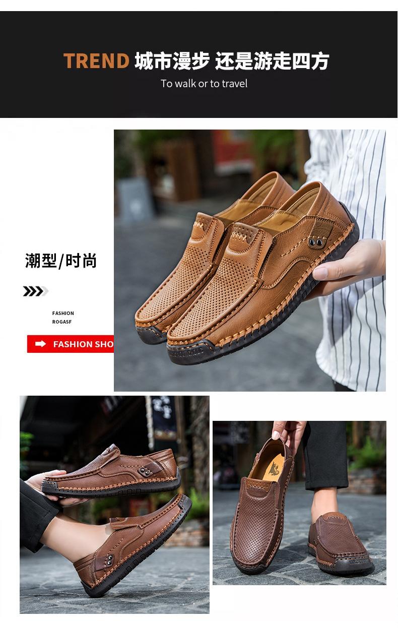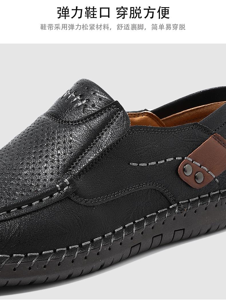 Zapatos de hombre huecos cosidos a mano, zapatos casuales para exteriores, zapatos planos de cuero sin cordones, mocasines cruzados de talla grande y caña baja