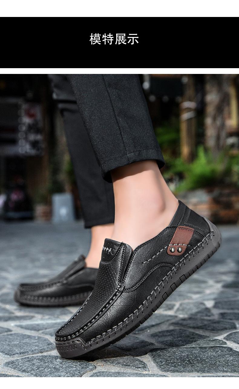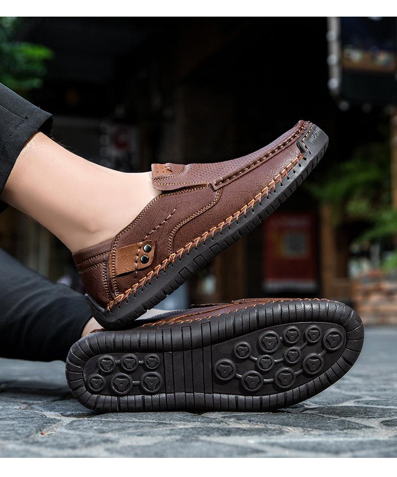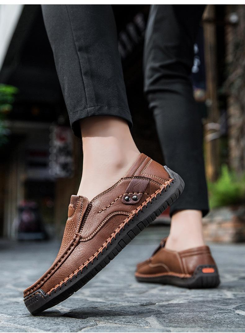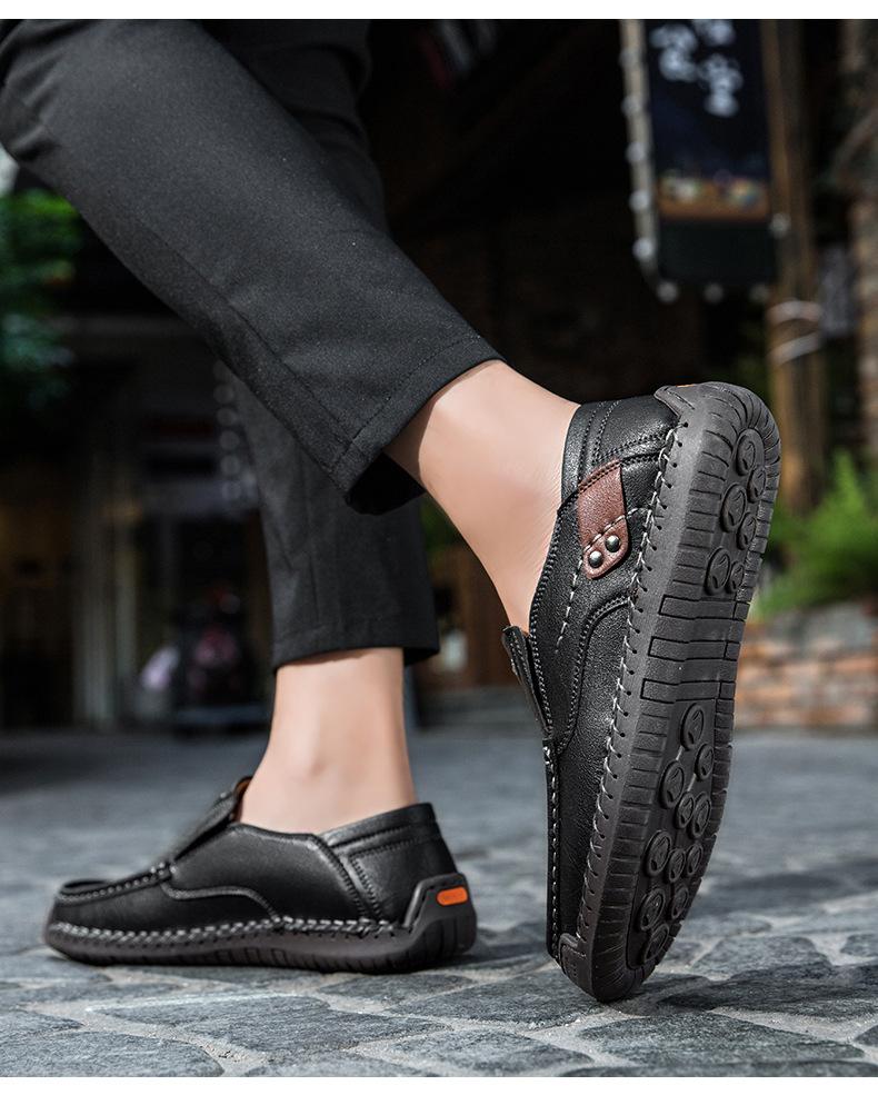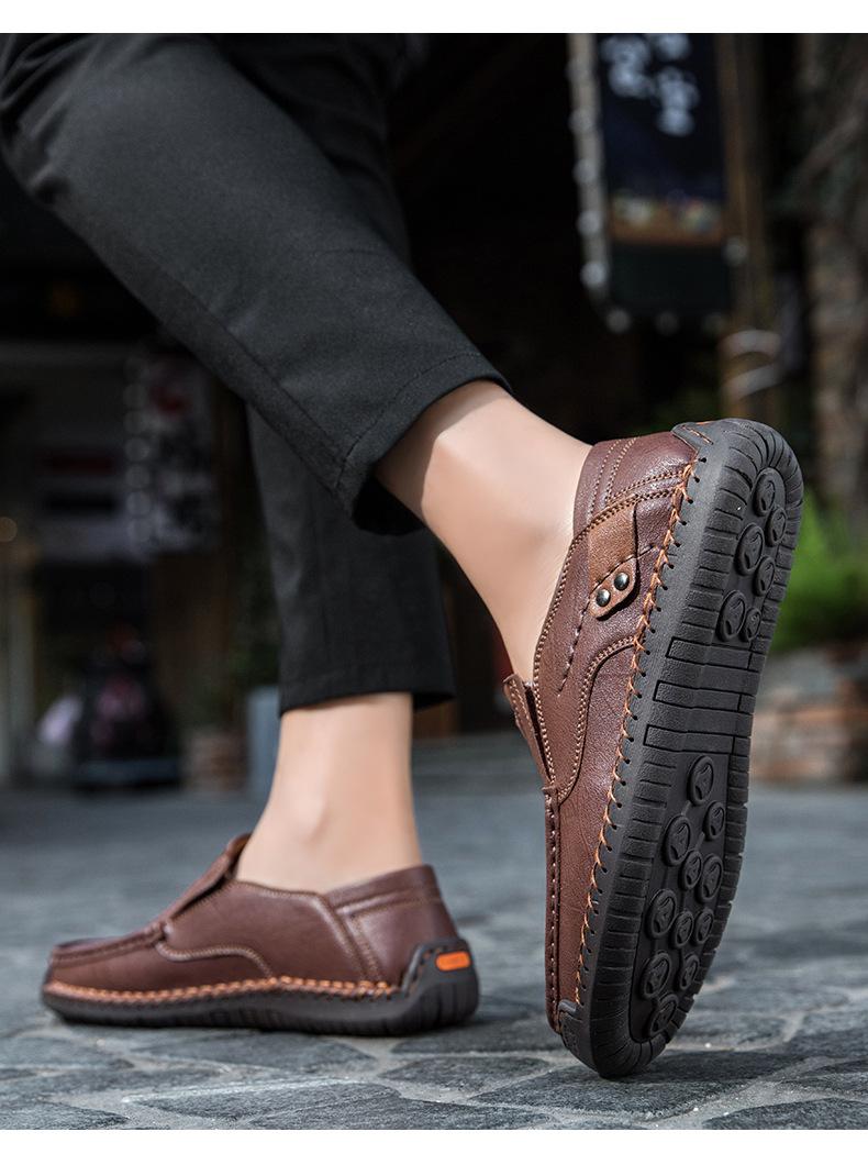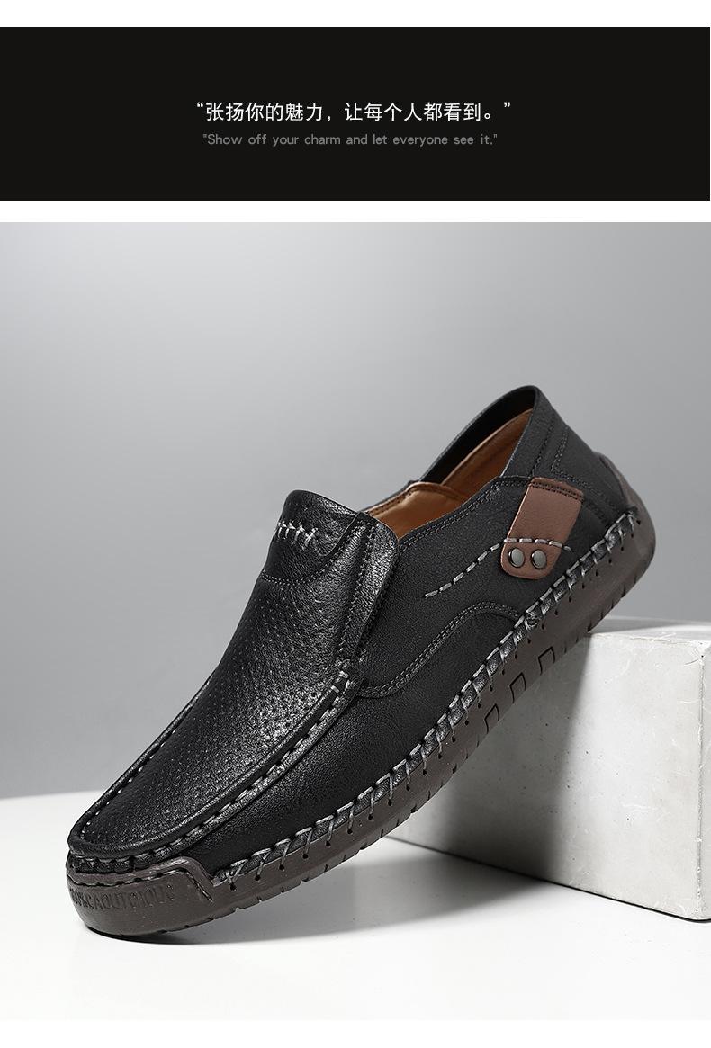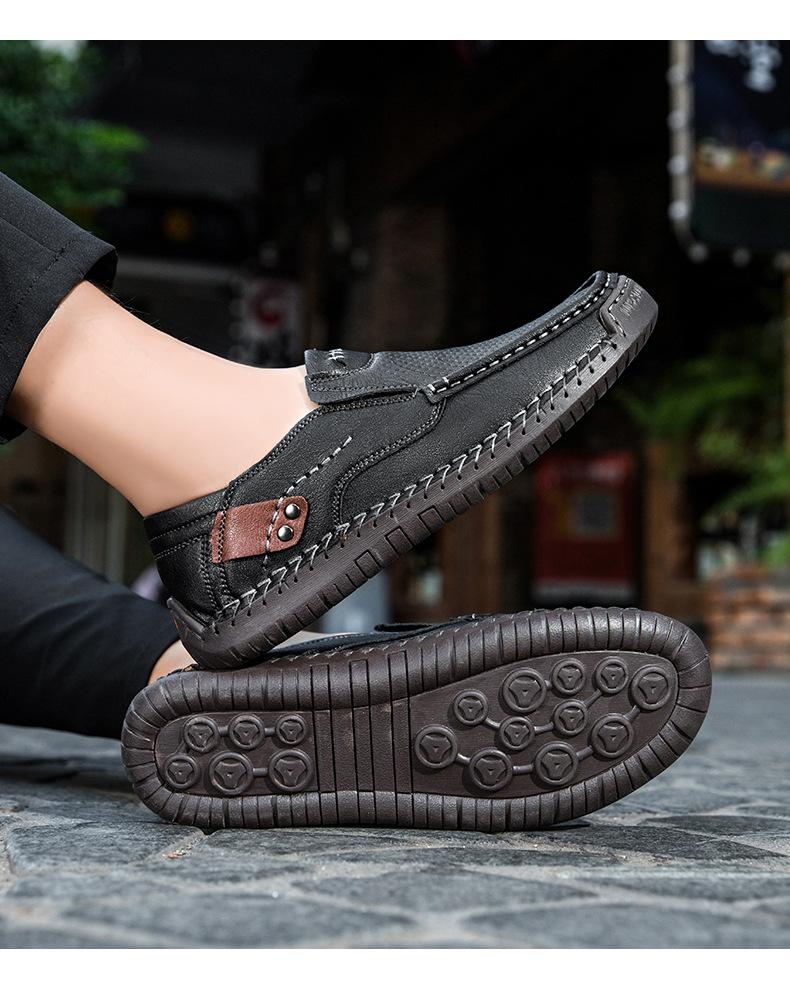 Zapatos de hombre huecos cosidos a mano, zapatos casuales para exteriores, zapatos planos de cuero sin cordones, mocasines cruzados de talla grande y caña baja
