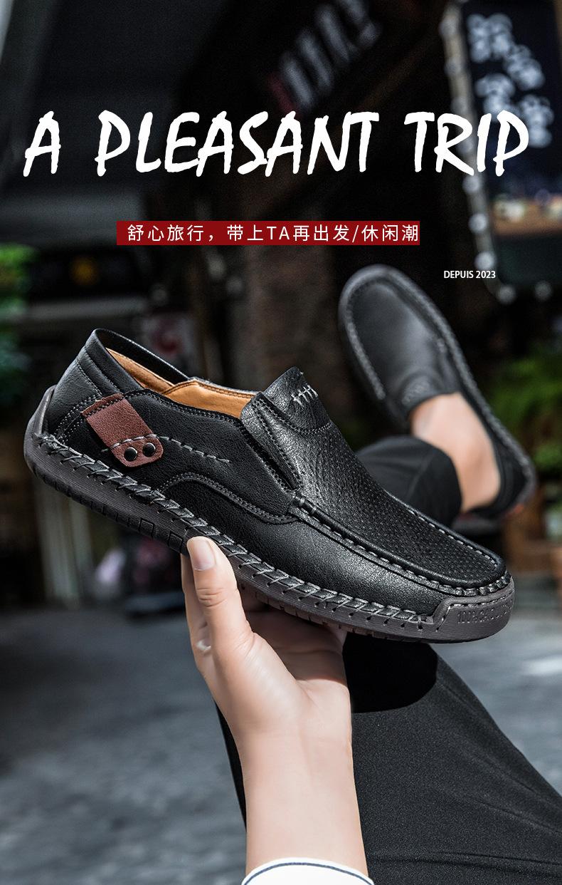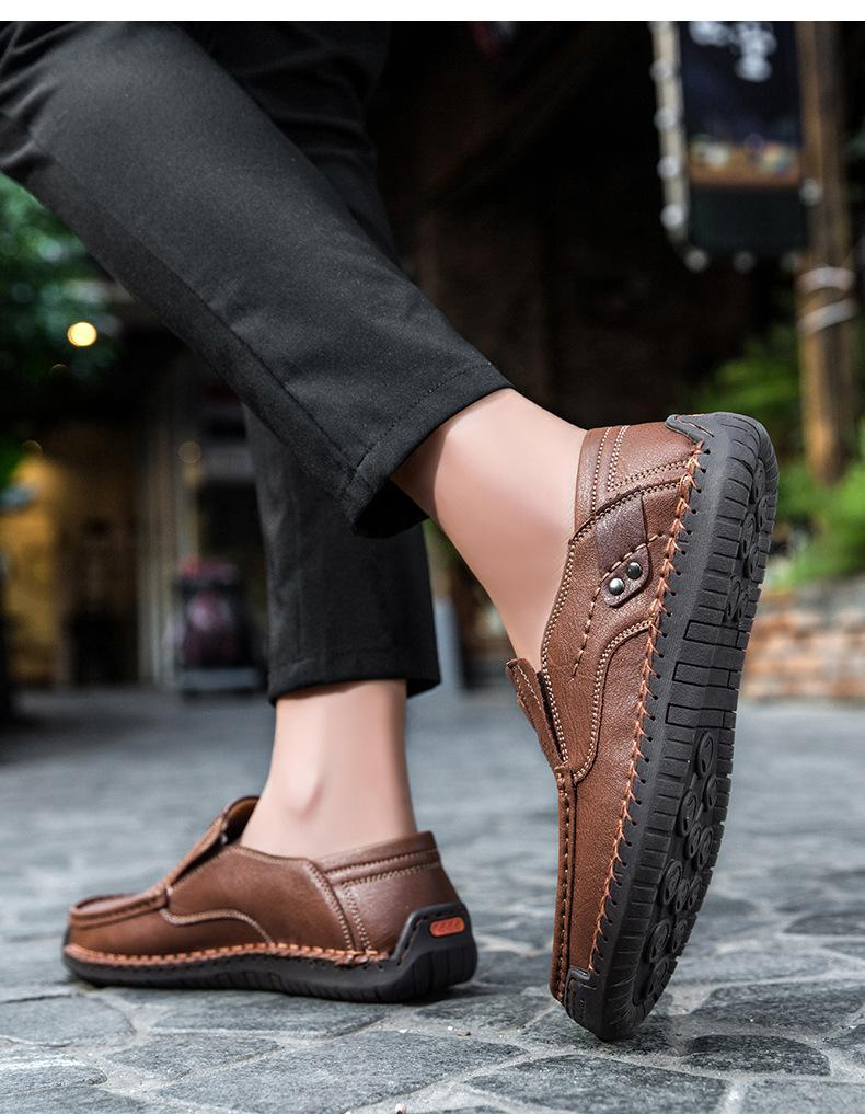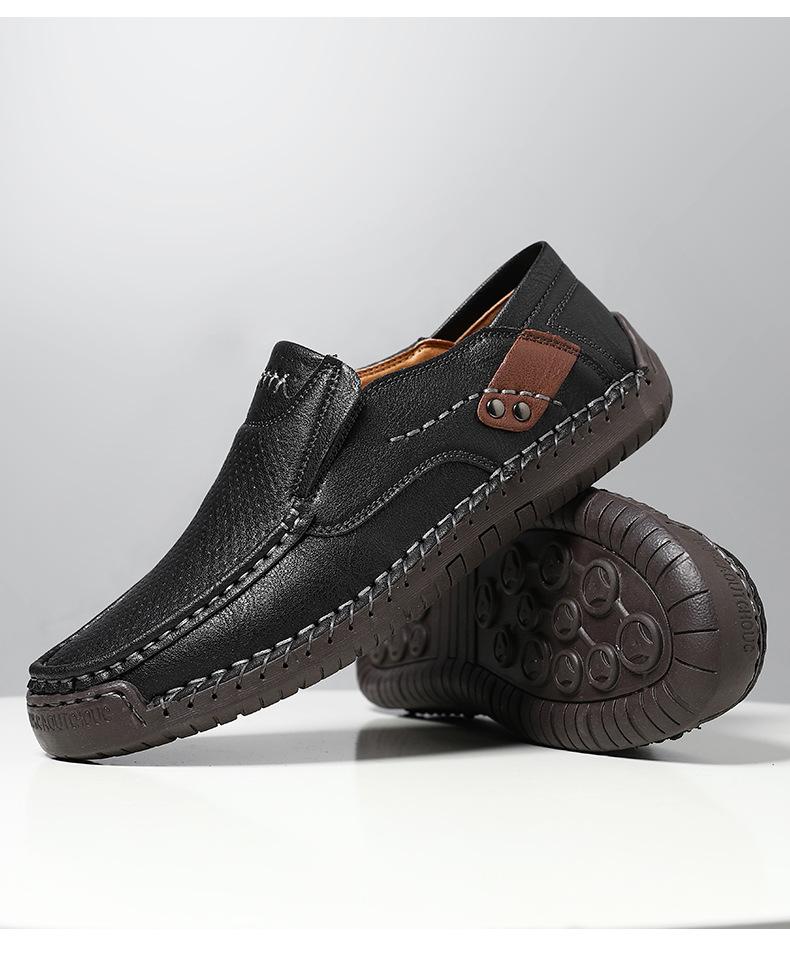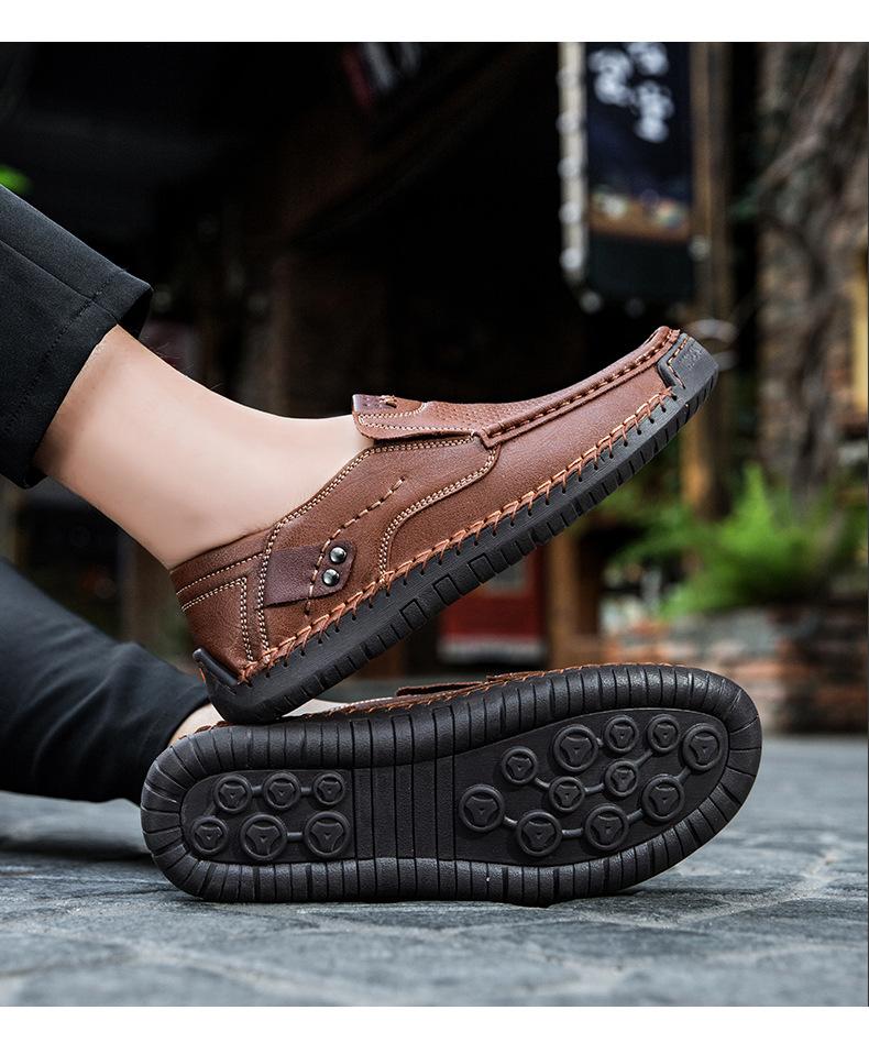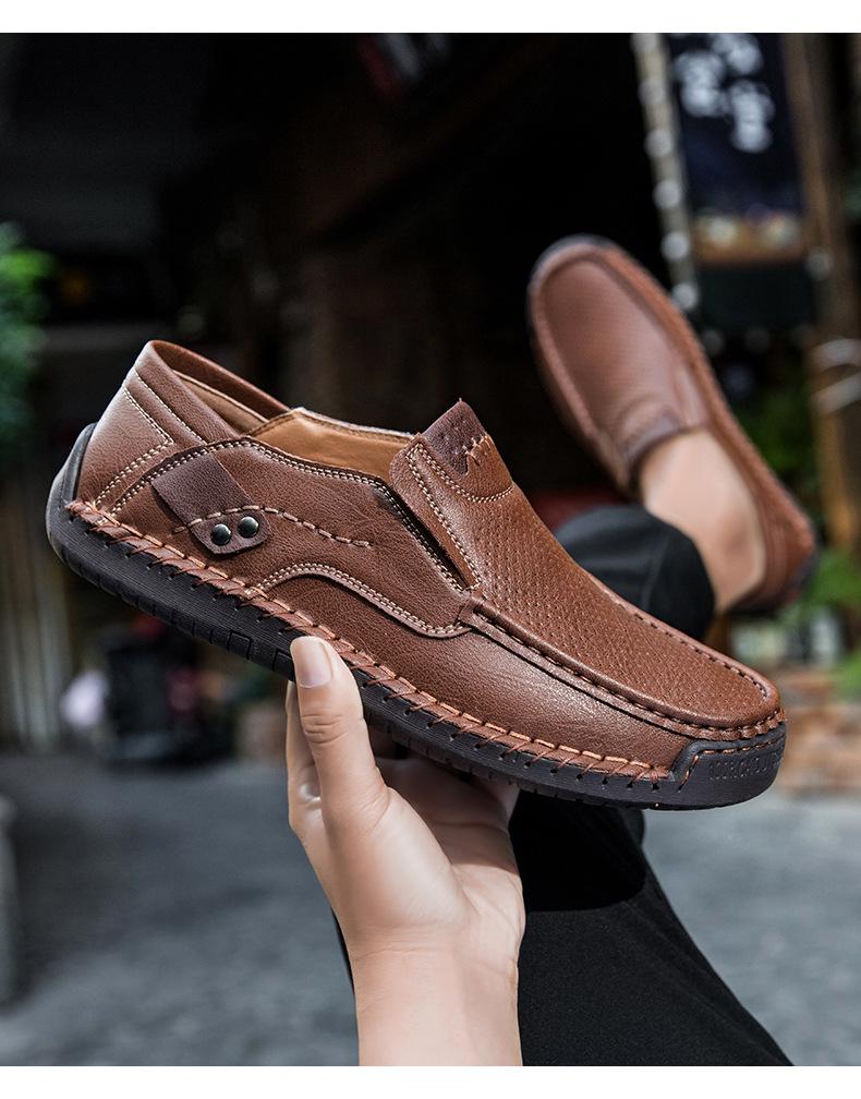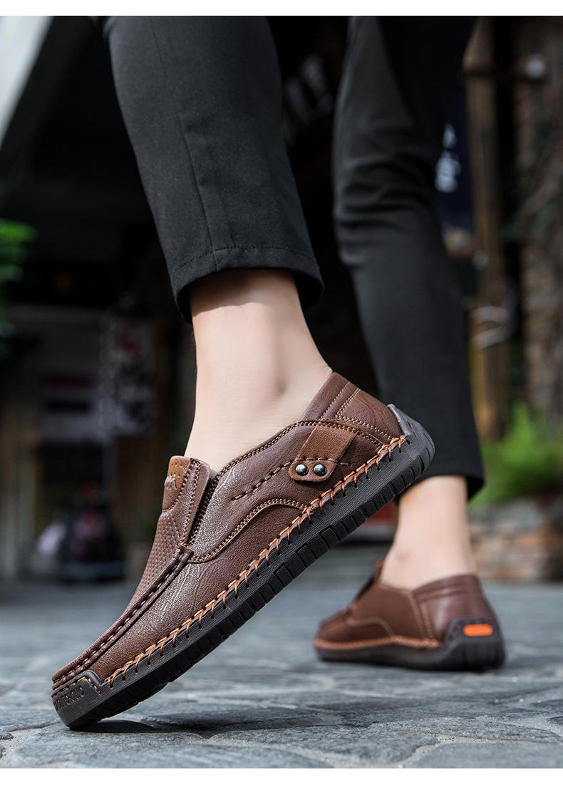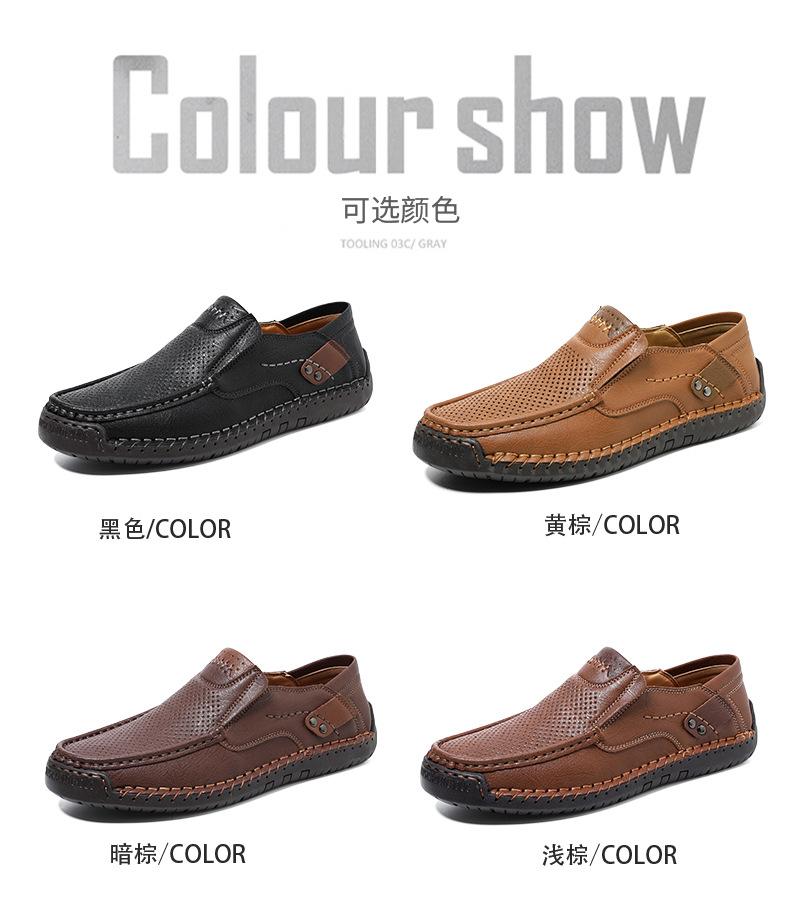 Zapatos de hombre huecos cosidos a mano, zapatos casuales para exteriores, zapatos planos de cuero sin cordones, mocasines cruzados de talla grande y caña baja